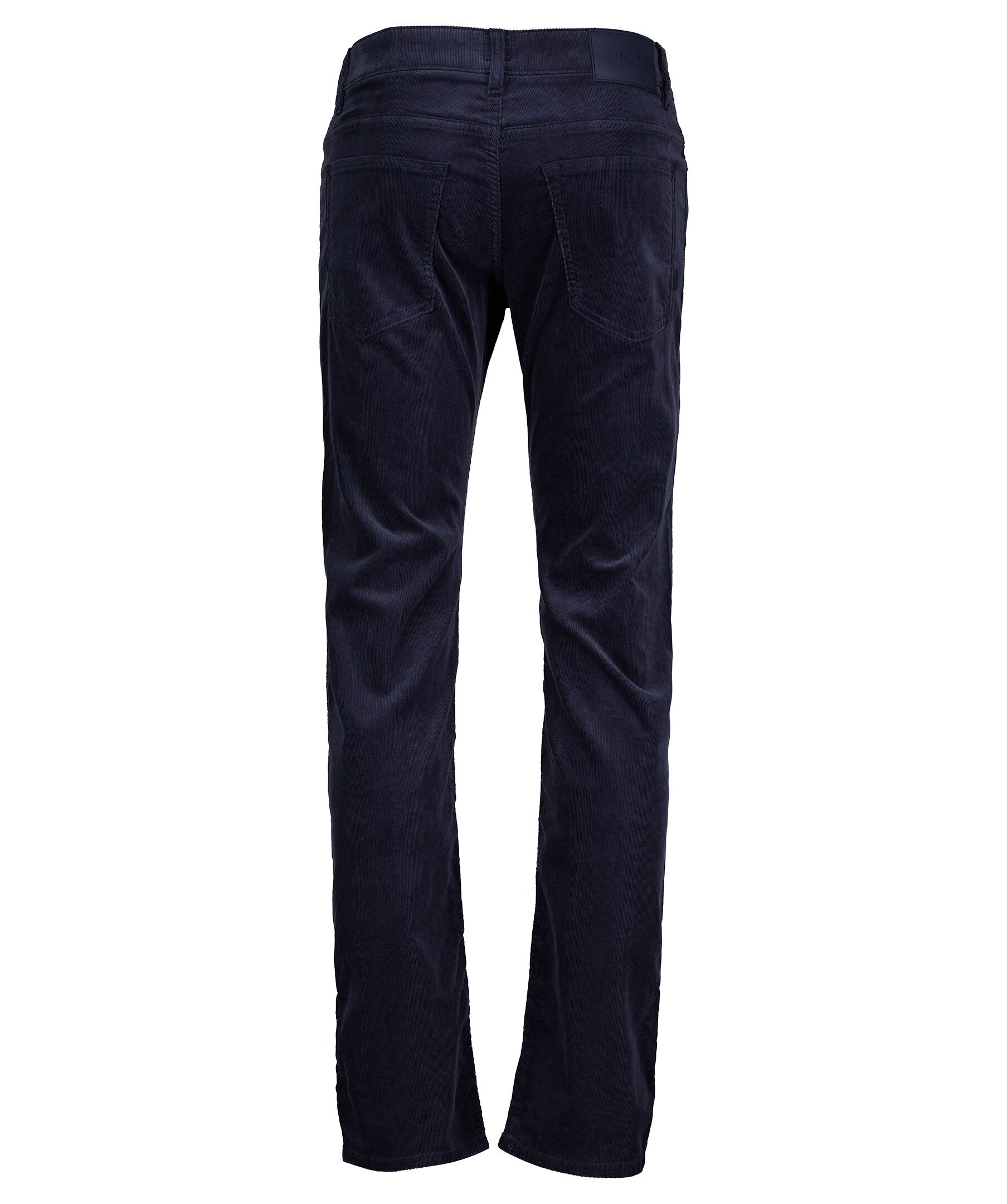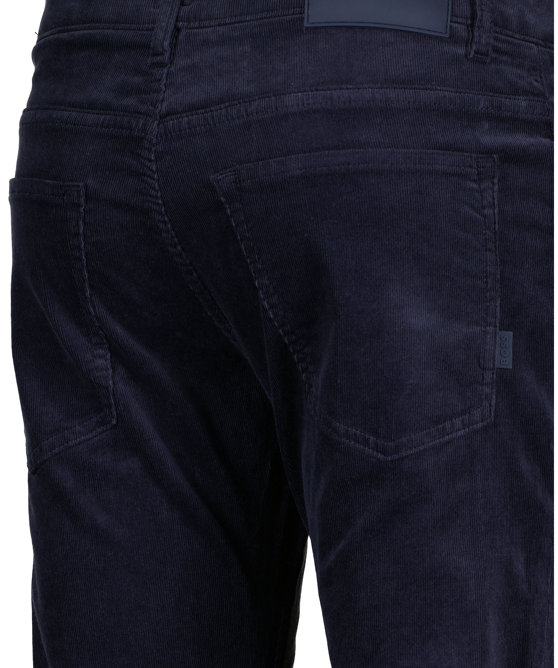 Mörkblå manchester byxor från BOSS Black. Fem fickor. Gummerad logotyp baktill och framtill på höger ficka.