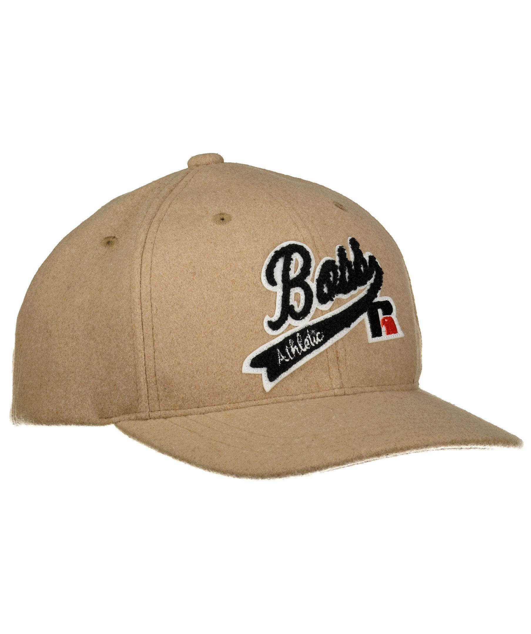 Beige keps i filtliknande material från BOSS x Russell Athletic. Tillverkad i 100% polyester. Broderad text och logotyp på framsidan och justeras med kardborreband bak.