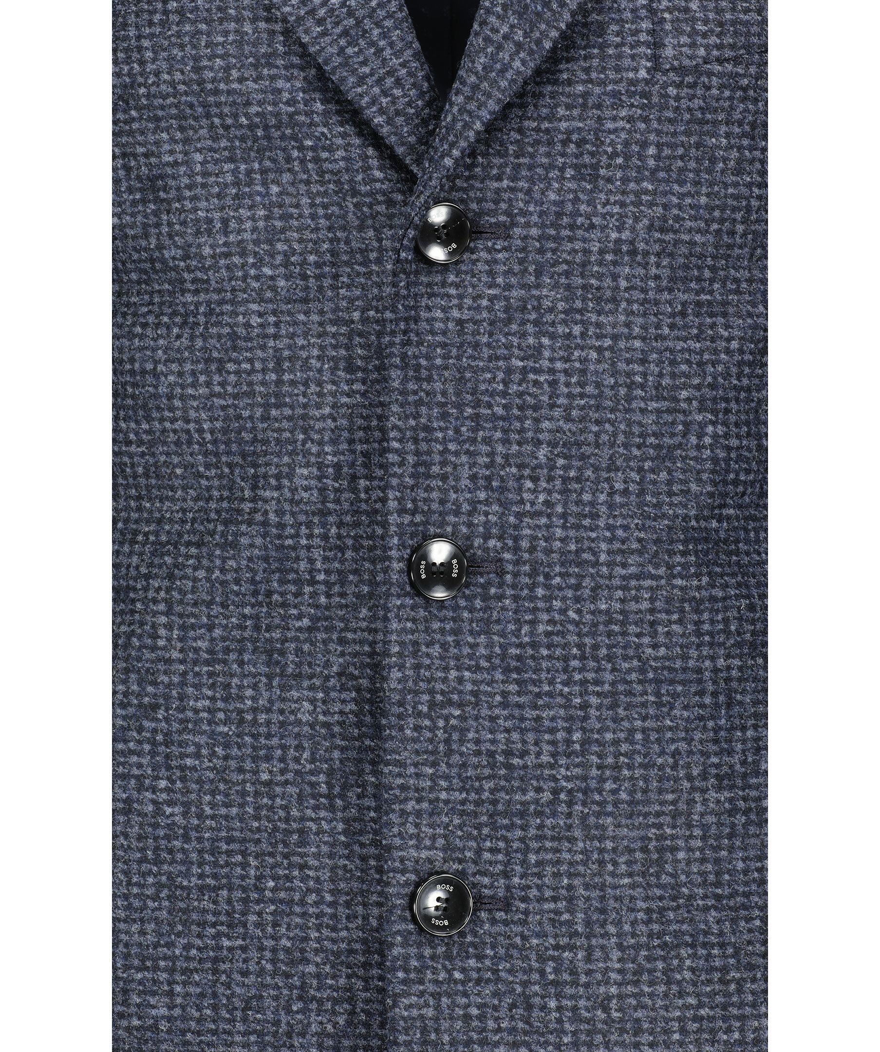 Blå och svart rutig rock från BOSS Black. Enkelknäppt. Två fickor framtill, snedställd bröstficka. Tillverkad i ullblandning. Sprund baktill.