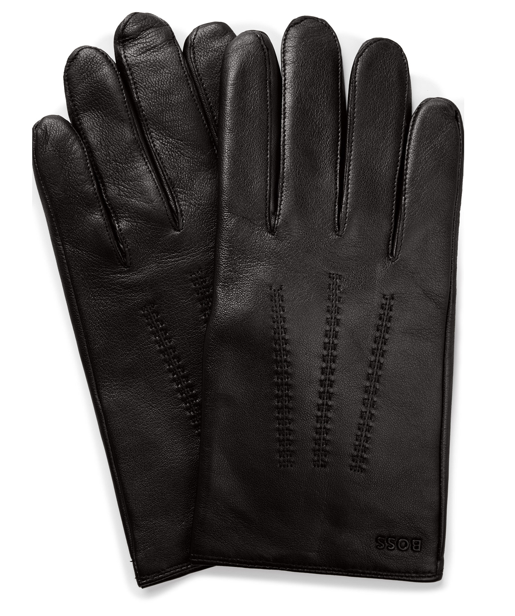 Svarta skinnhandskar från BOSS Black. Svart logotyp i metall på ovansidan och liten slits vid handleden som gör det lättare att få på handsken. Tre stycken fina sömmar ovanpå handsken som fin detalj. Tillverkade i äkta läder med foder i ullmix.