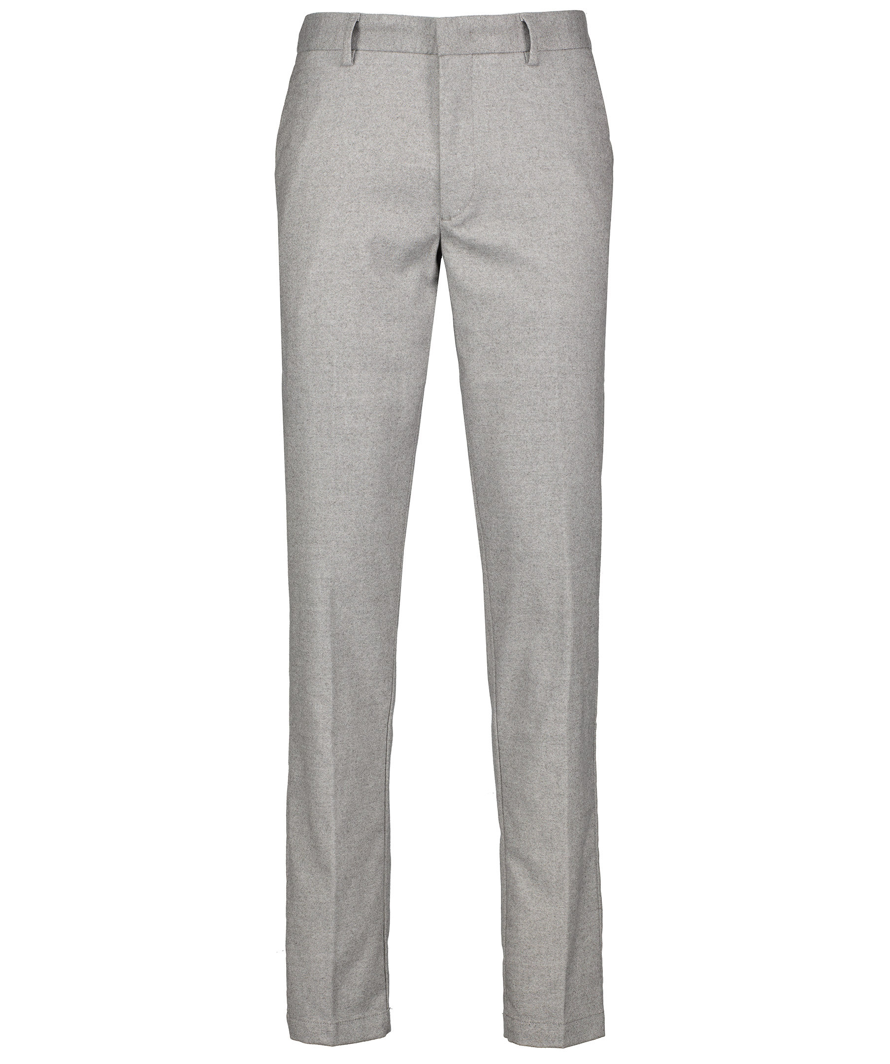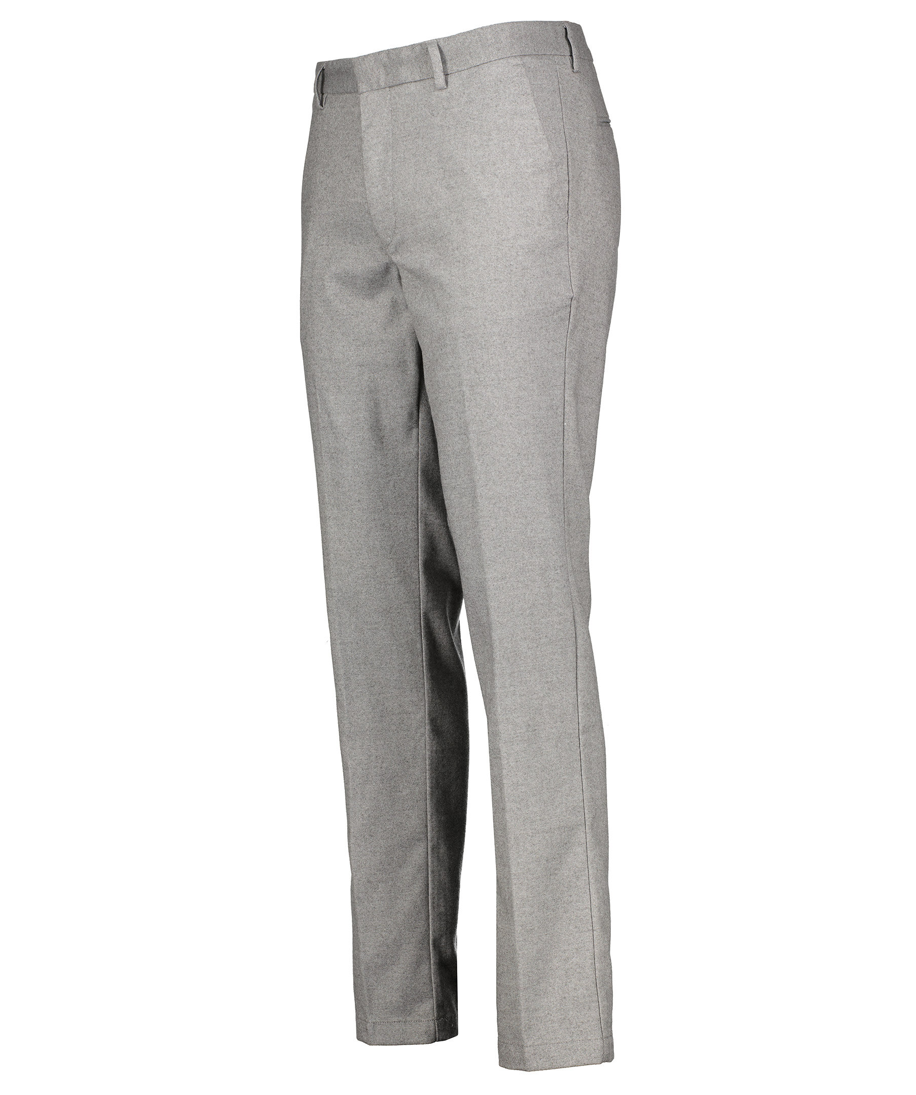 Grå melerade kostymbyxor i slim fit modell från BOSS Black. Fickor framtill samt raka bakfickor. Hällor för skärp och gylf med dragkedja, knapp, hake och hälla.
