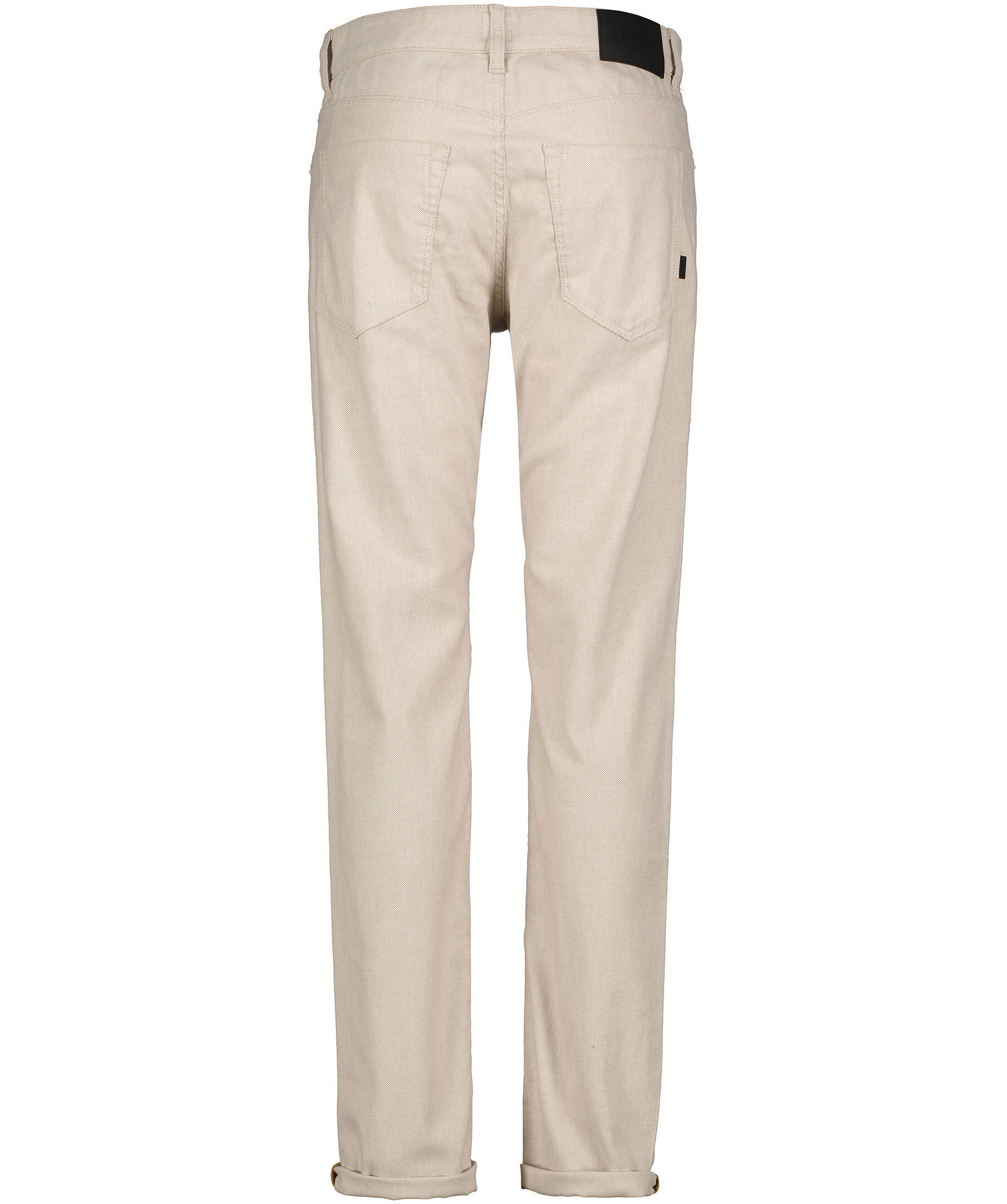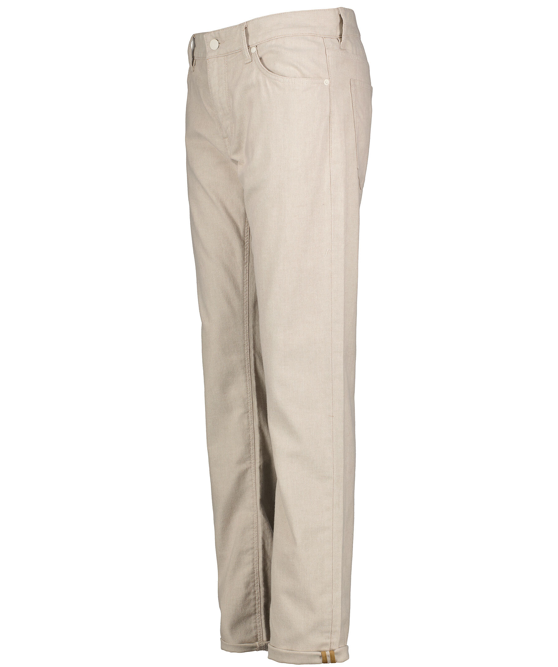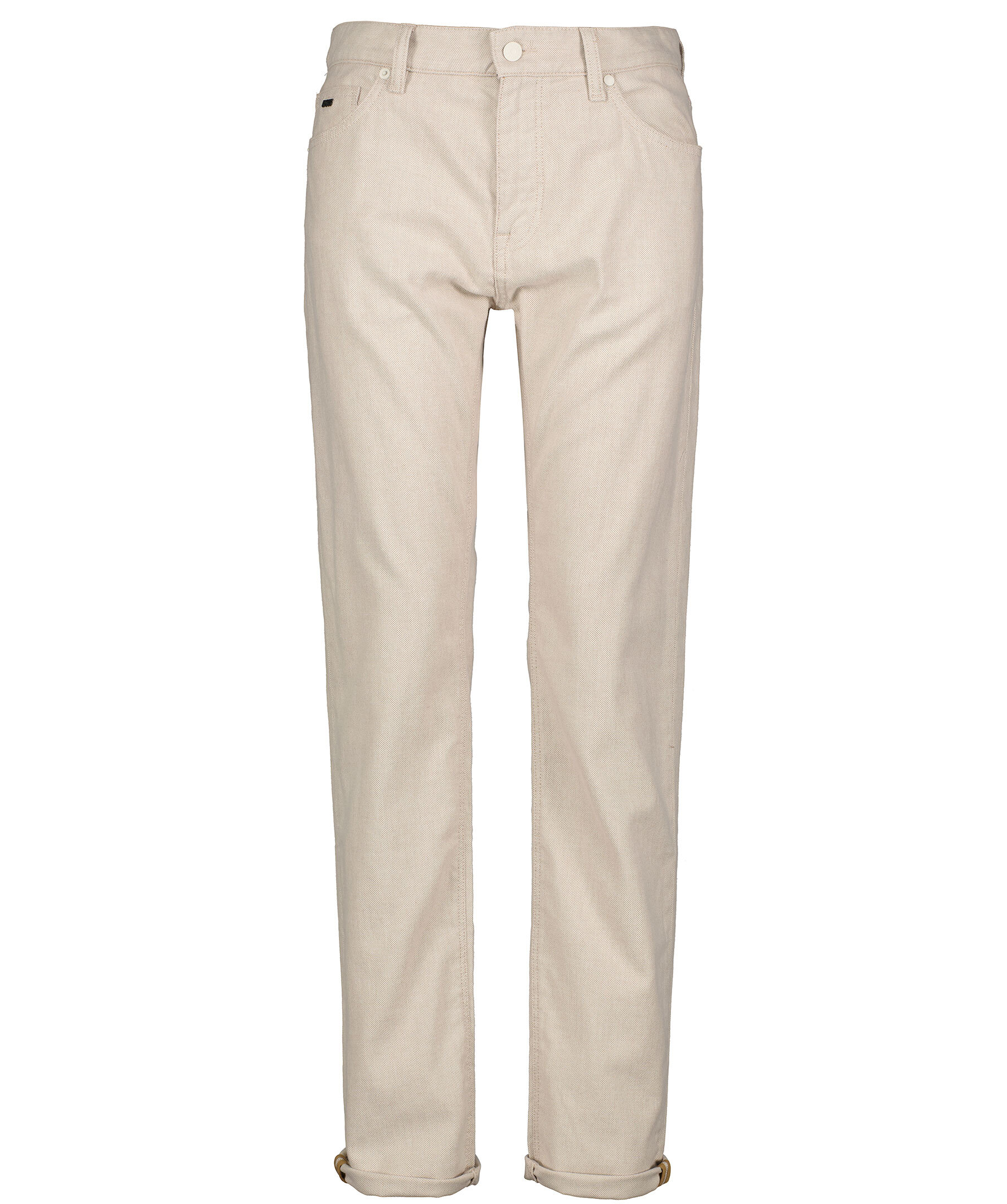 Beigea byxor från BOSS Black. Femficksmodell och hällor för skärp. Regular fit. Patch i läder baktill. Tillverkade i stretchig bomull