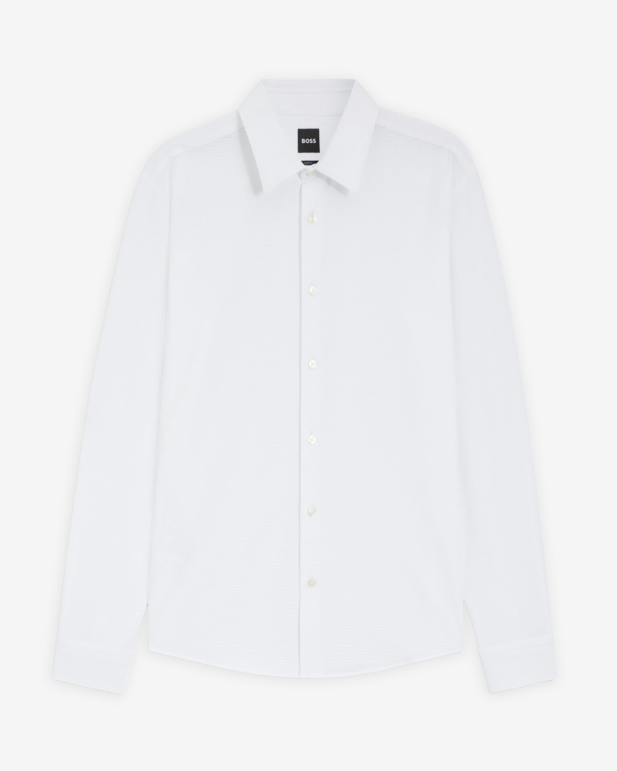 Vit skjorta i sheersucker från Boss Black. Smal passform.