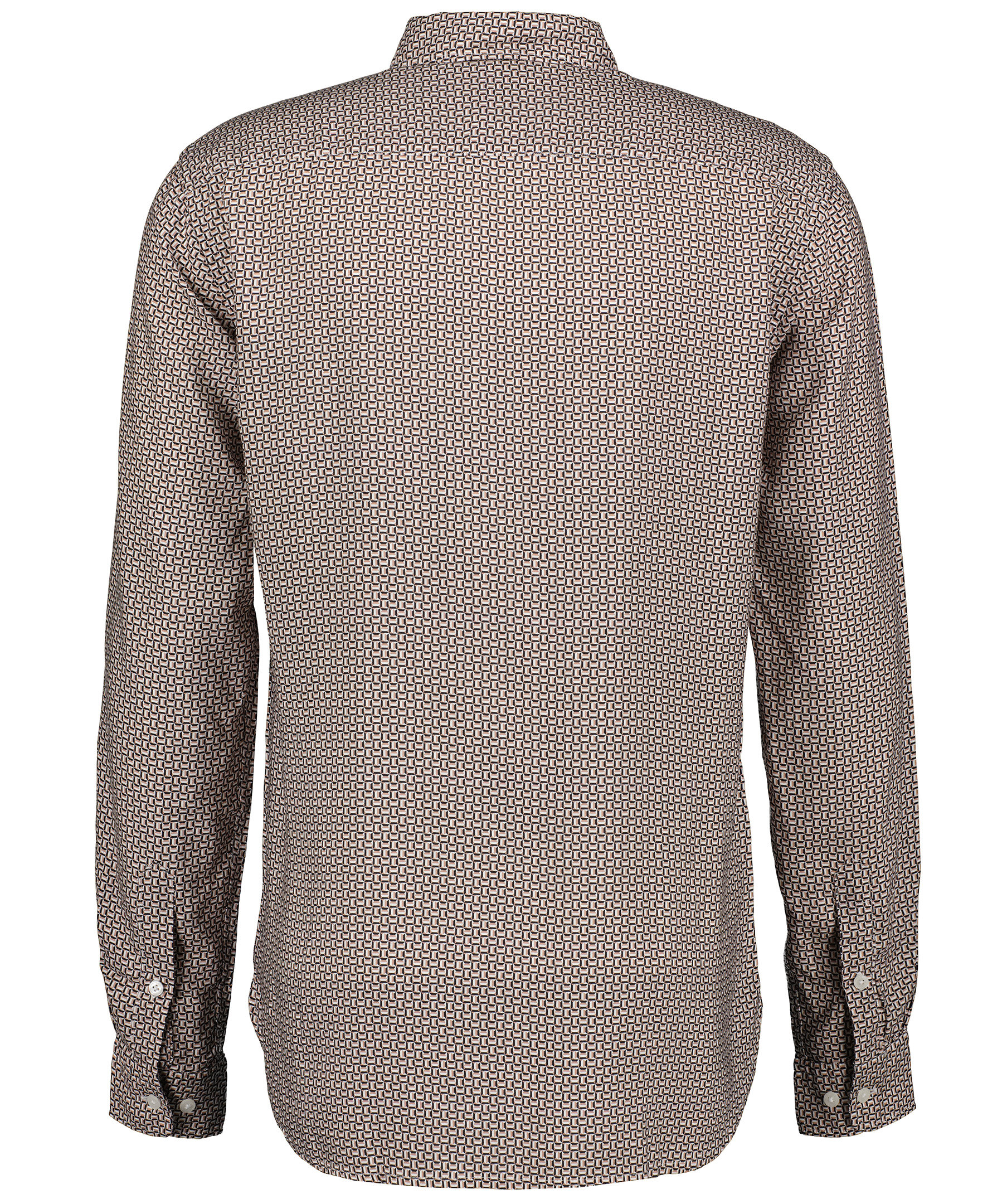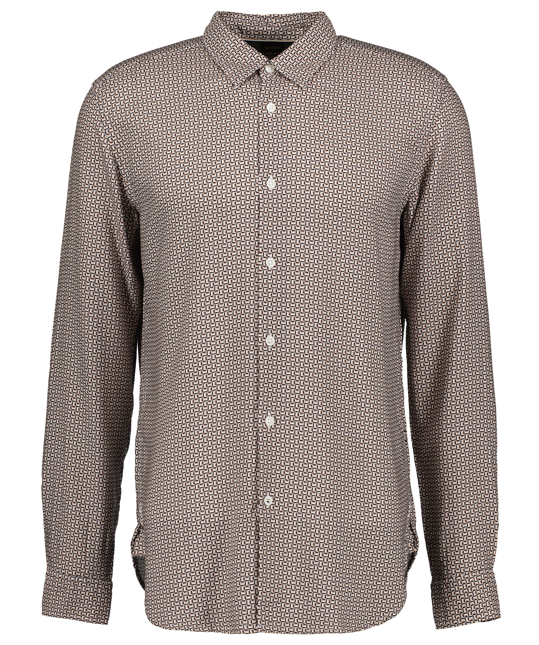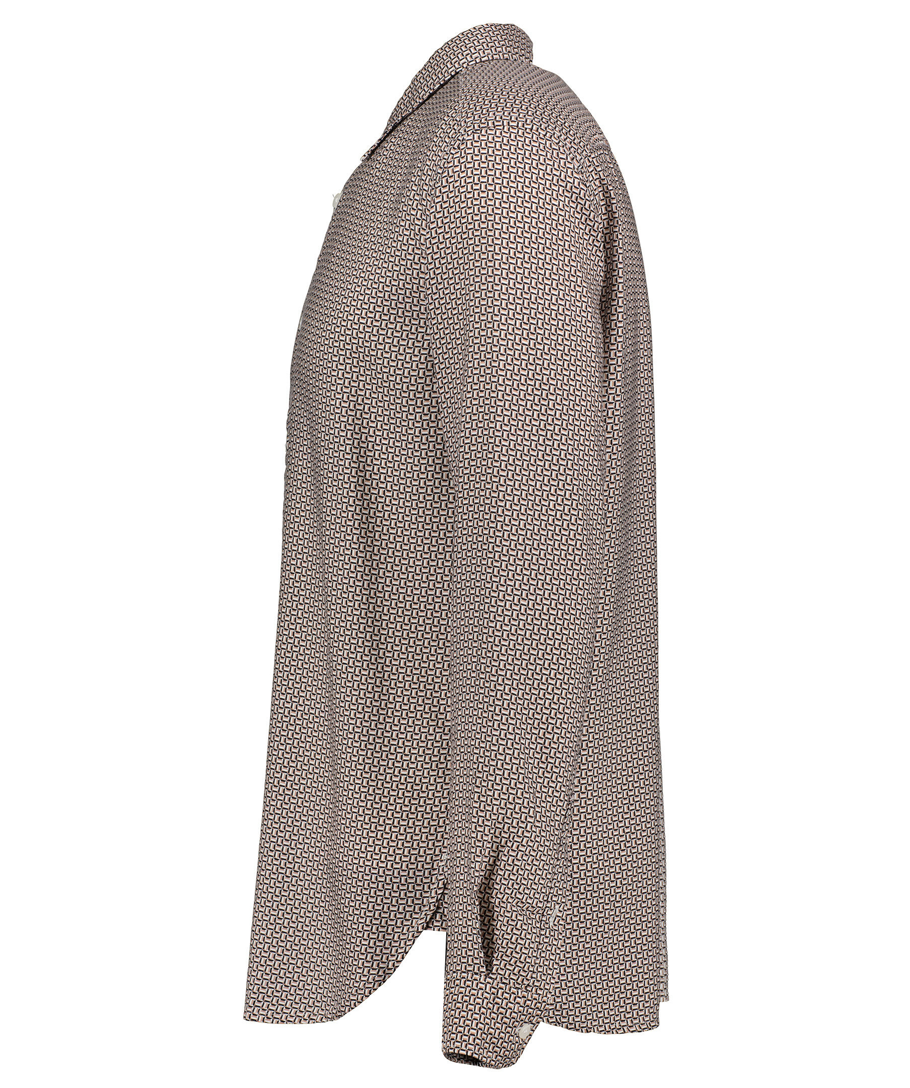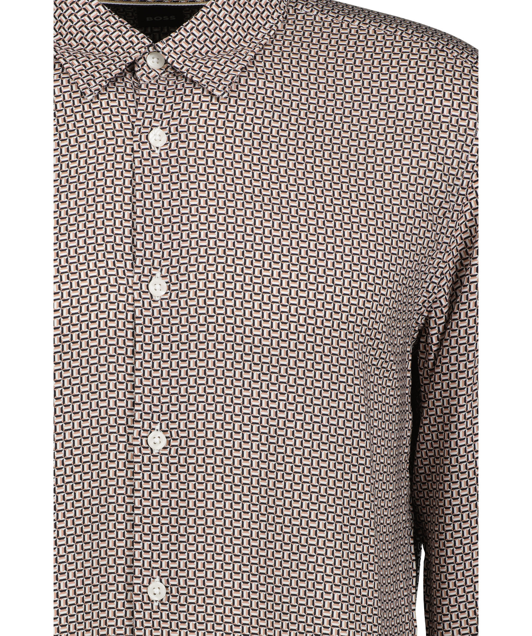 Vit, brun och svart mönstrad skjorta från BOSS Black. Slim fit modell. Spetsig krage. Tillverkad i 100% Lyocell. Enkla manschetter.