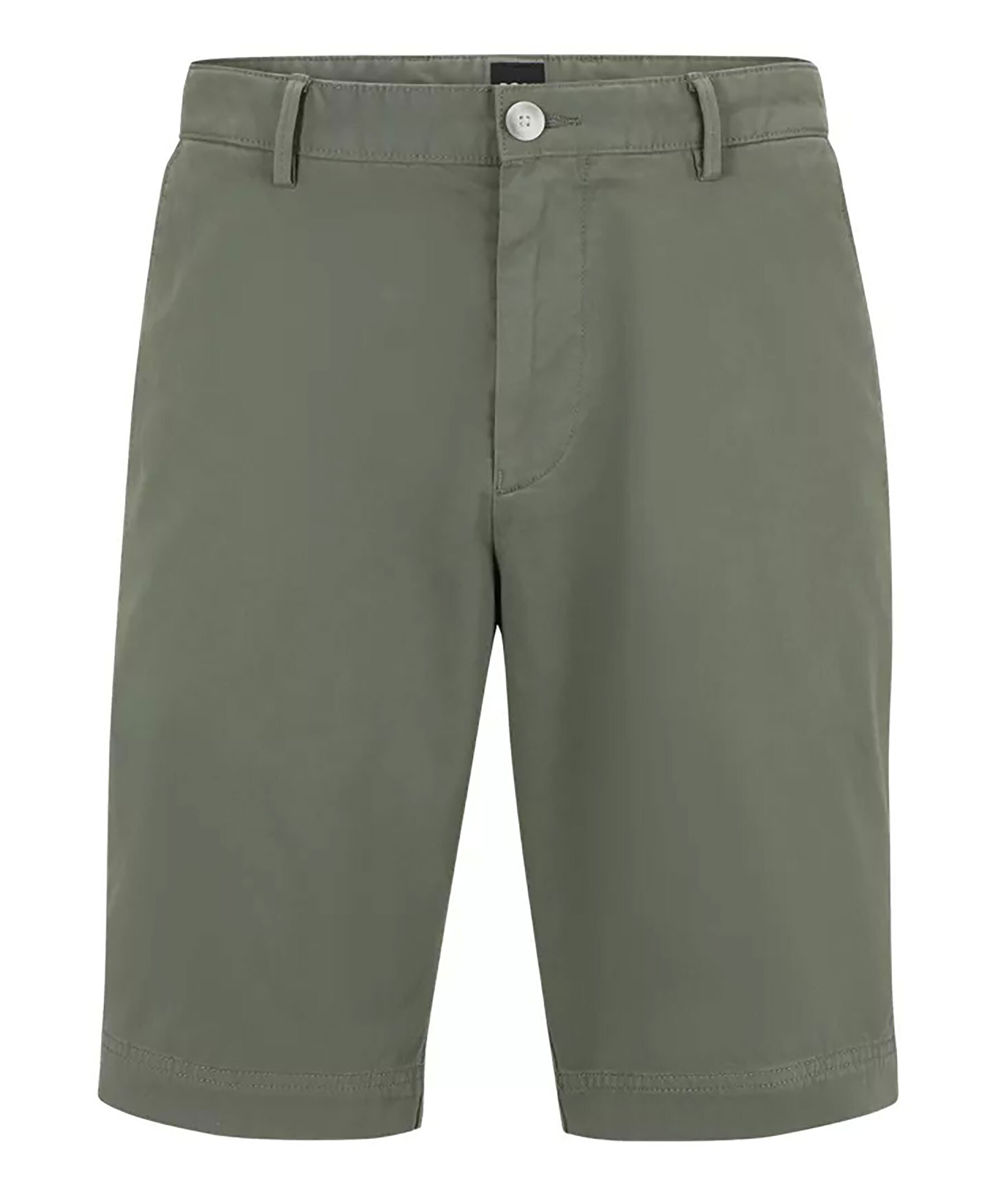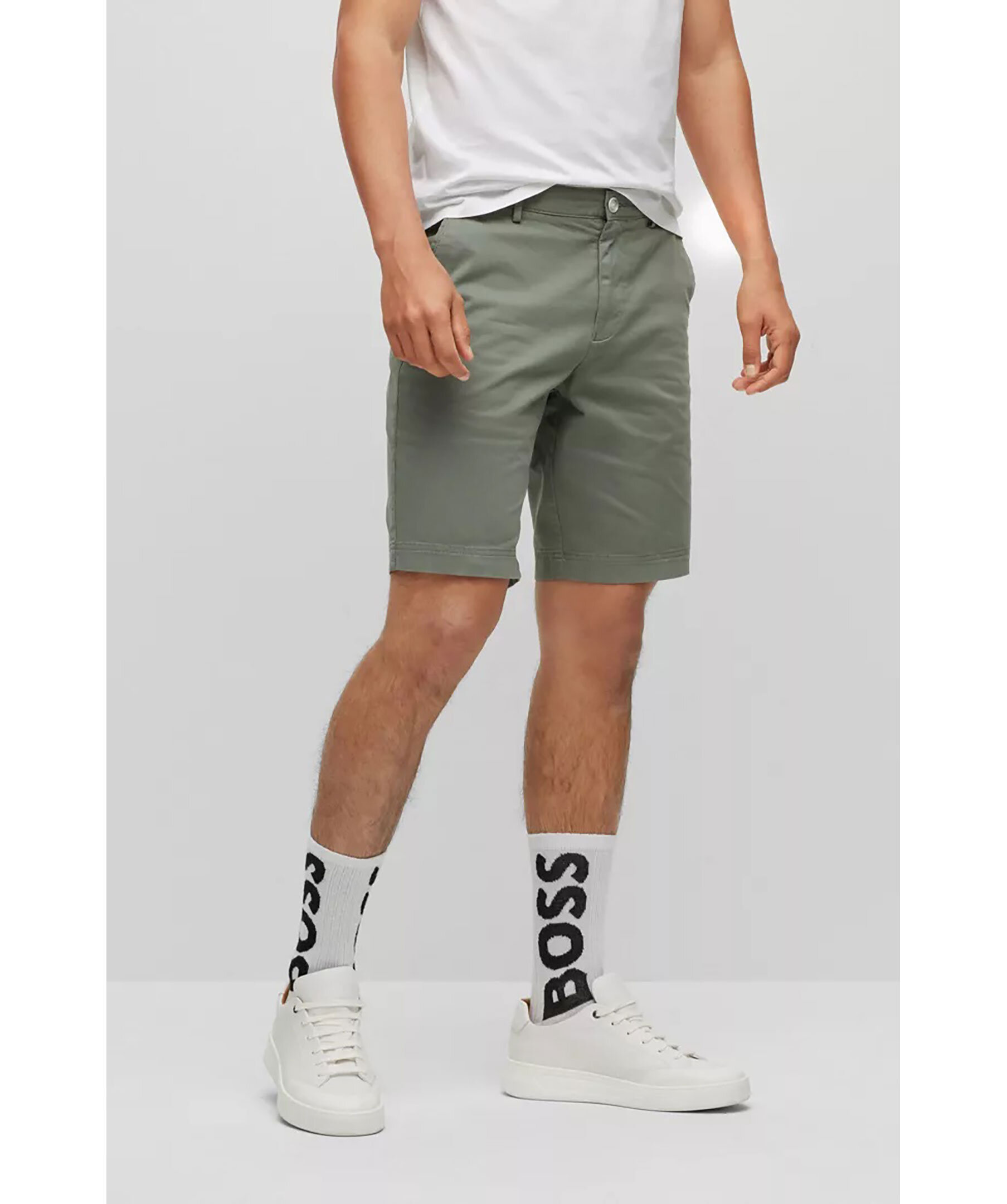 Gröna chinosshorts från BOSS Black. Smal passform med en normal hög midja. Innerbens längden är 25cm. Två sidfickor och två bakfickor.