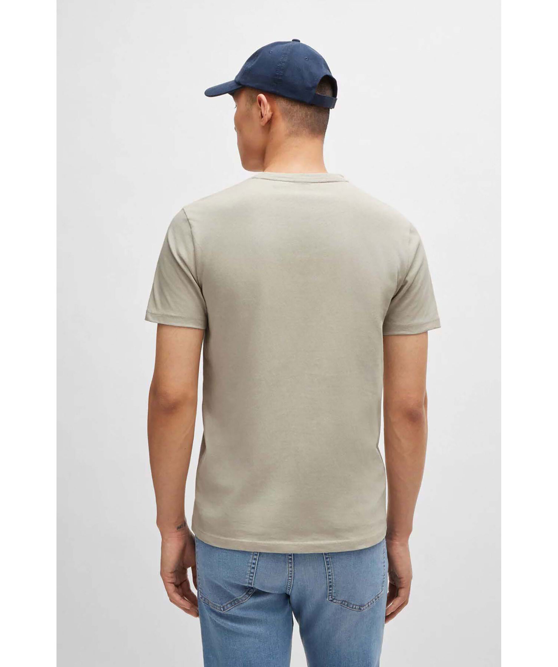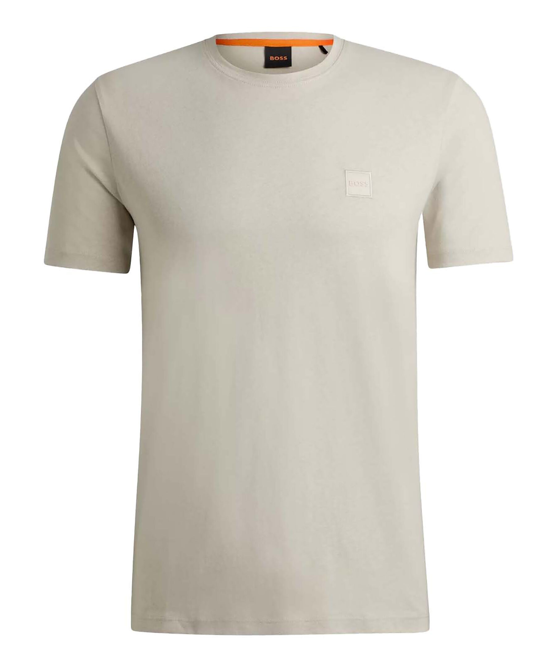 Beige t-shirt från BOSS Orange. T-shirten har rundad halsringning och en vävd logotyplapp på bröstet. Tillverkad i bomull.