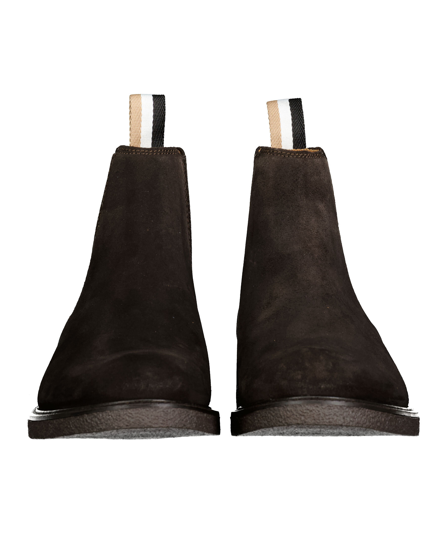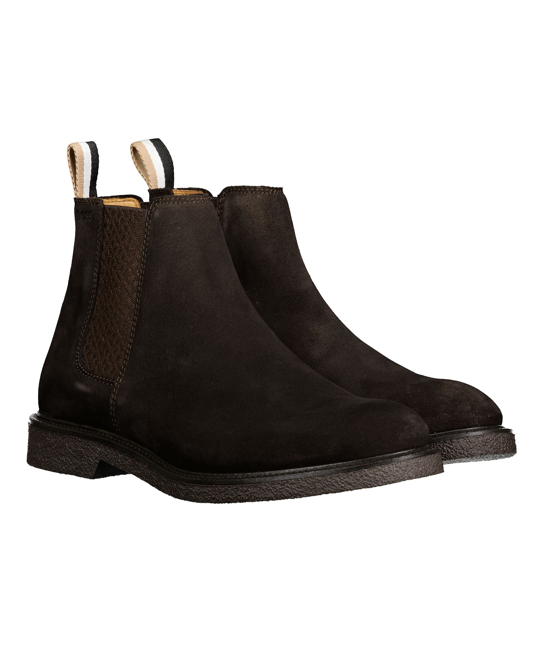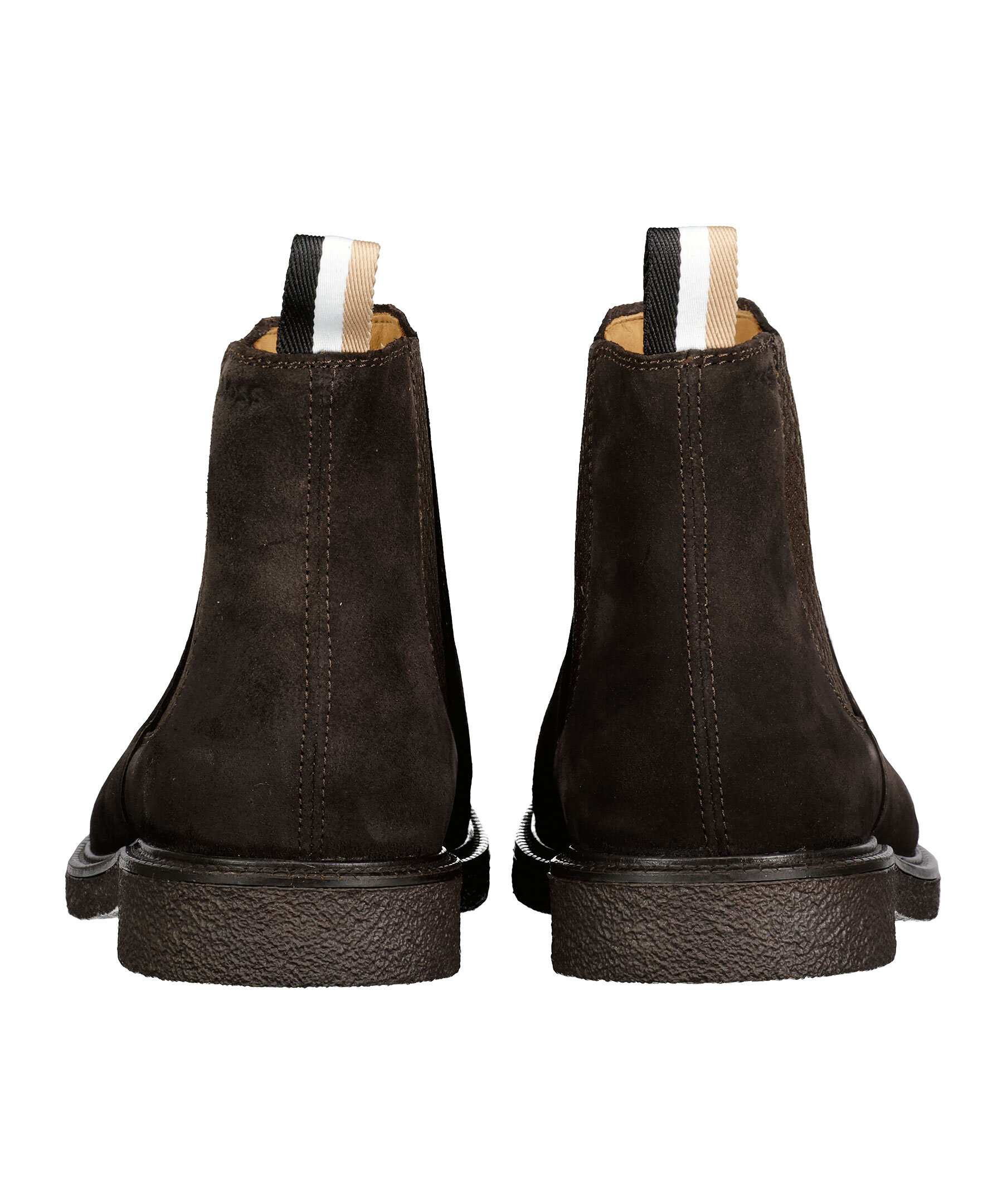 Mörkbruna, eleganta Chelsea boots från BOSS. Detaljerade med en präglad logga på överkanten. Tillverkade av läder med monogram och elastiska sidopaneler för flexibel komfort och har en smidig och förfinad look.