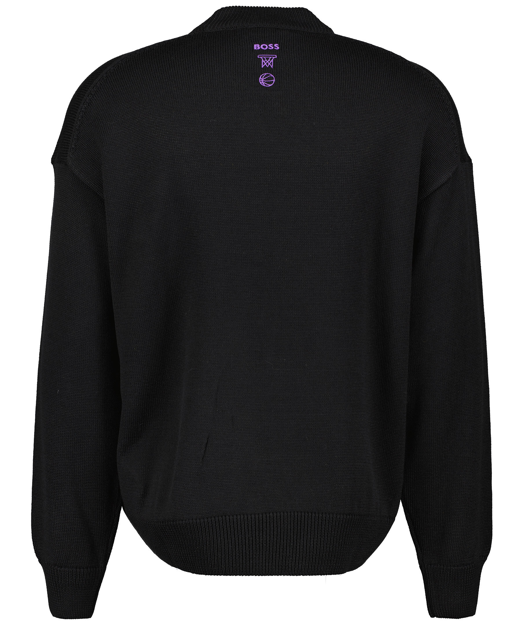 Svart stickad tröja från BOSS Orange X NBA. Stickad Los Angeles Lakers logotyp över bröstet och magen. Patch med logotyp vid plaggslut. Ribbstickade muddar vid halsringning, plagg- och ärmslut. Tillverkad i ullblandning.