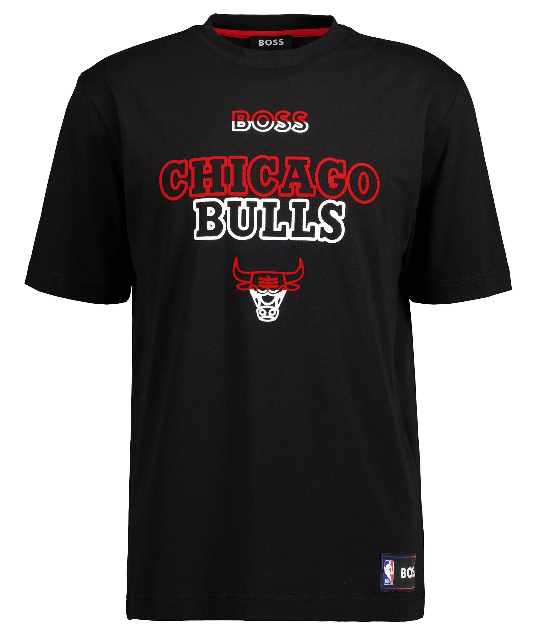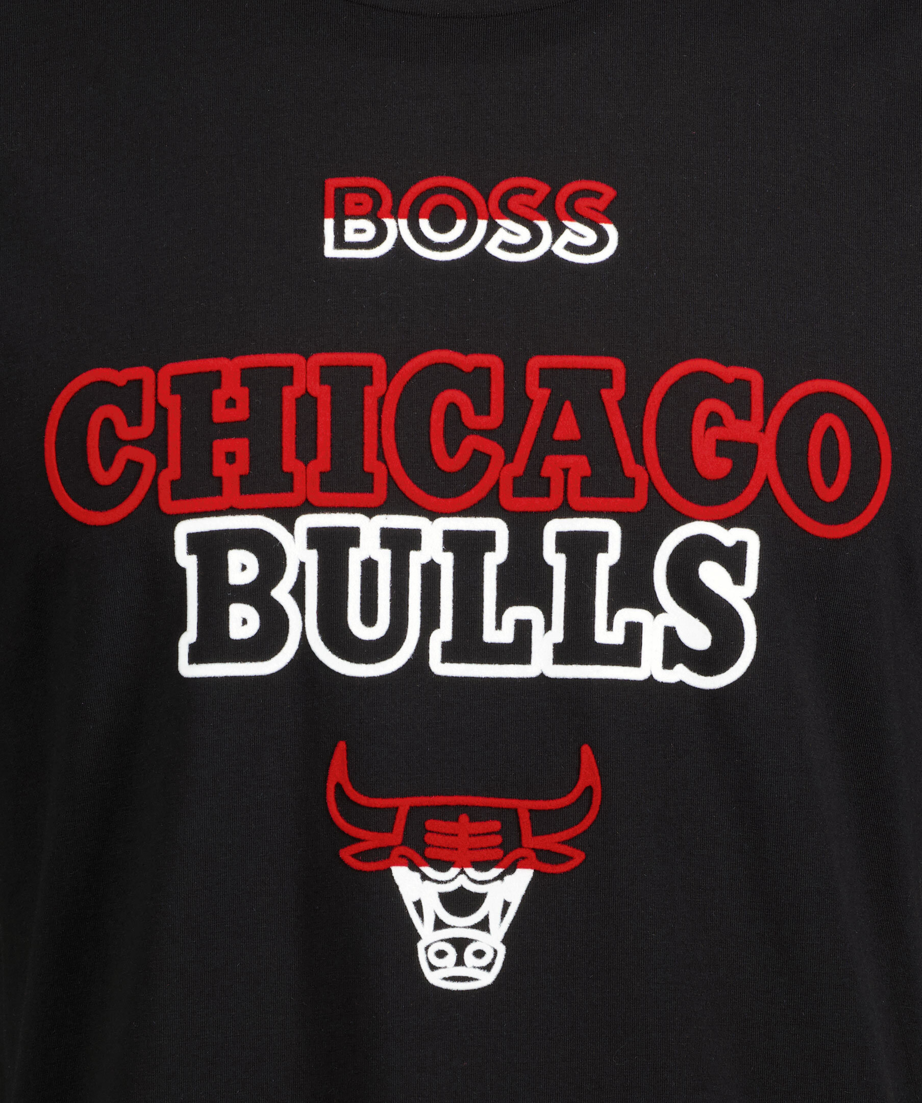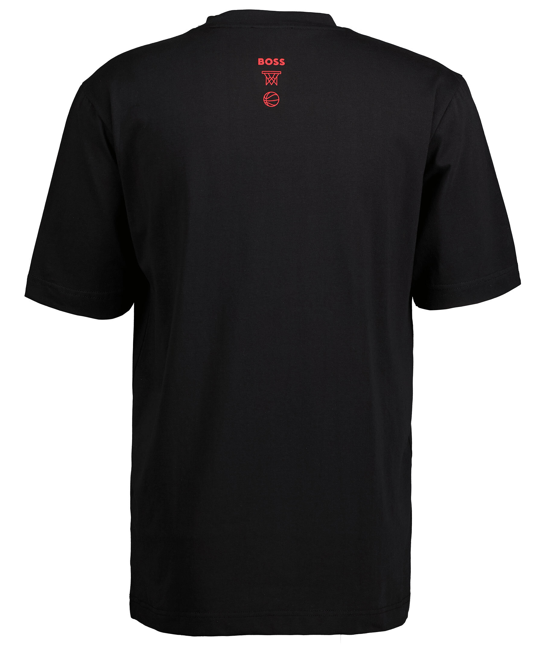 Svart T-shirt från NBA x BOSS Orange. Sammetstryck över bröstet och magen i vitt och rött. Rundad halsringning. Tillverkad i bomullsblandning.