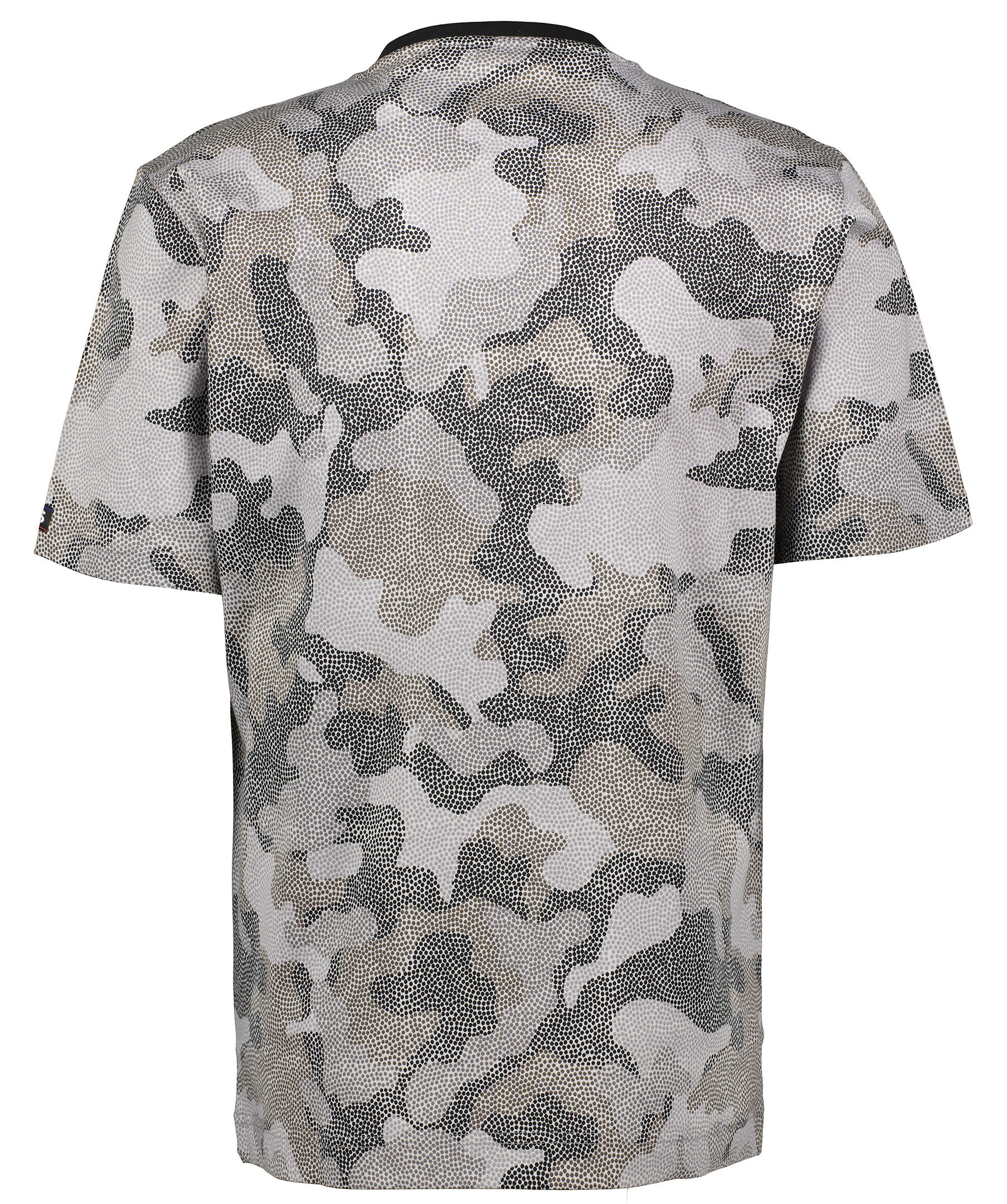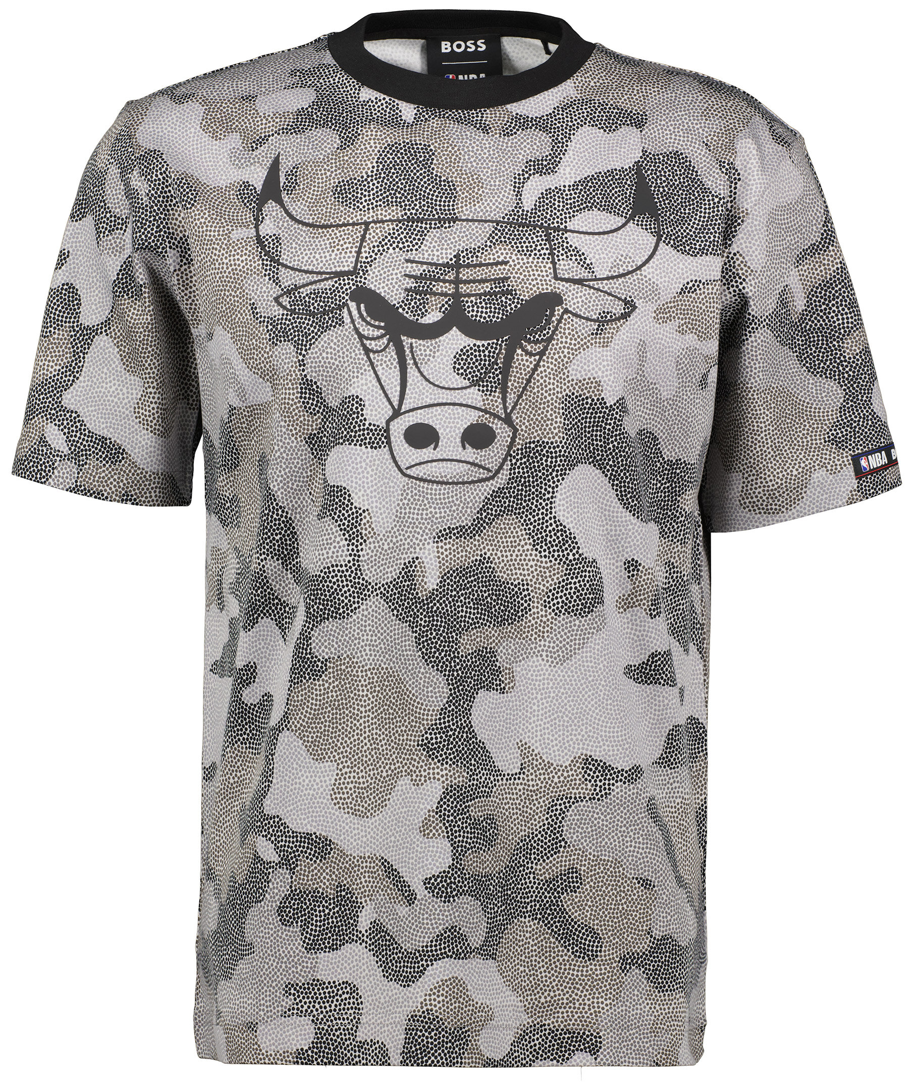 Ljusgrå, mörkgrå och svart mönstrad T-shirt från BOSS Orange X NBA. Rundad halsringning med ribbstickad mudd. Gummerat tryck över bröstet. Patch med logotyp på vänster ärm. Tillverkad i 100% Bomull.
