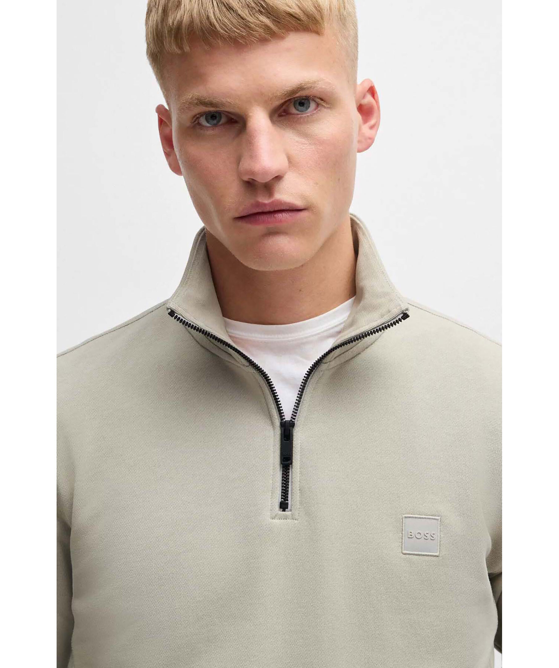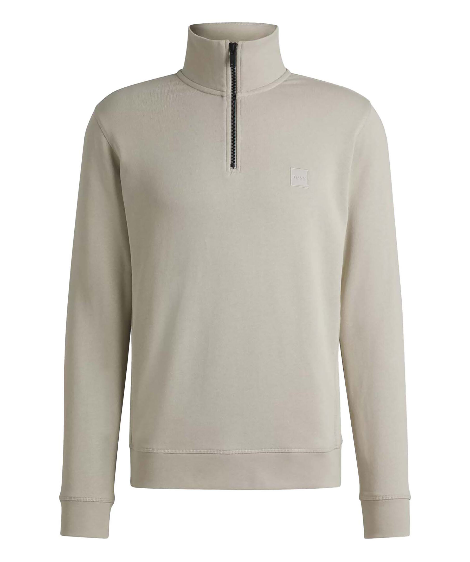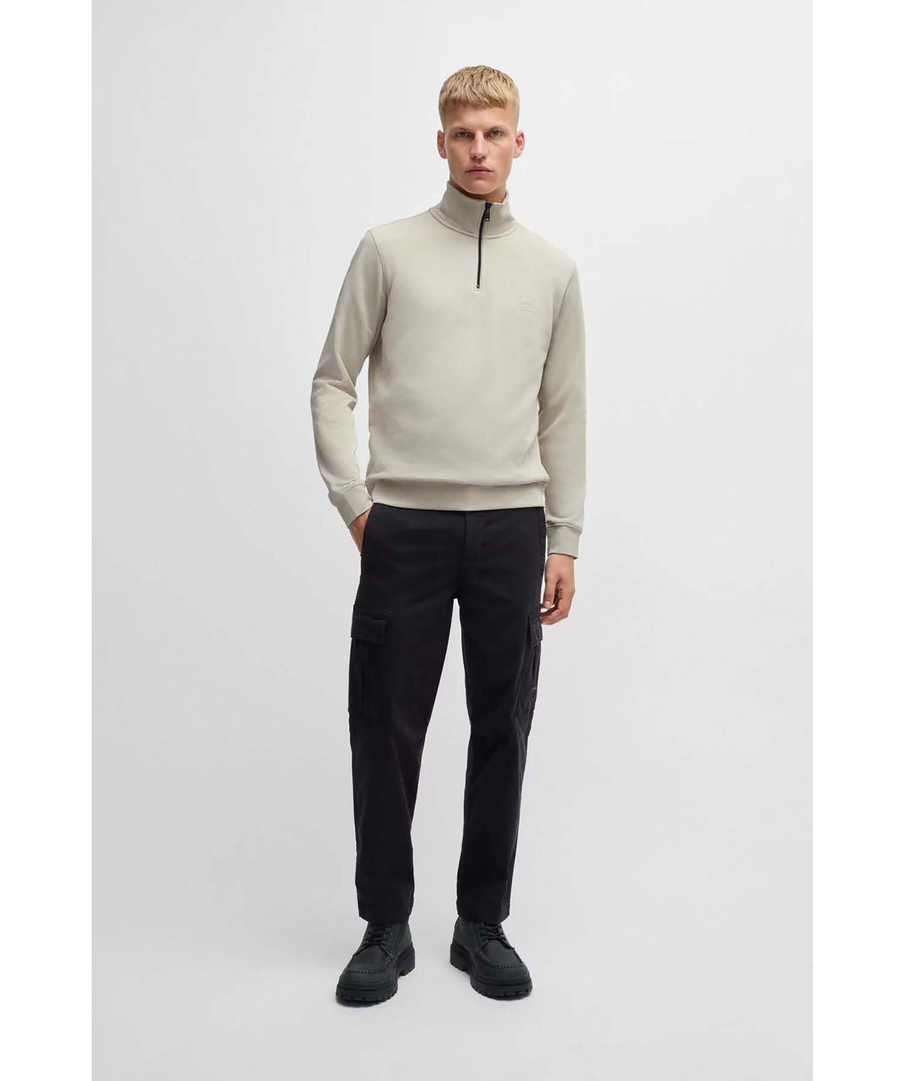 Beige half-zip från BOSS Orange. Tröjan har hög krage och mudd vid ärm- och tröjavslut. Logopatch på vänster bröst. Tillverkad av bomull.
