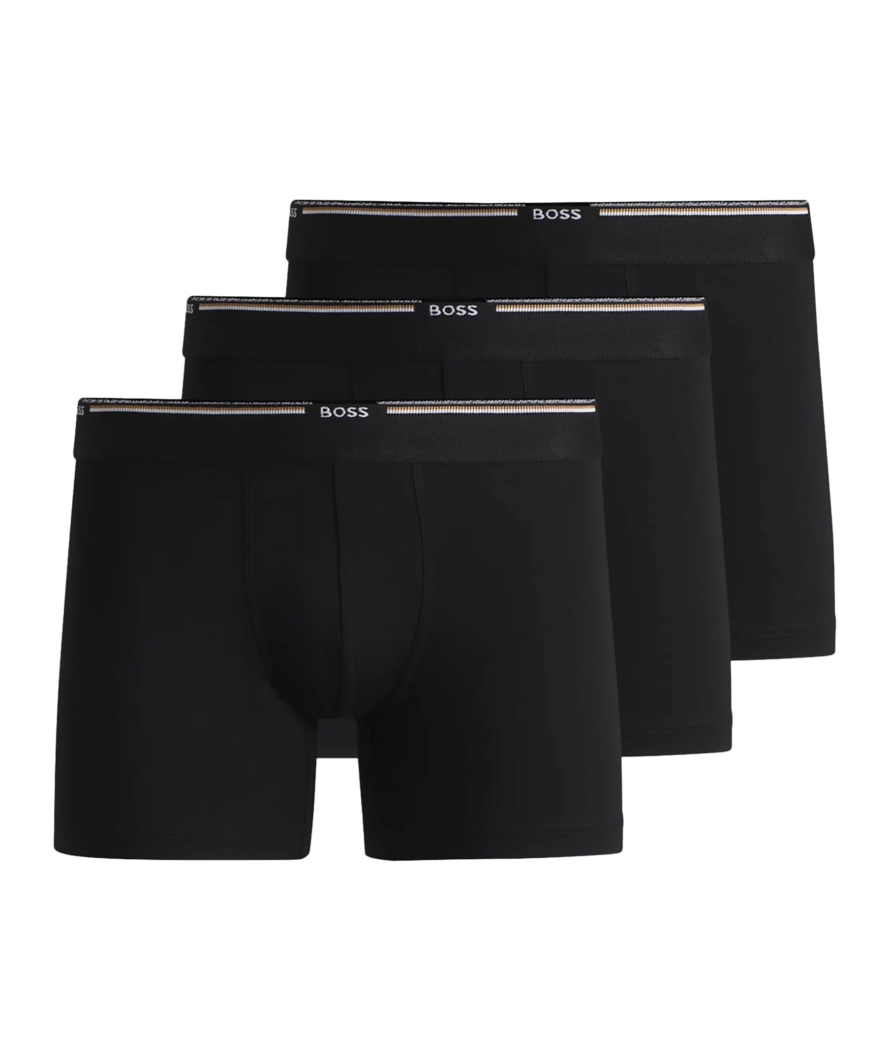 3-pack svarta boxer brief kalsonger från BOSS Black. Elastiskt midjeband med logotyp och ränder i signaturfärger. Tillverkade i bambu-viskos och elastan.