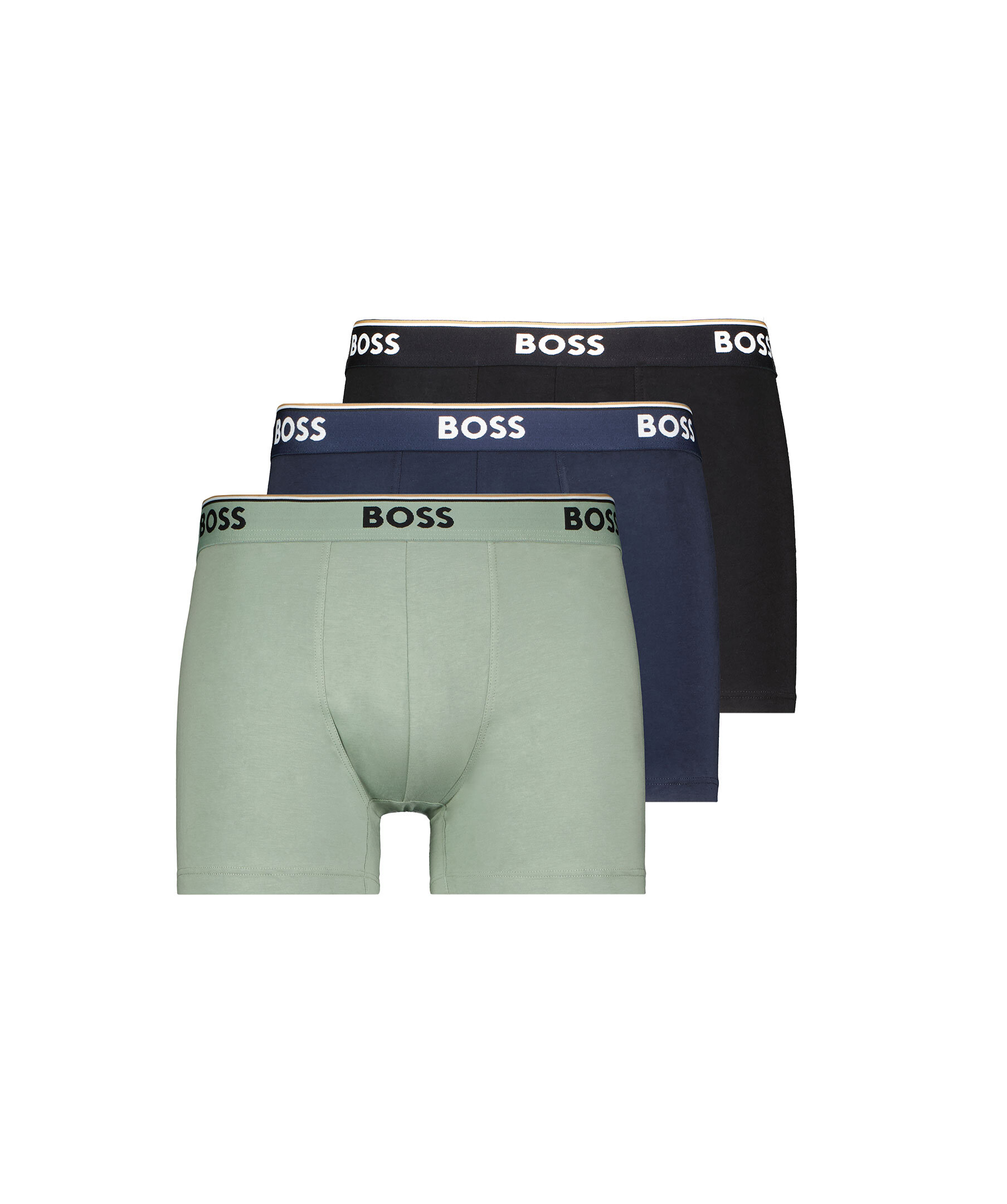 Kalsonger i 3-pack från Hugo Boss. Boxer brief modell i olika färger, en grön, en blå och en svart.. Tillverkade i stretchig bomull. De gröna har svart logotyp på resåren medans de resterande två har vit logotyp.