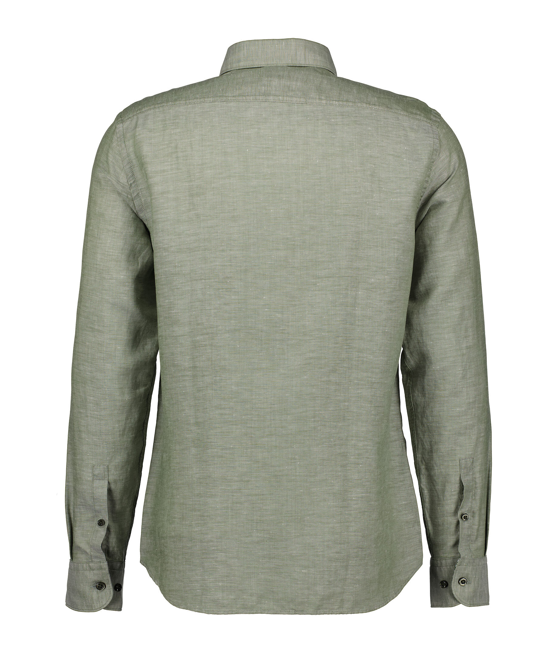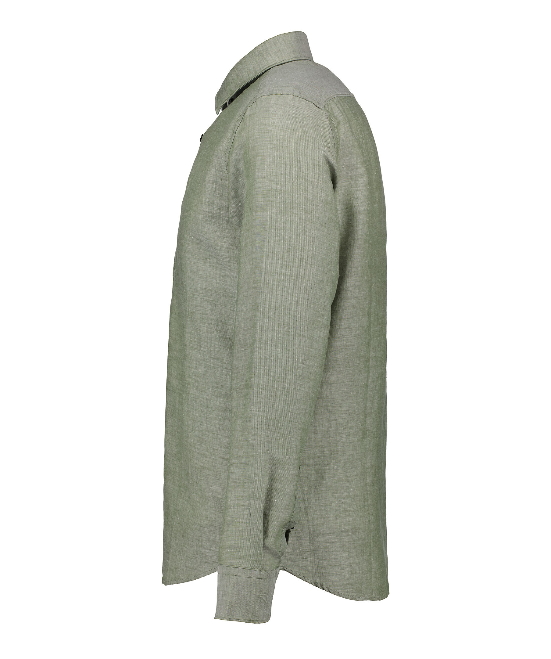 Grön linneskjorta från BOSS Black. Button-down krage. Kragen och manschetterna har en mönstrad insida. Tillverkad i en linne- och lyocellblandning. Ledig passform.