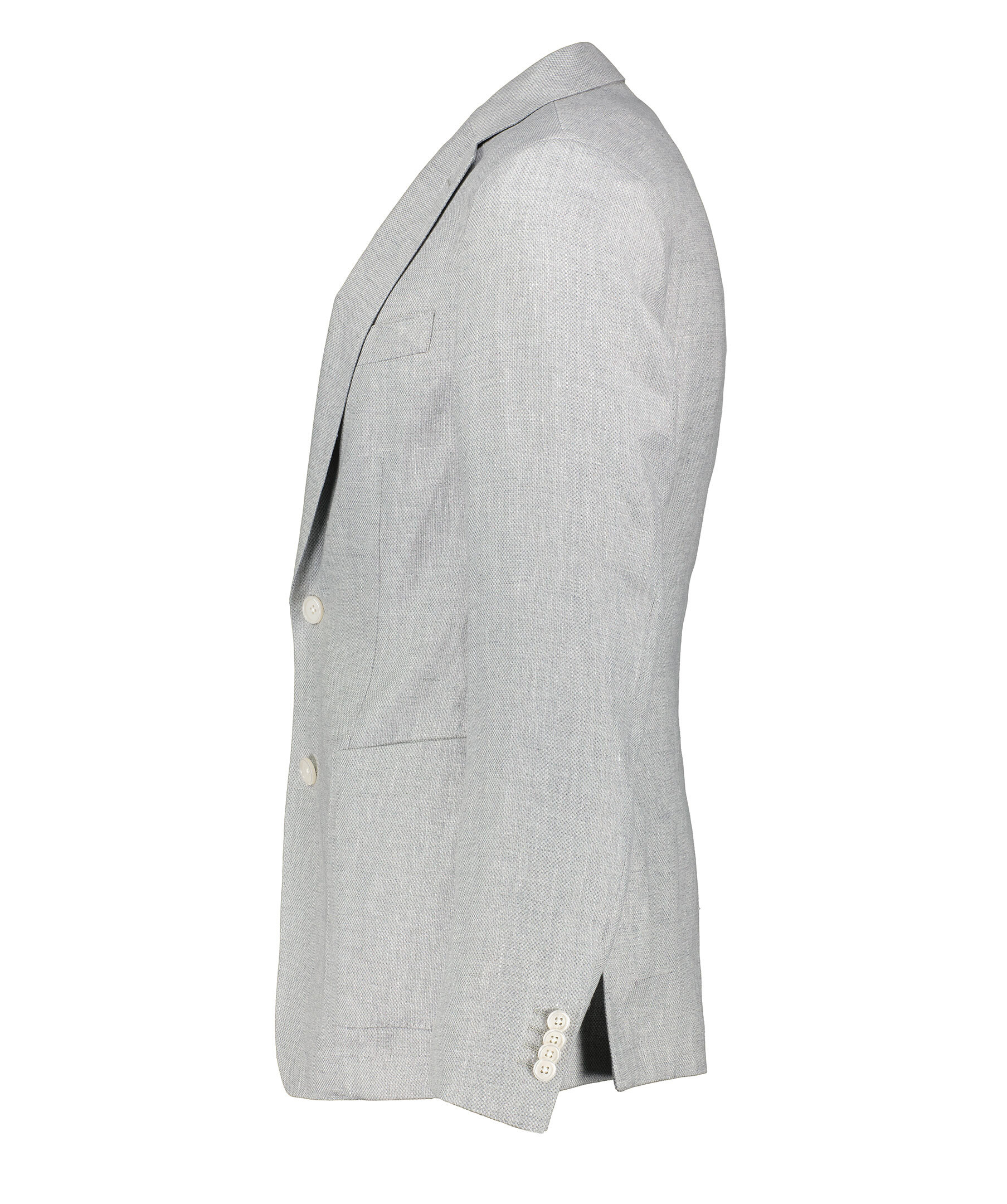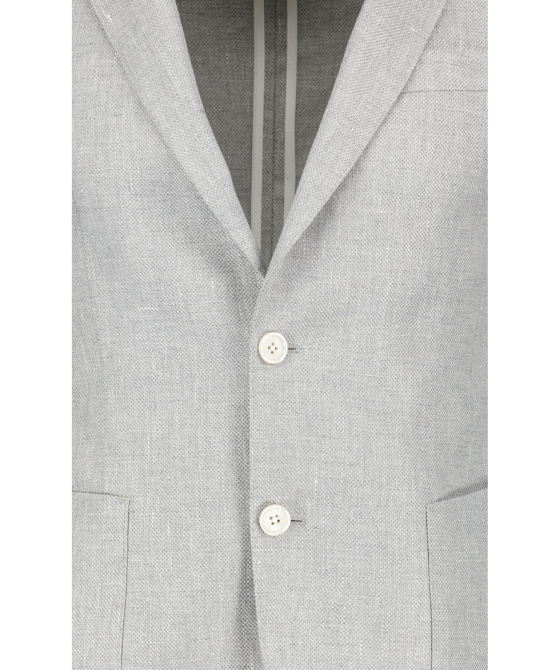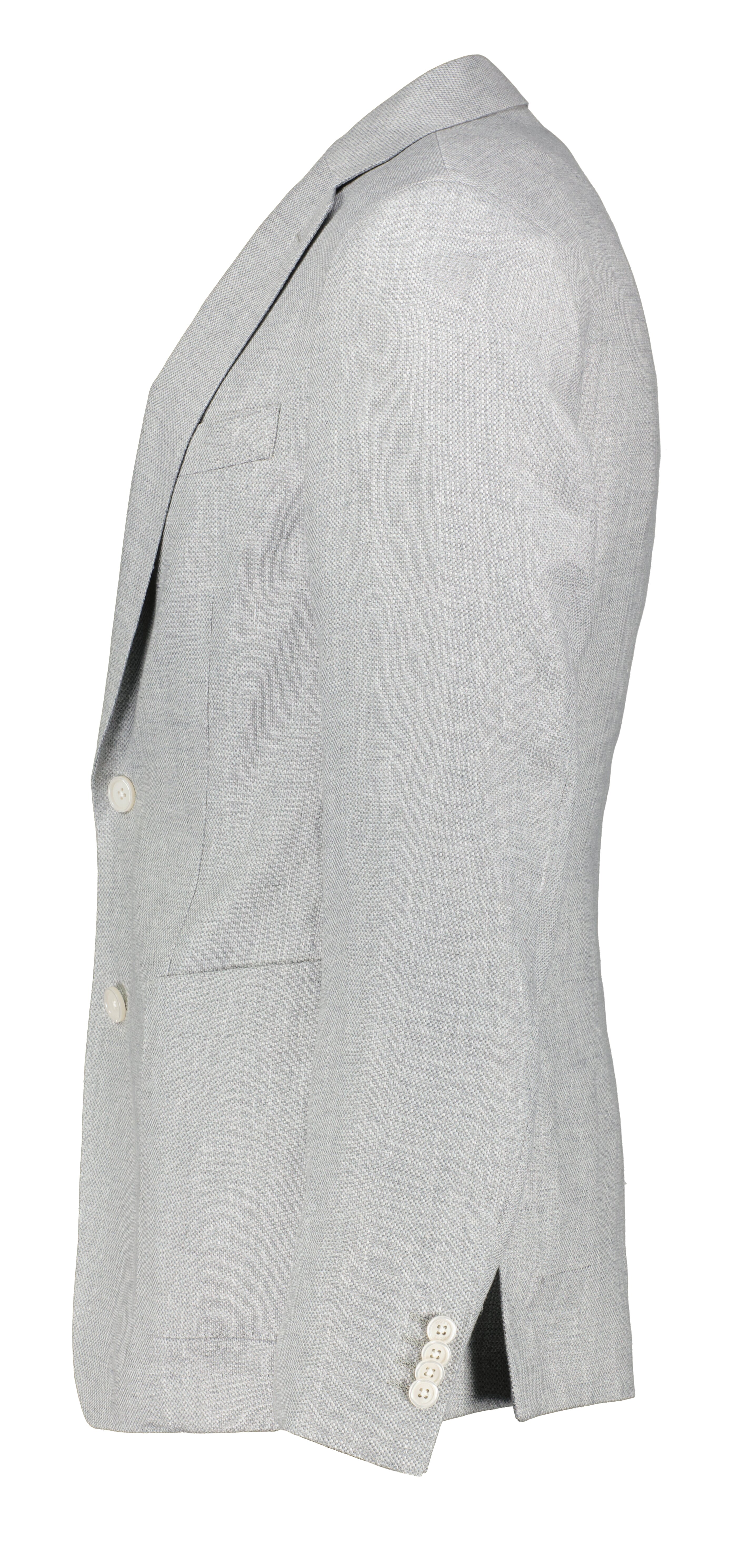 Grå raffinerad jacka från BOSS Black. Naggslag, två knappar framtill, en weltbröstficka samt två patchfickor. Sidoventiler. Skräddarsydd för en definierad passform och tillverkad i en linneblandning med stretch och ett subtilt mikromönster.
