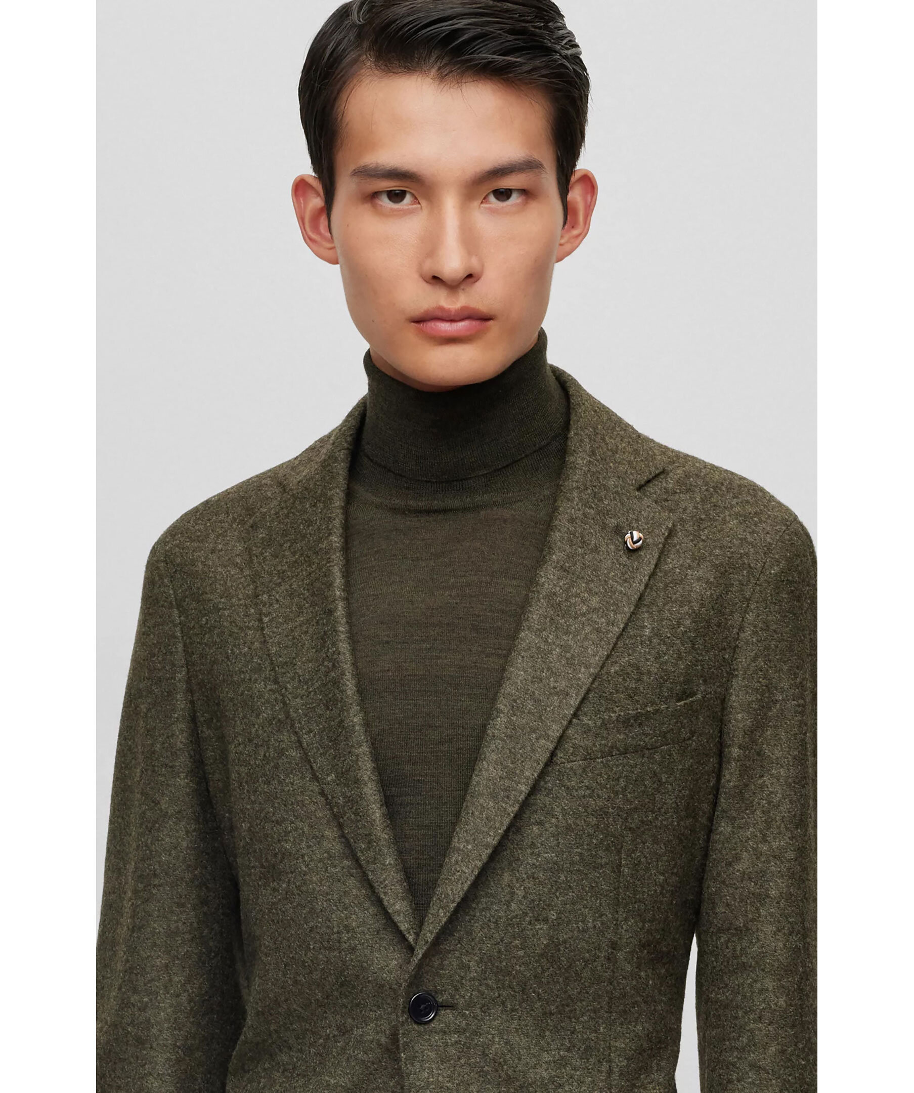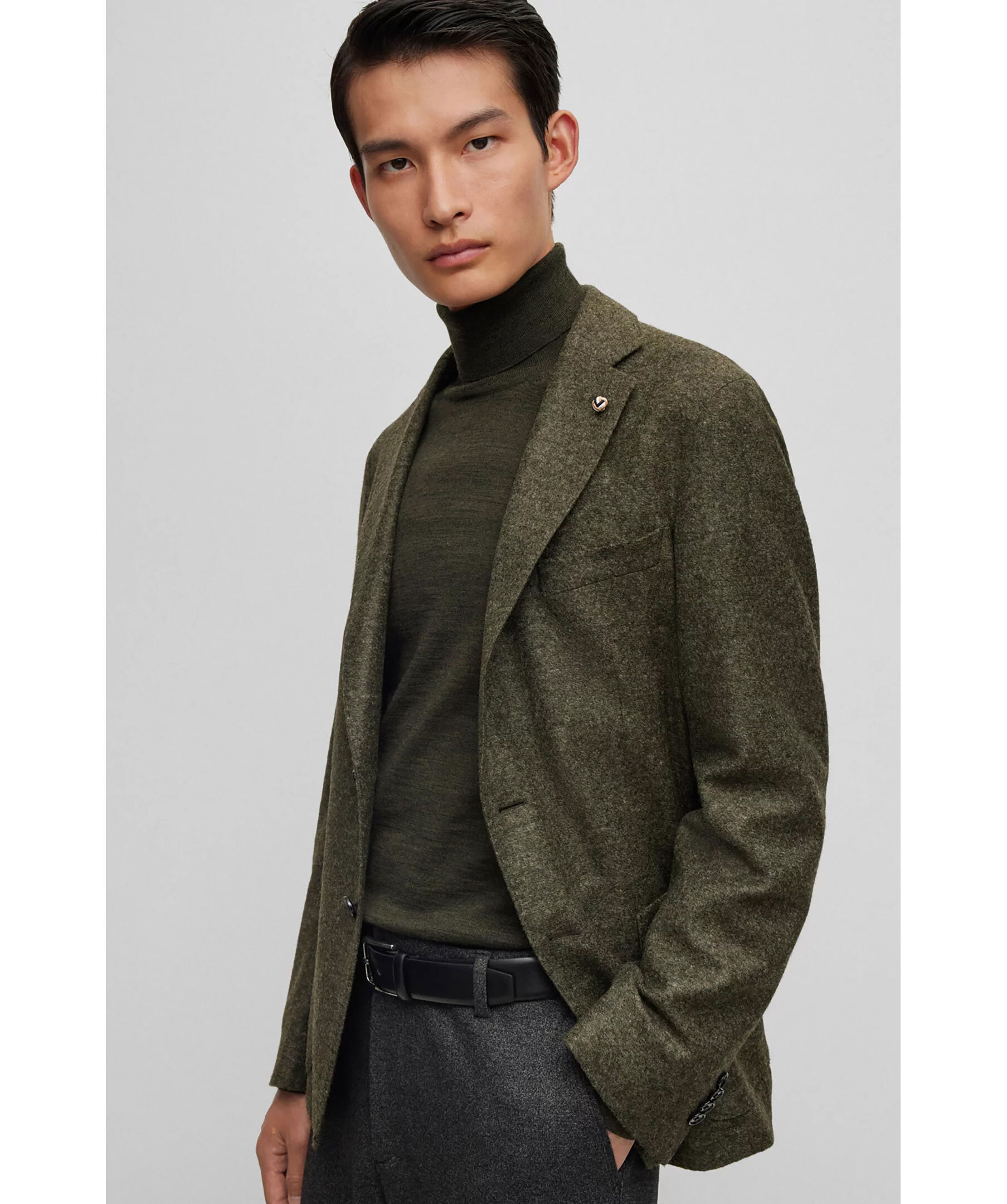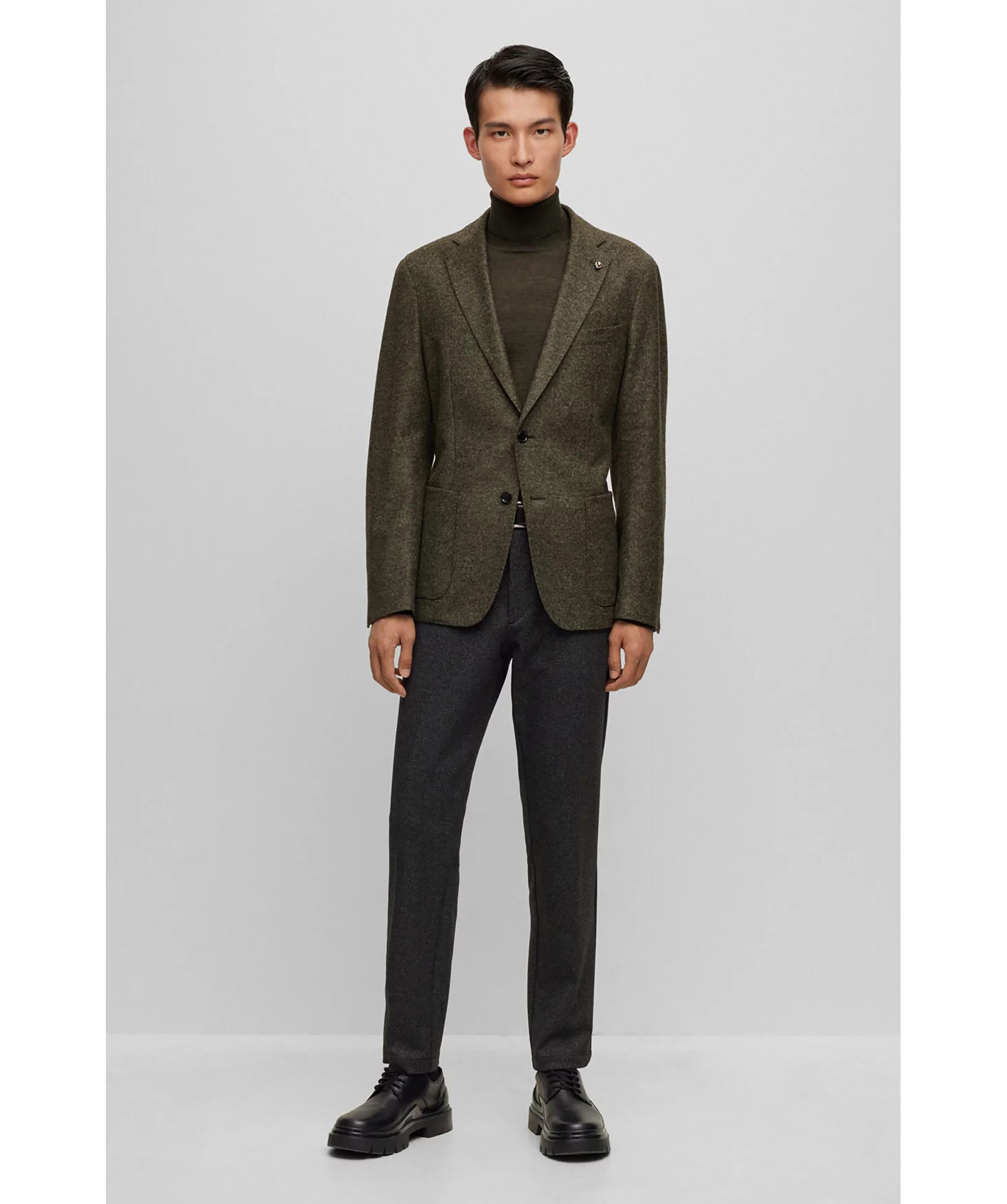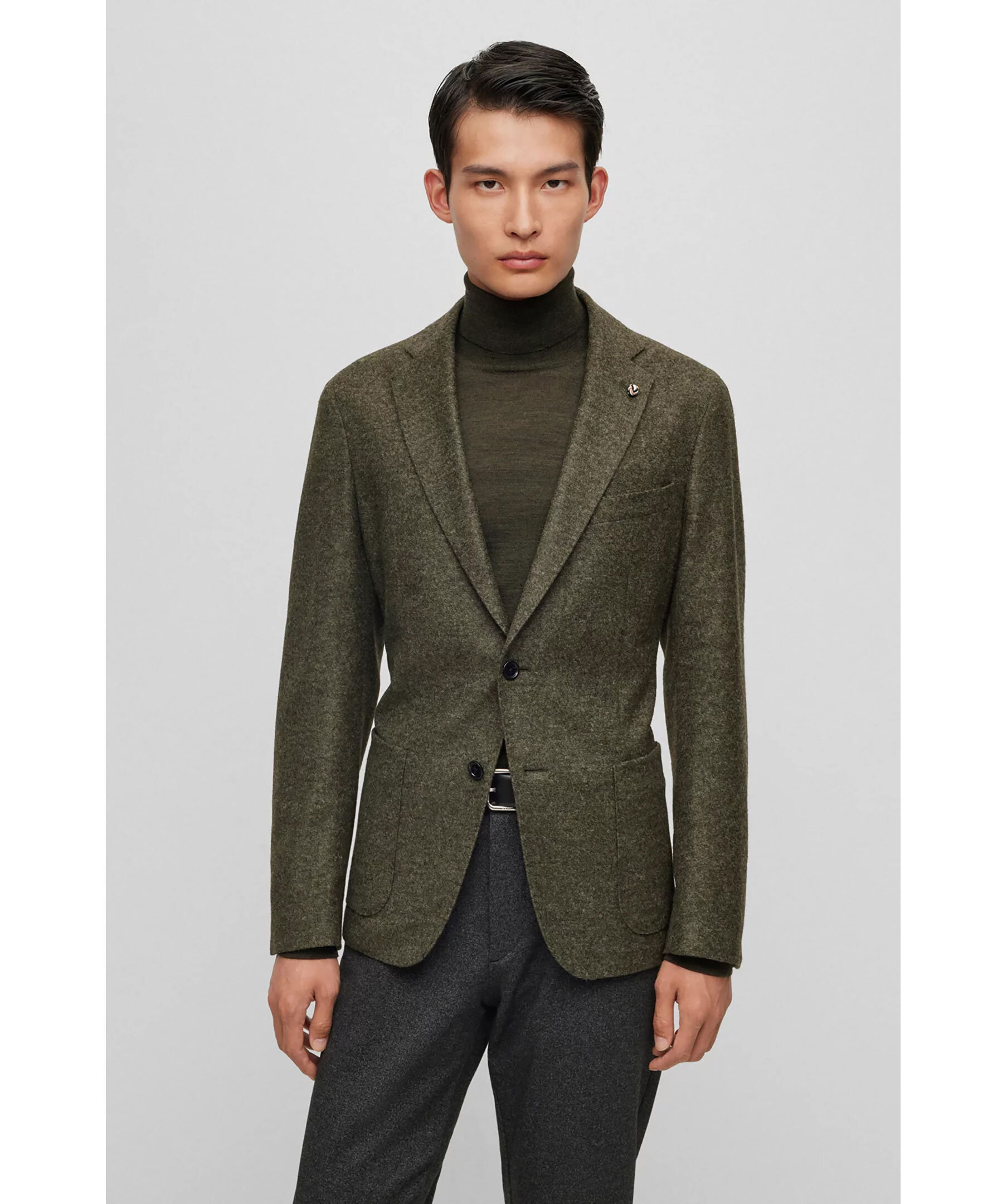 Grönmelerad kavaj från BOSS Black. Kavajen är ofodrad och har en slim fit passform. Stängs med två knappar framtill. Två öppna framfickor och en bröstficka. Trubbiga slag.