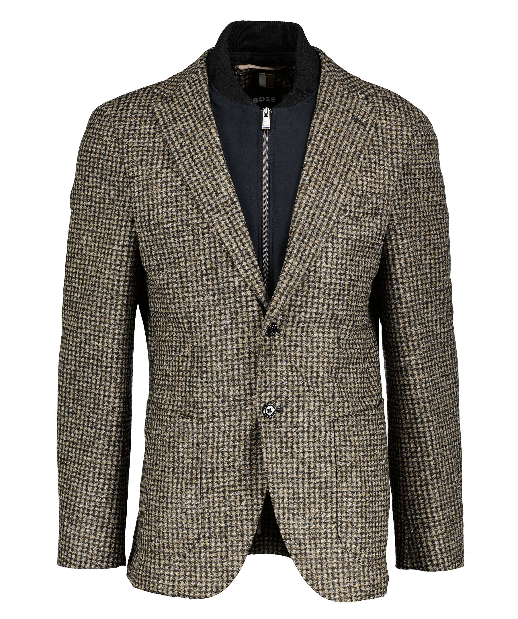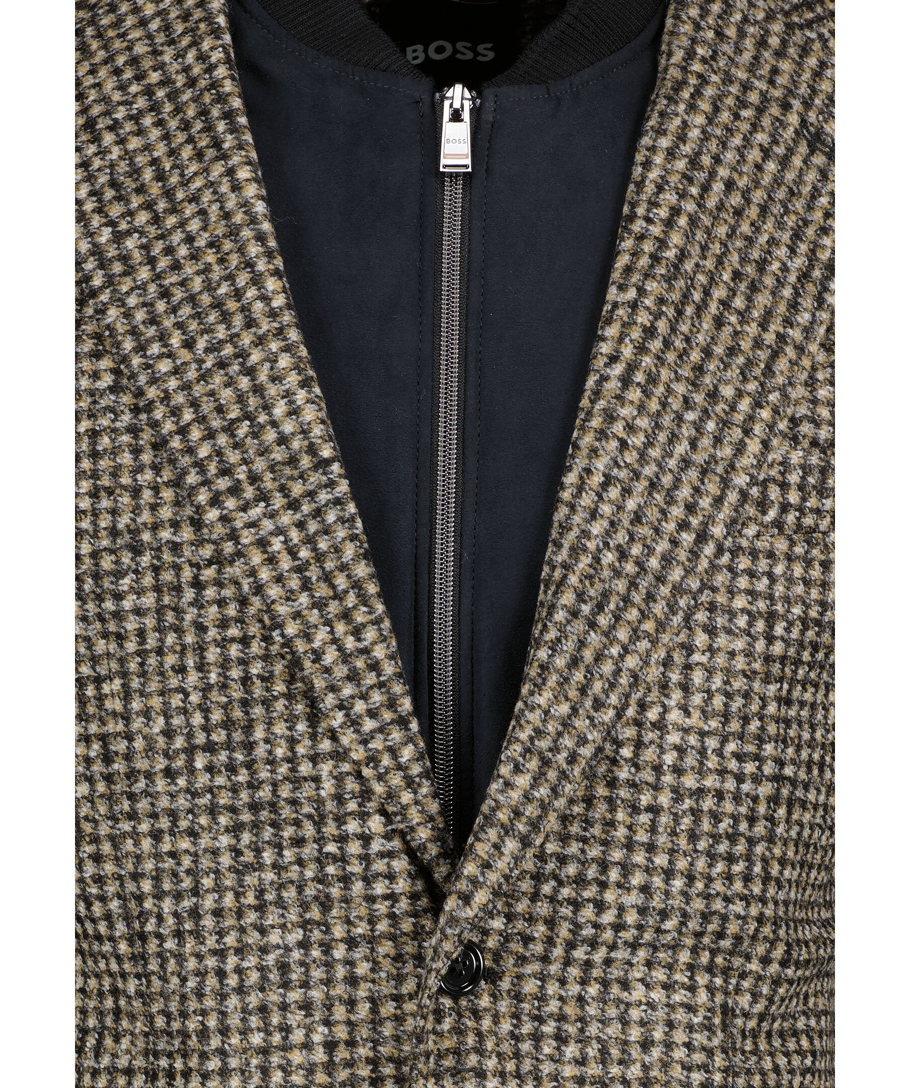 Beige och svart rutig kavaj från BOSS Black med avtagbar insida med dragkedja. Tillverkad i en polyester och ullblandning. Kavajen har två knappar framtill, två sidfickor samt en innerficka.