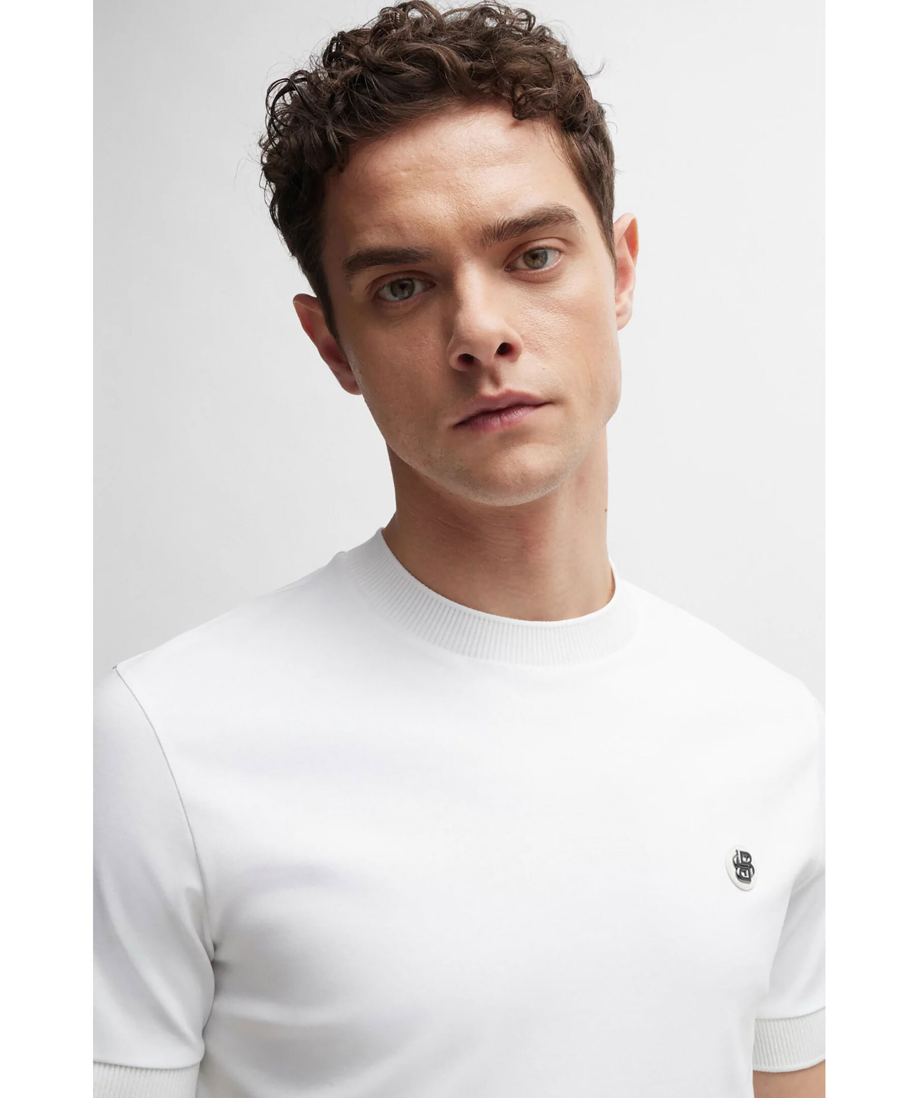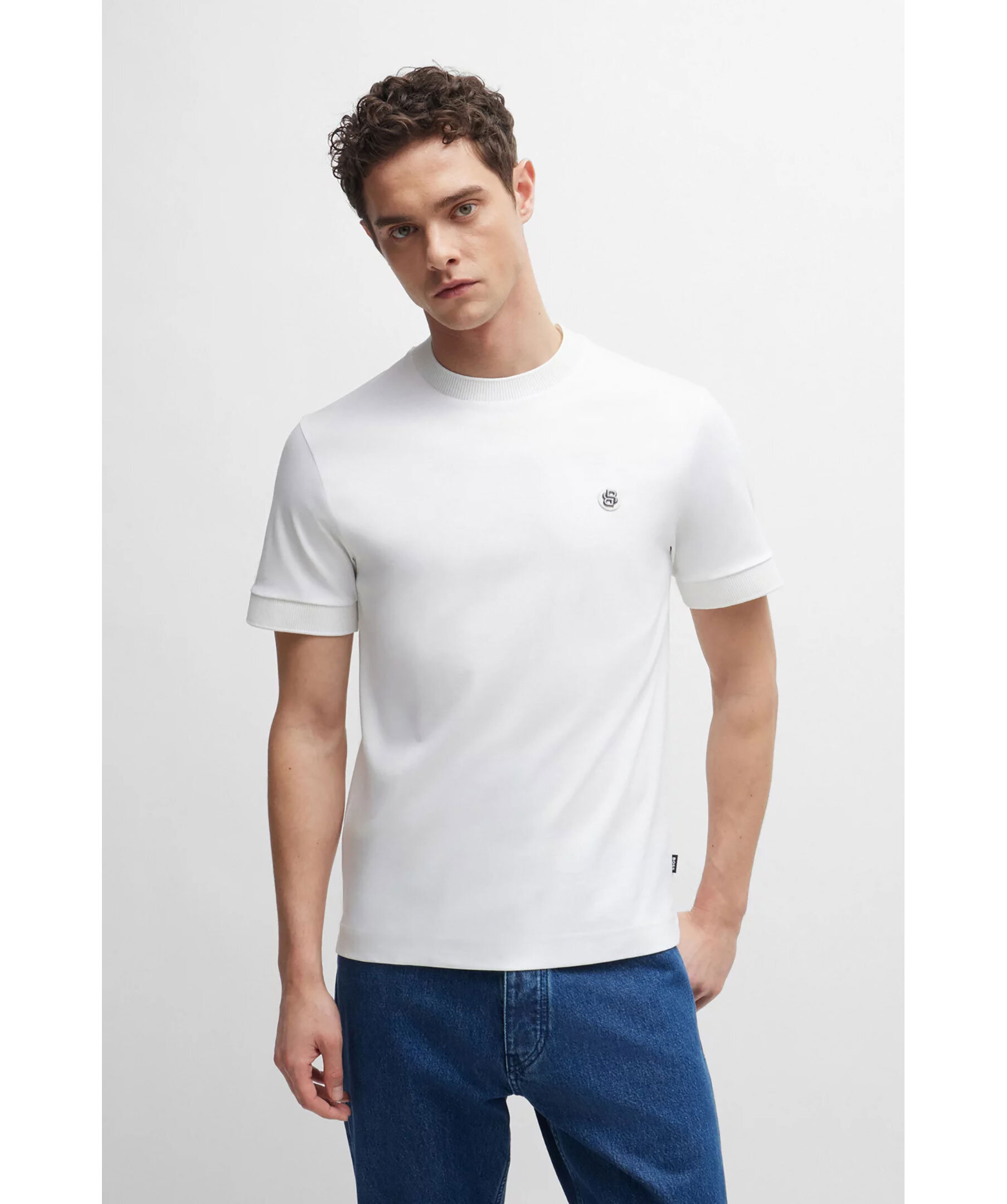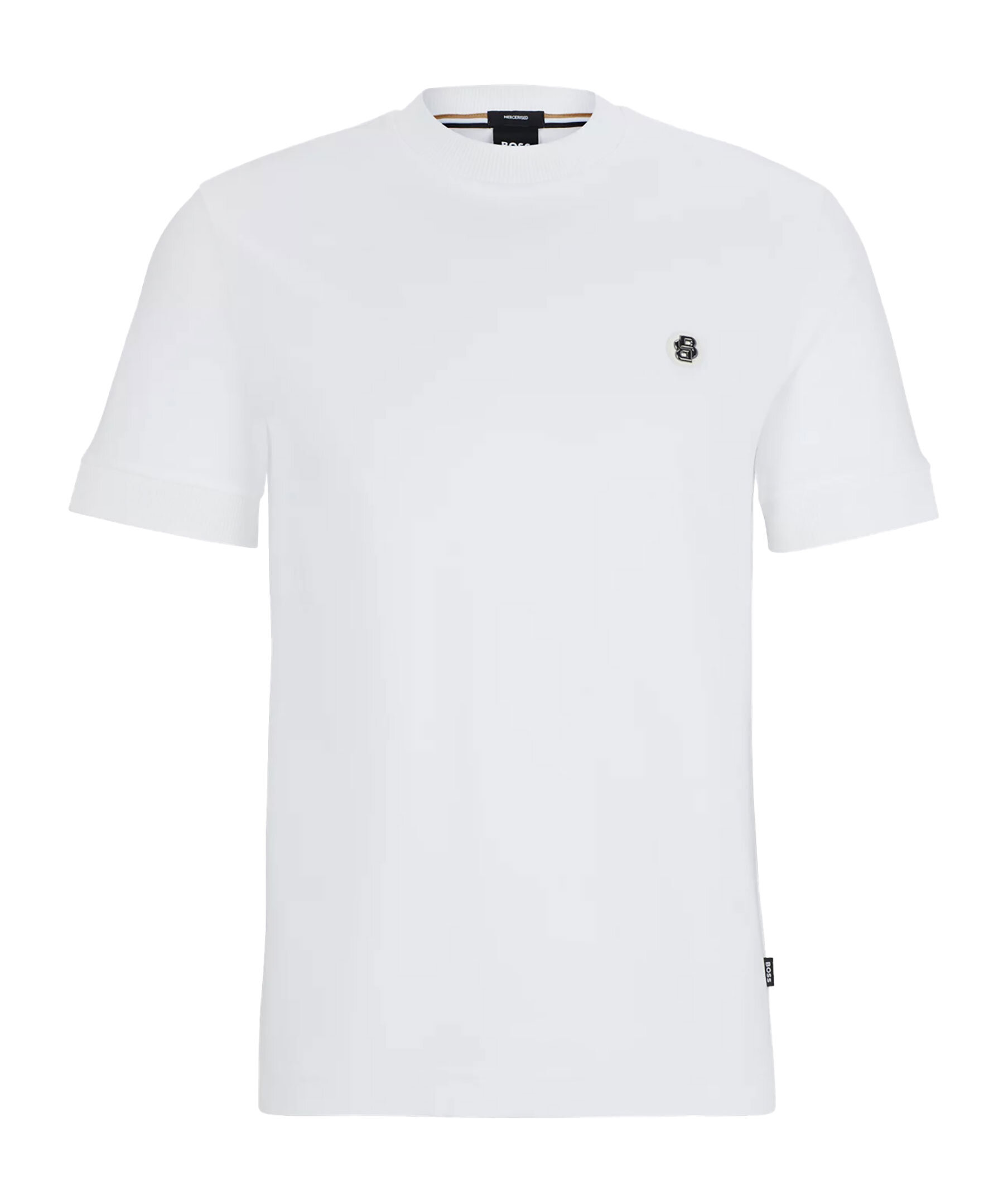 Vit t-shirt från HUGO. T-shirten har rund halsringning och ett litet dubbelmonogram i metall på bröstet. Tillverkad i bomull.