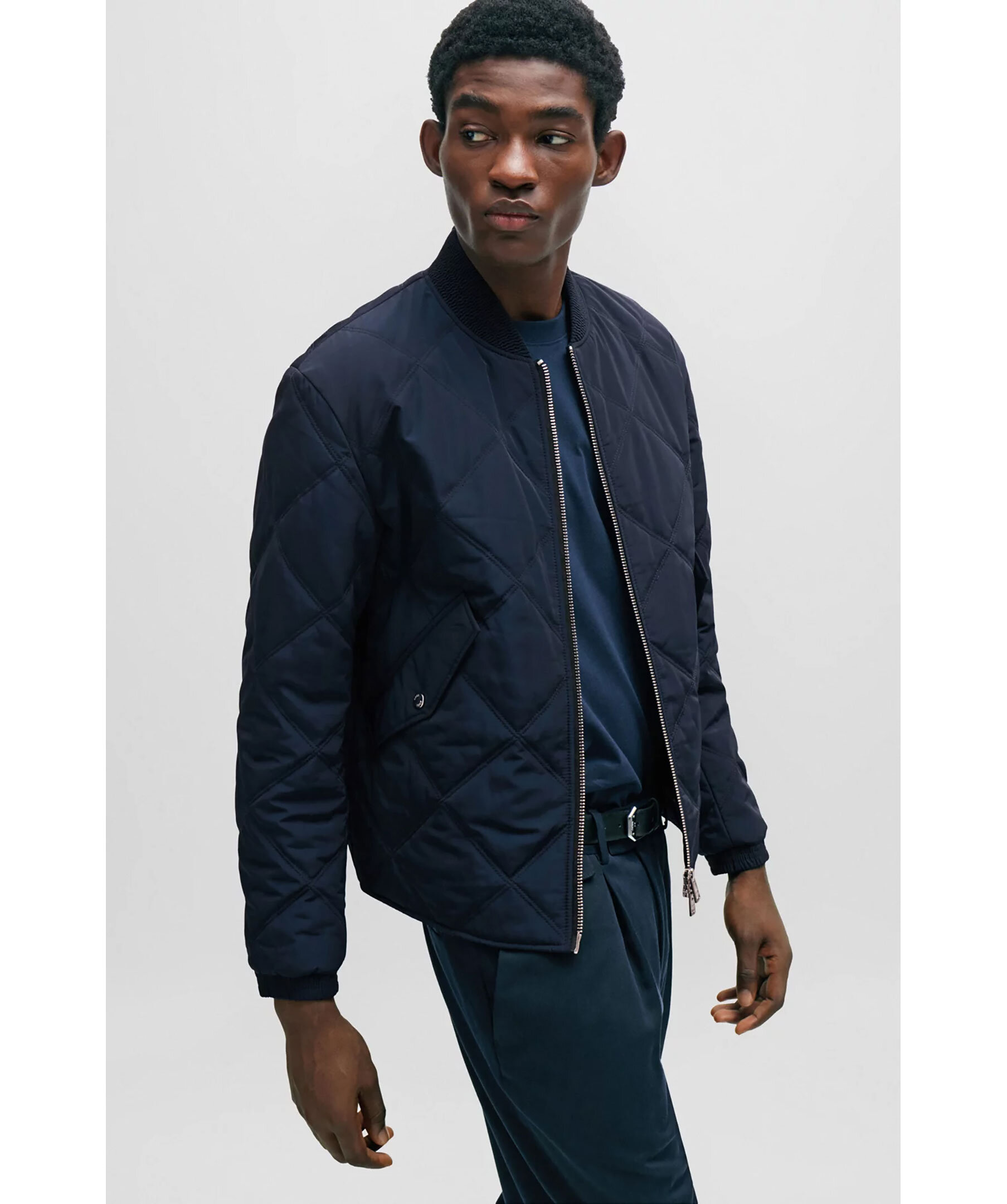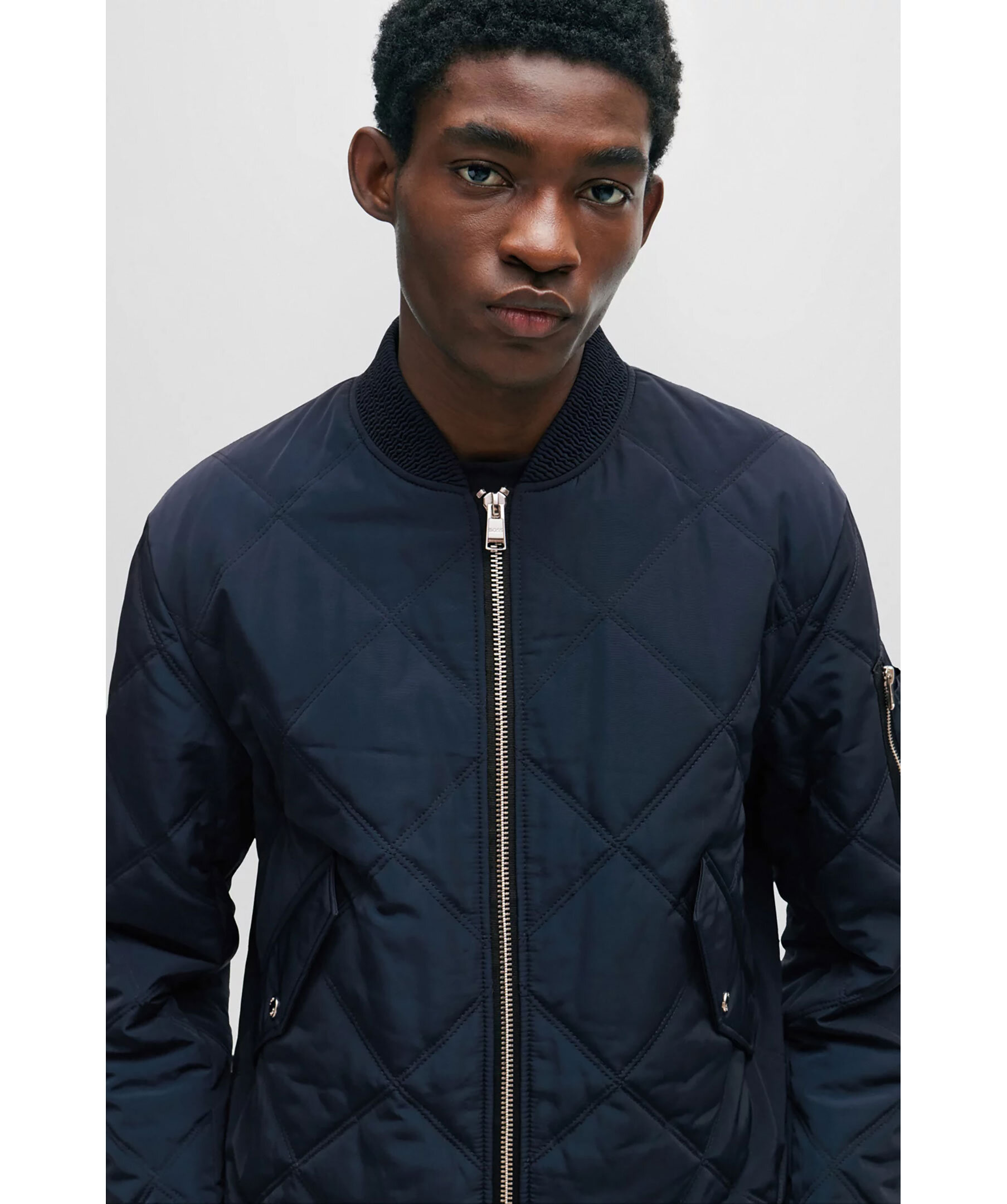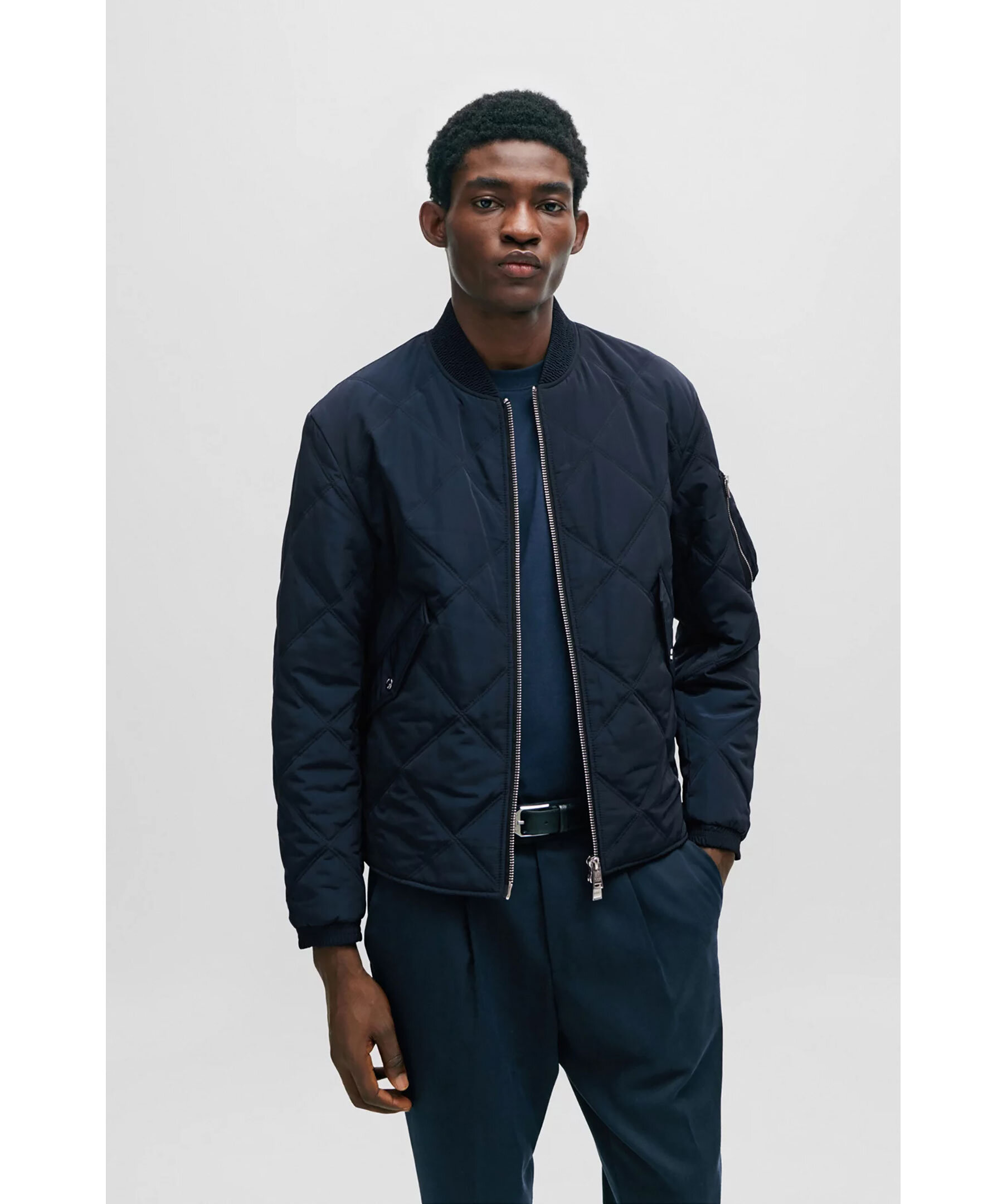 Mörkblå, diamantquiltad jacka från BOSS Black. Jackan har en collegekrage och blixtlåsförsedd ärmficka. Stängs med dragkedja framtill och har två sidfickor med knapp. Helt linjerad. Tillverkad i polyester. Normal passform.