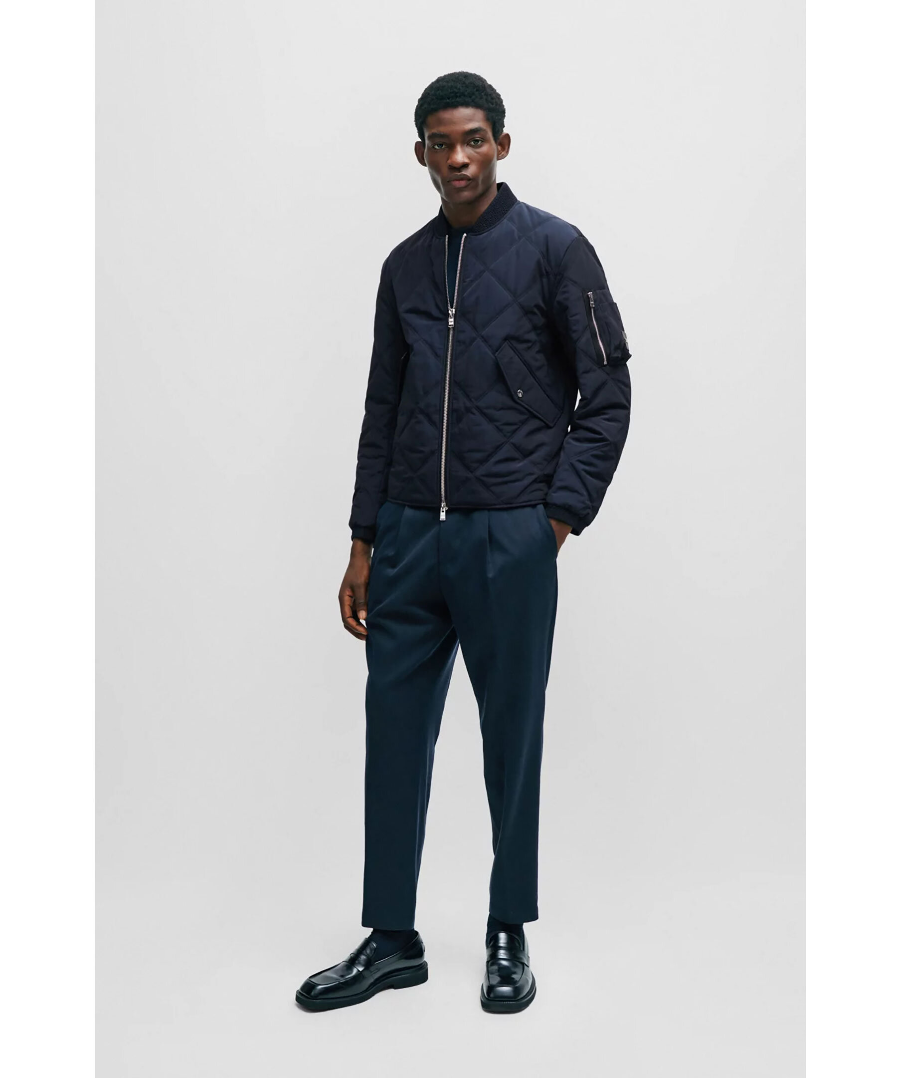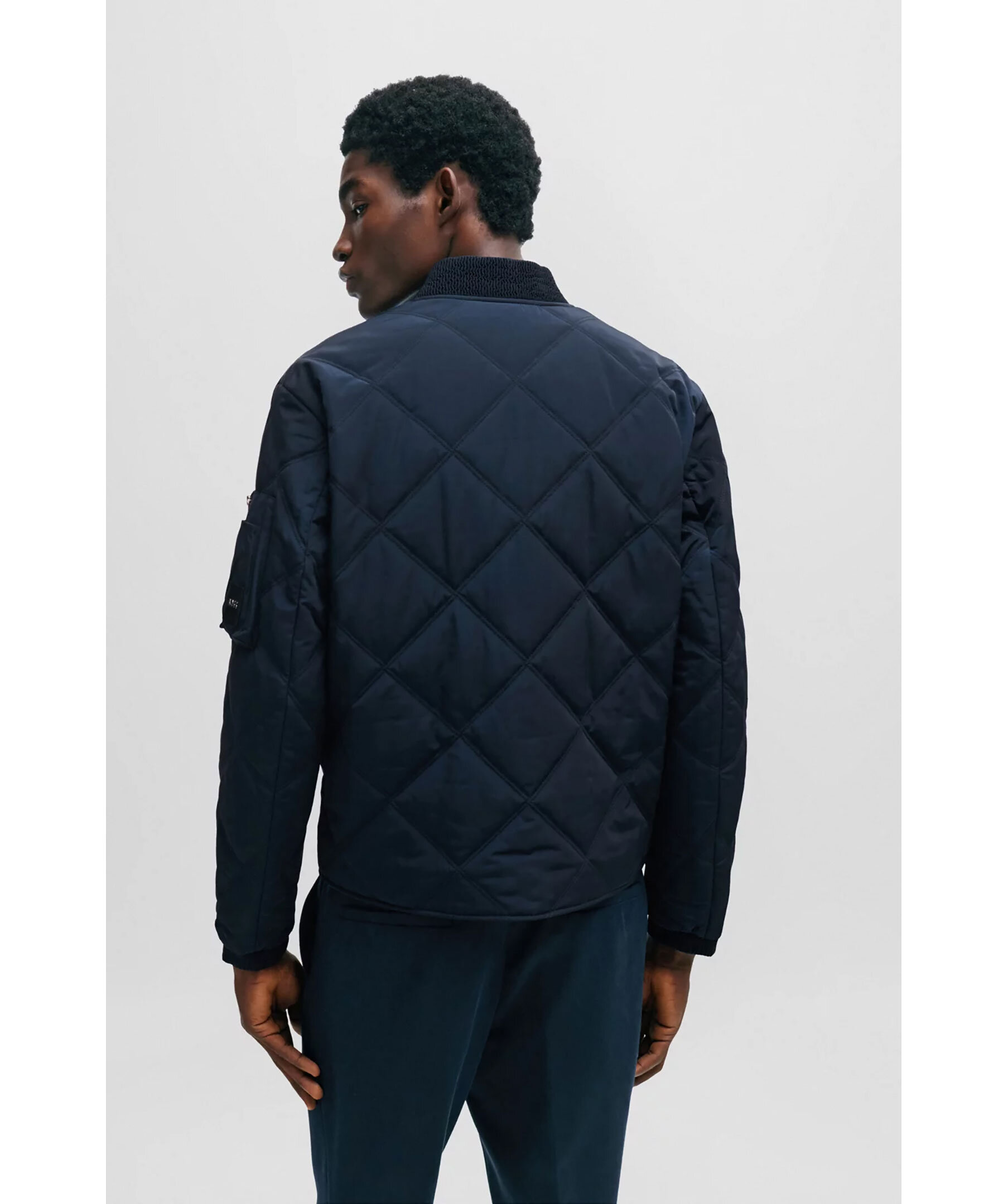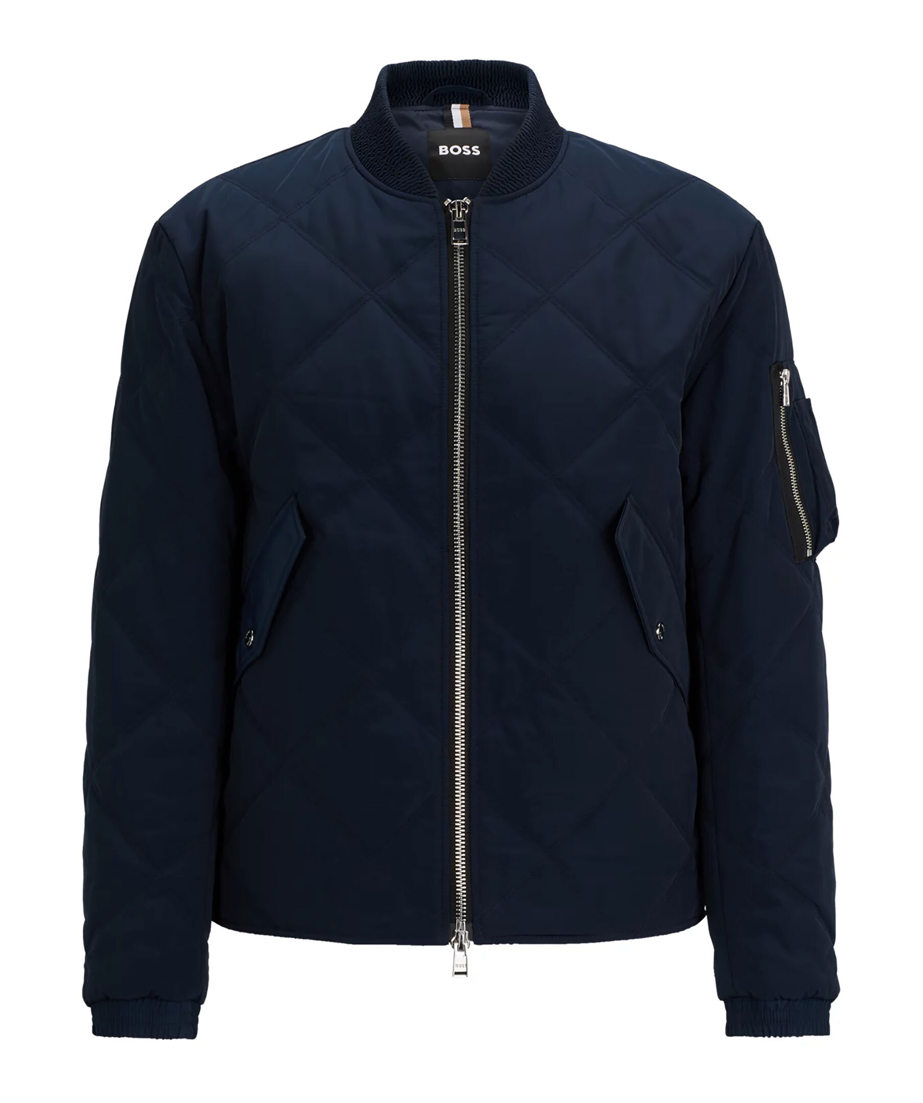 Mörkblå, diamantquiltad jacka från BOSS Black. Jackan har en collegekrage och blixtlåsförsedd ärmficka. Stängs med dragkedja framtill och har två sidfickor med knapp. Helt linjerad. Tillverkad i polyester. Normal passform.