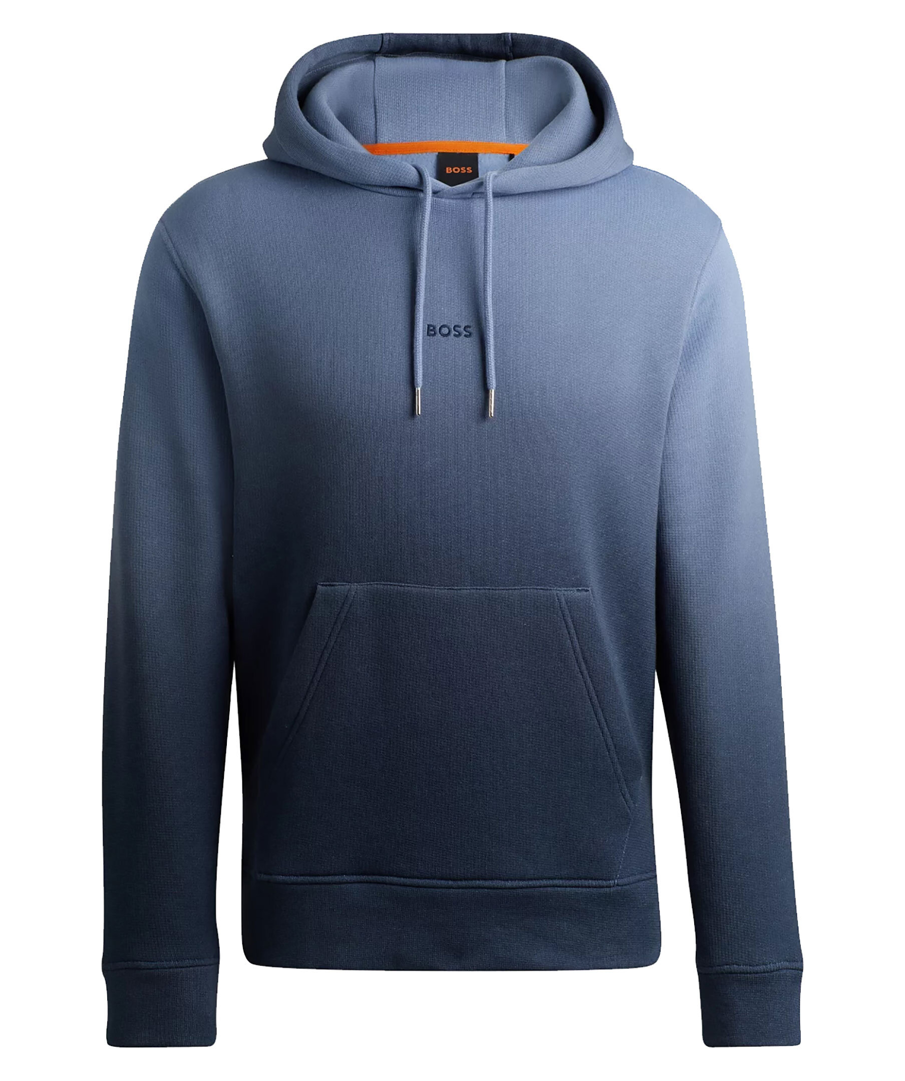Blå hoodie med en gradienteffekt från BOSS Orange. Hoodien har huva med dragsko, känguruficka på magen och en liten logotyp på bröstet. Tillverkad i bomullsfrotté.
