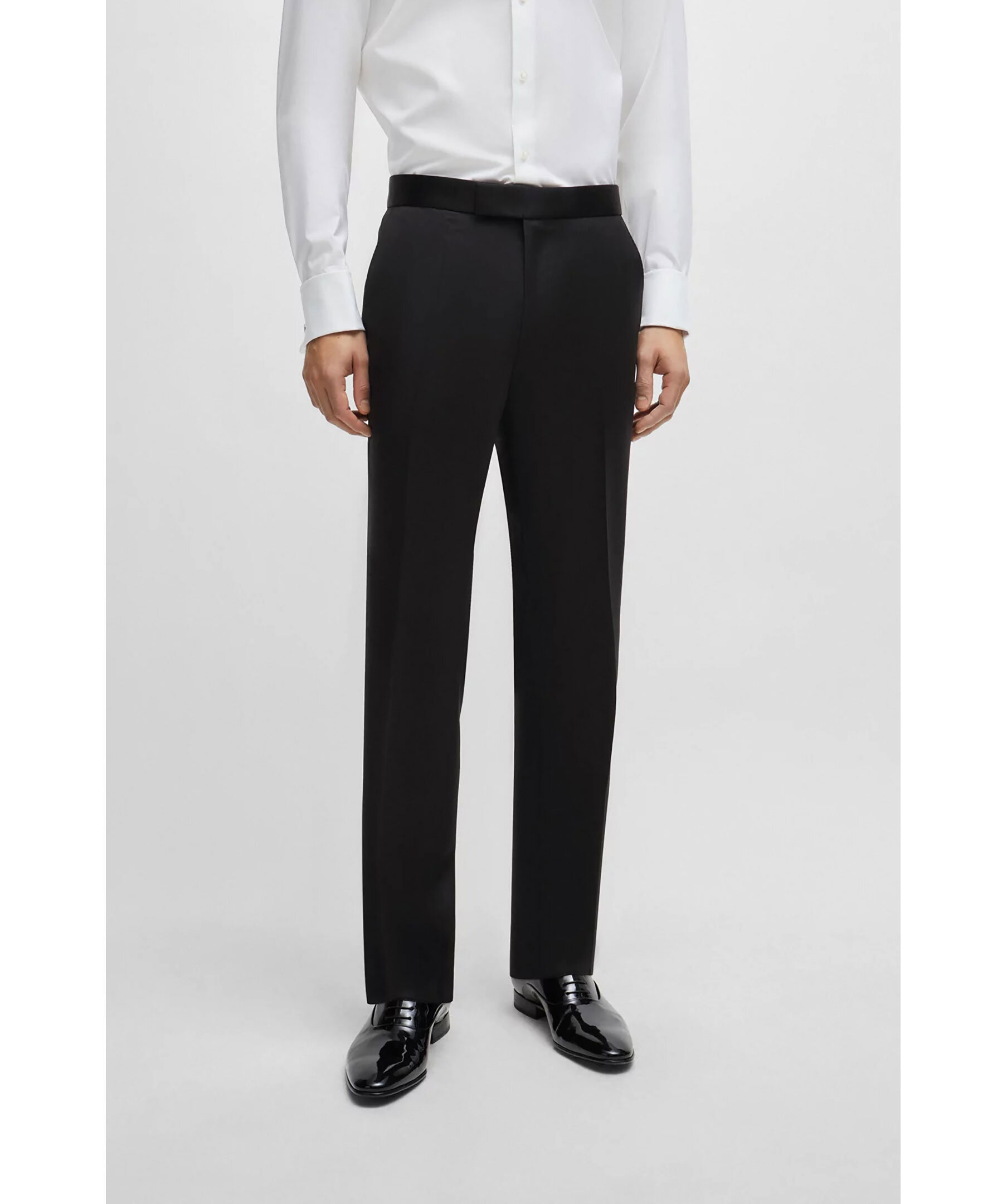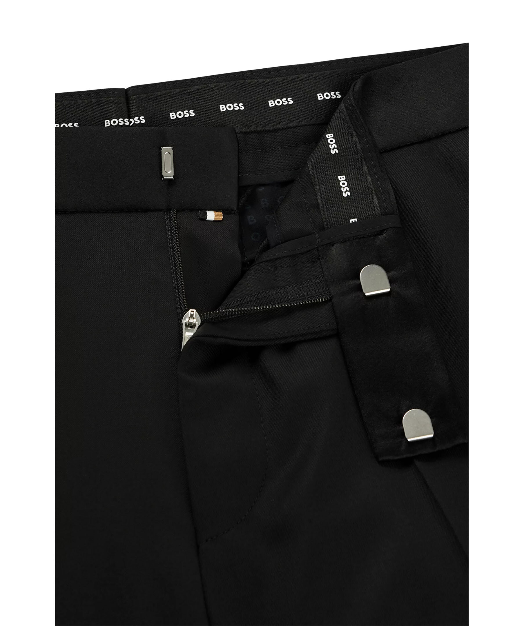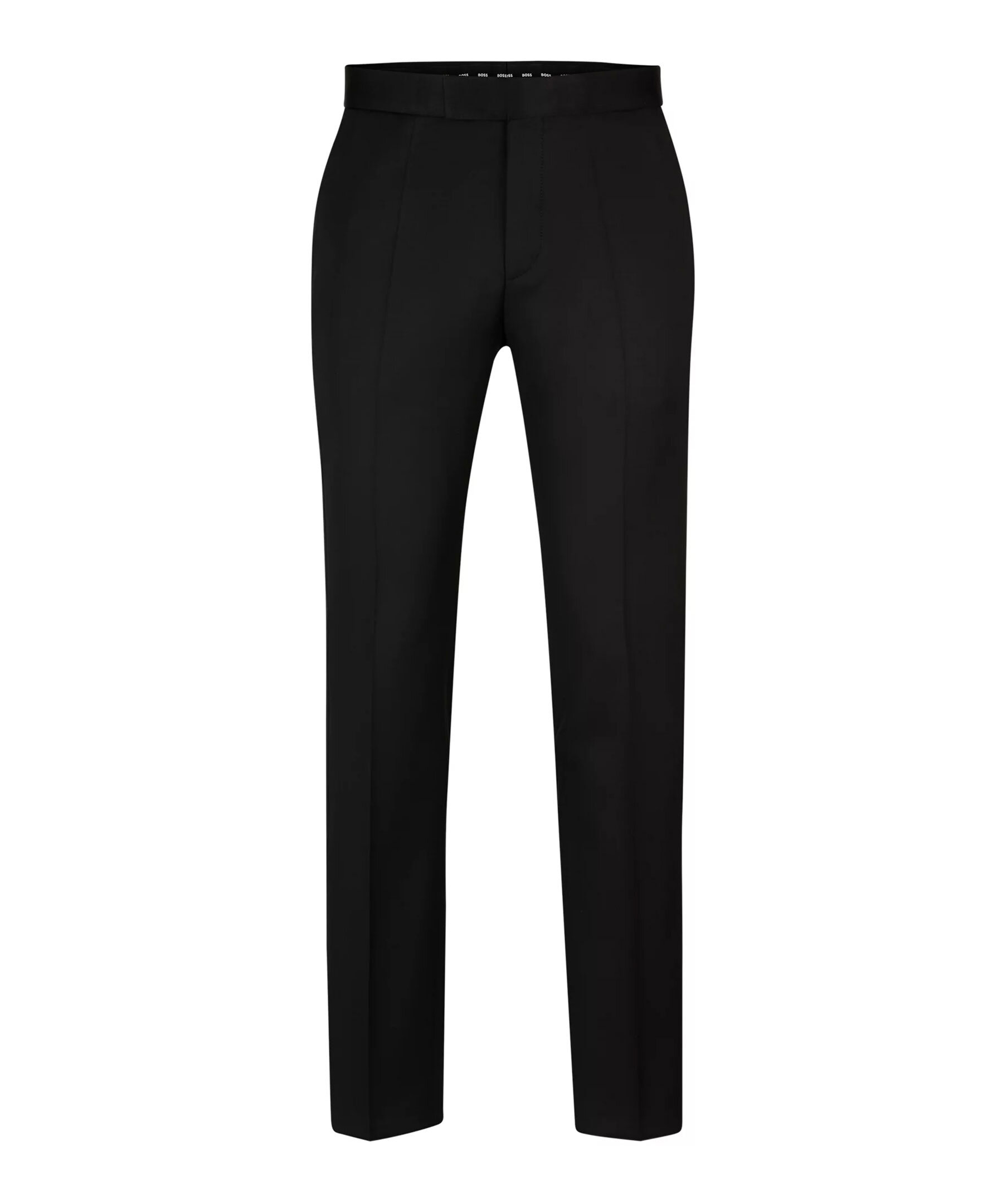 Svarta kostymbyxor från BOSS Black. Kostymbyxorna har två sidfickor och två passpoalfickor baktill. Pressveck. Tillverkade i jungfruull.
