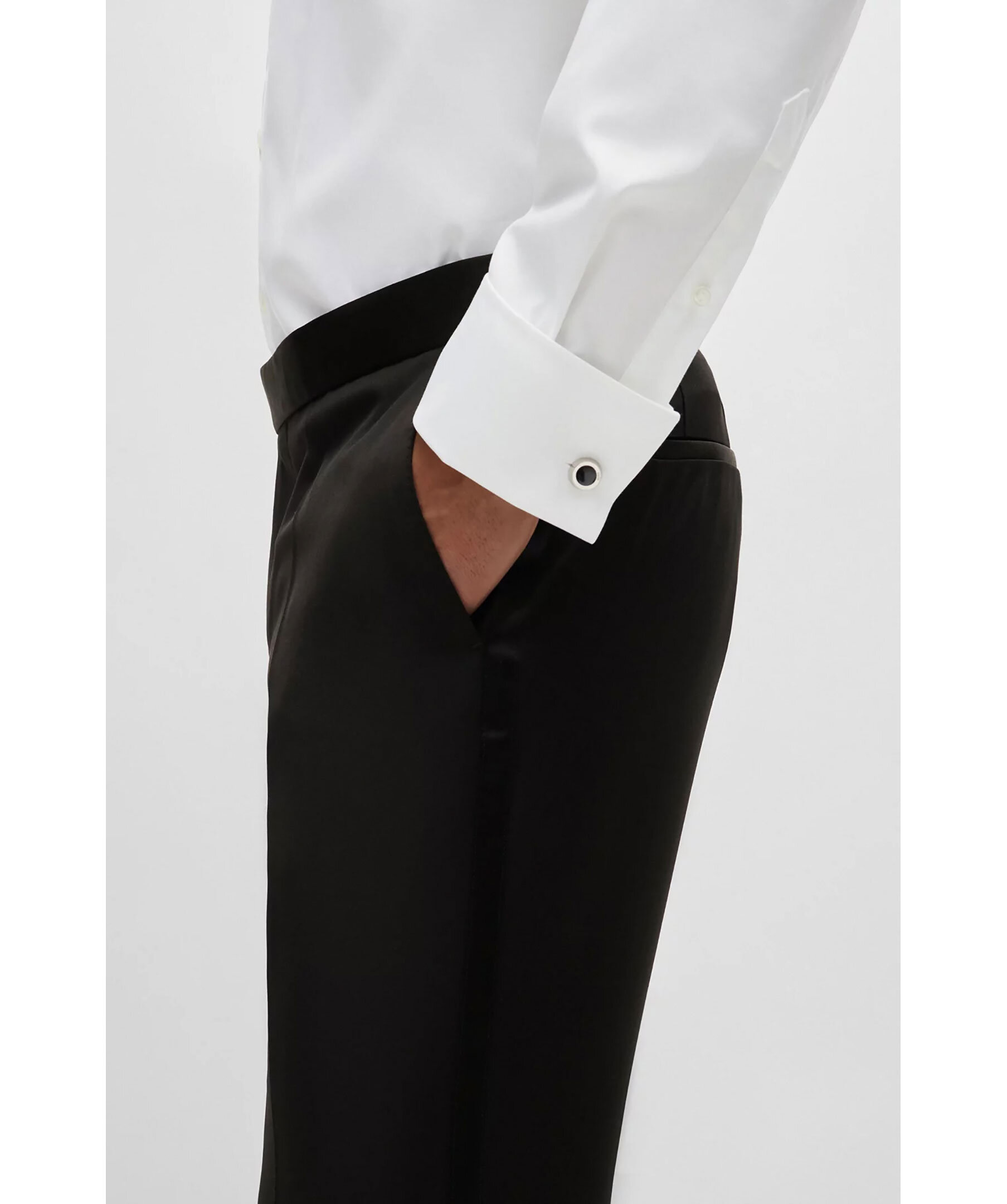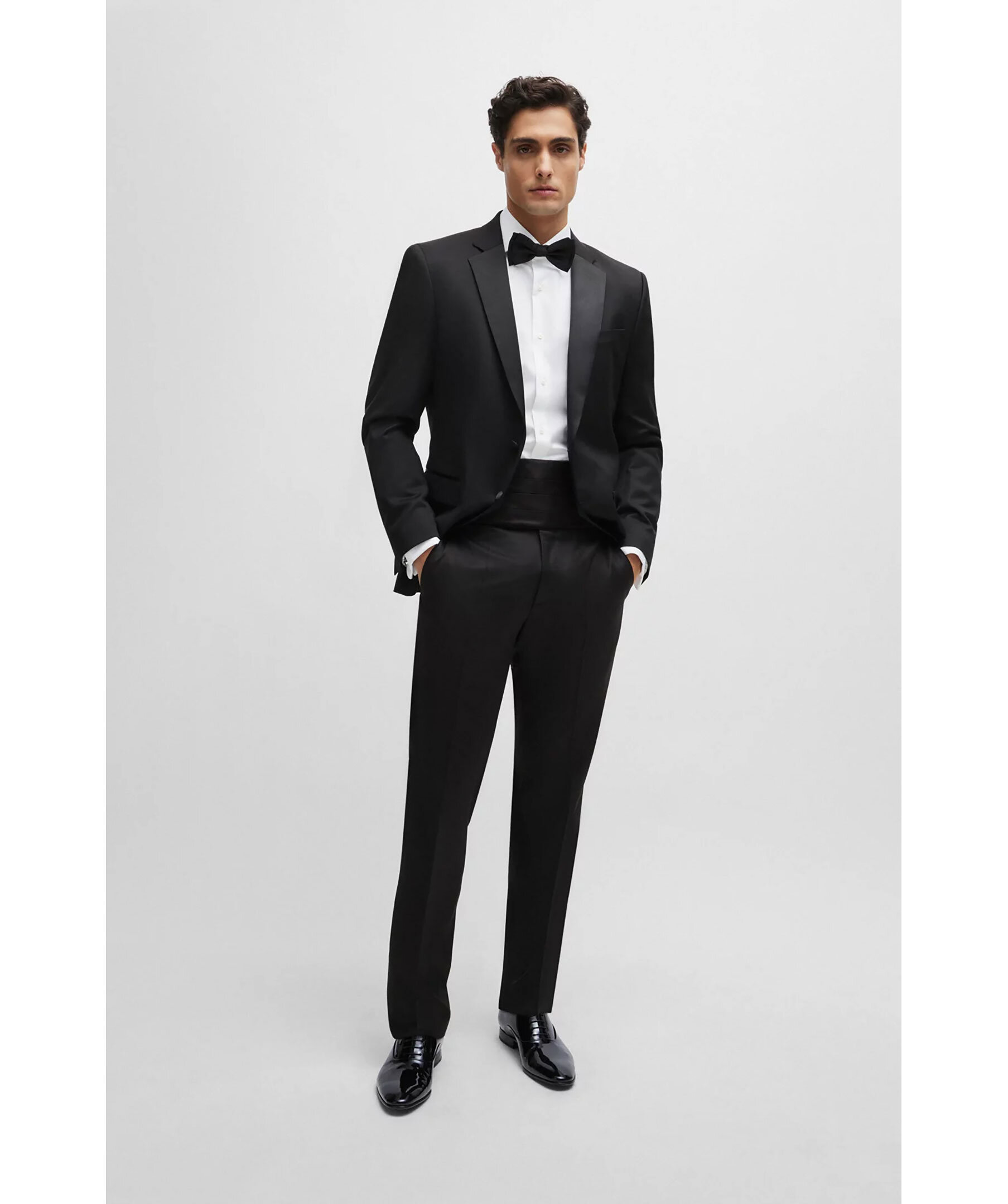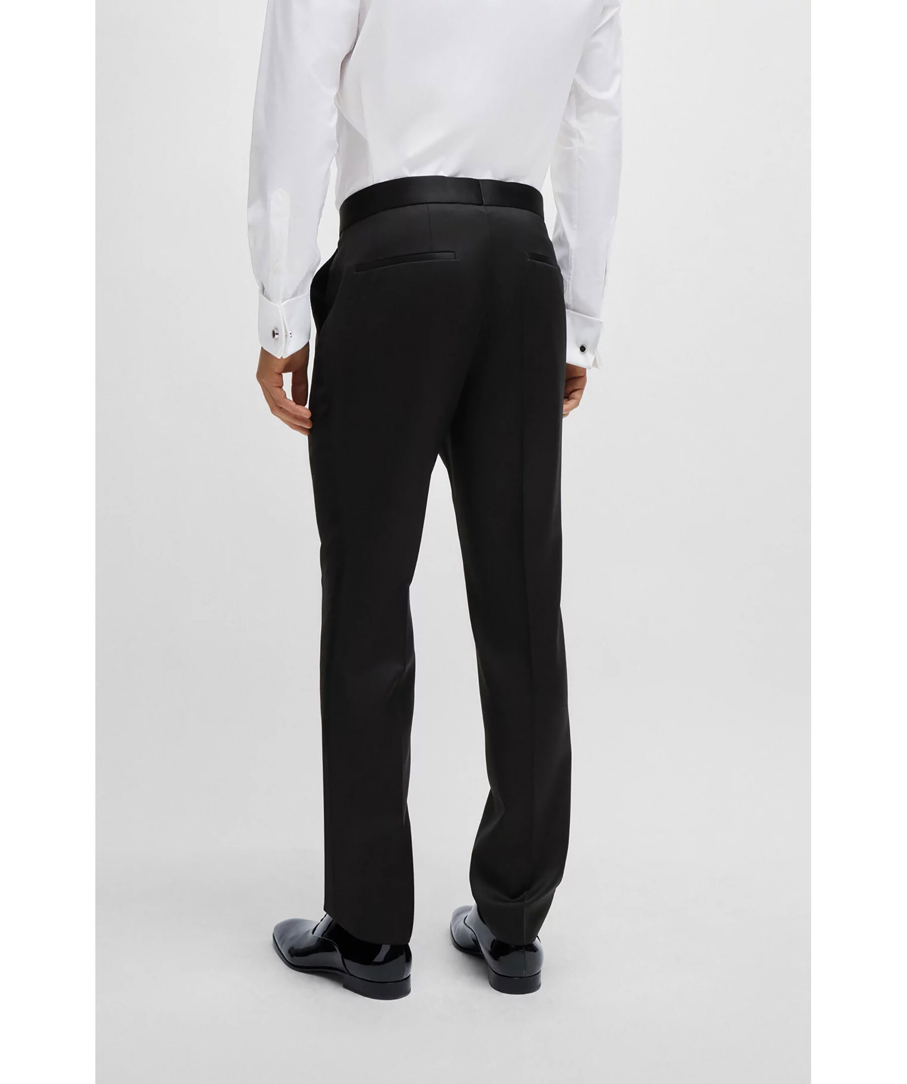Svarta kostymbyxor från BOSS Black. Kostymbyxorna har två sidfickor och två passpoalfickor baktill. Pressveck. Tillverkade i jungfruull.