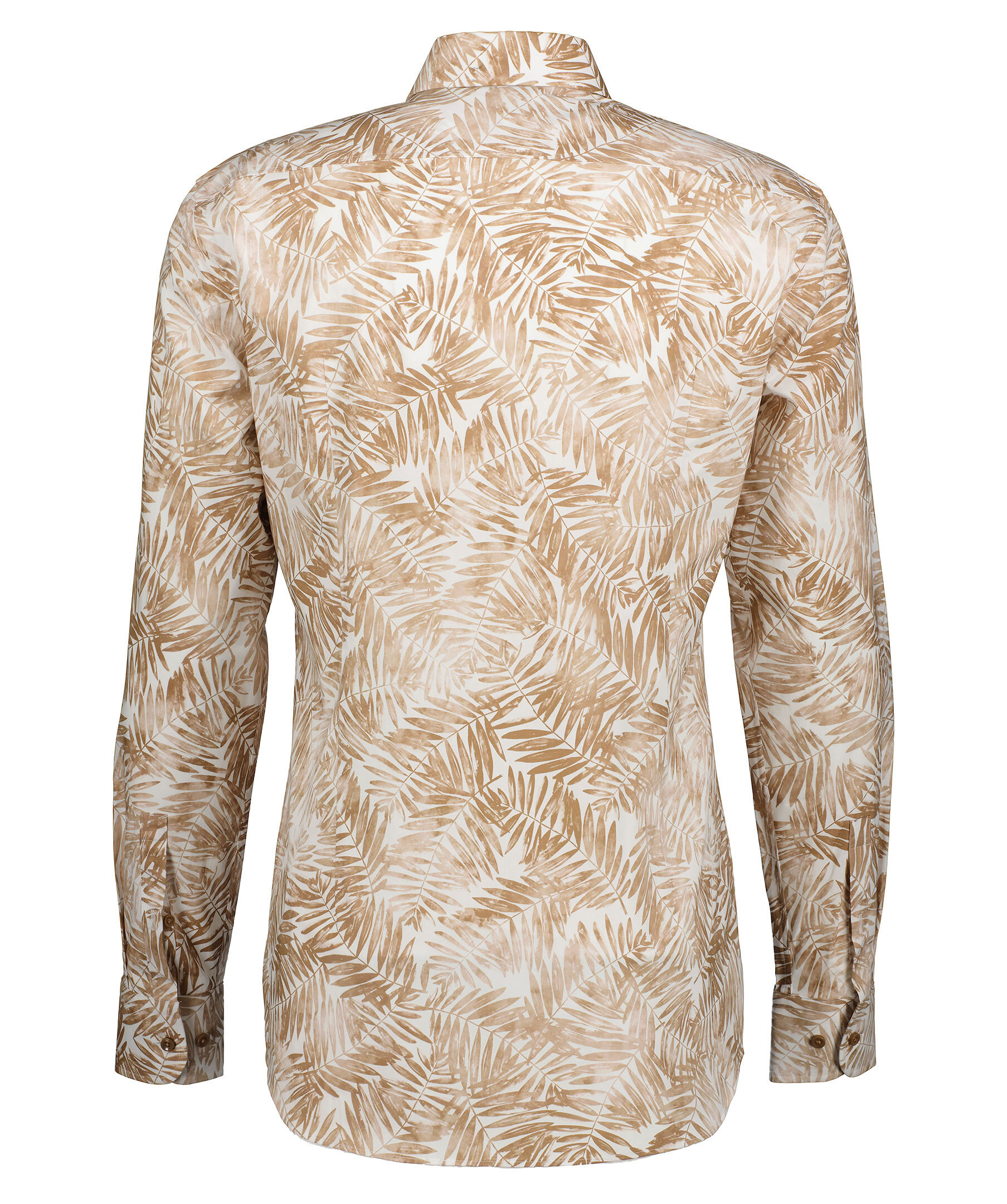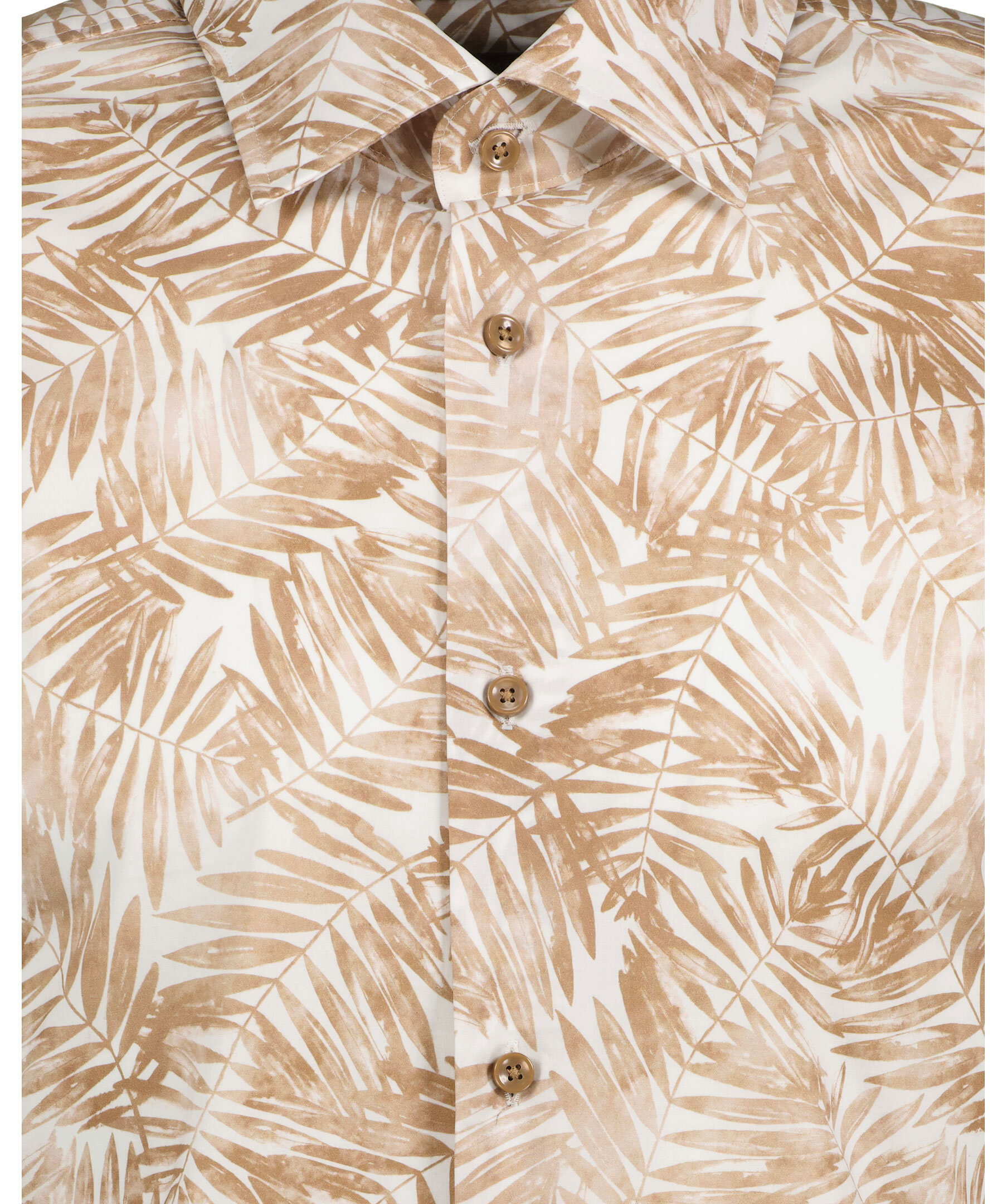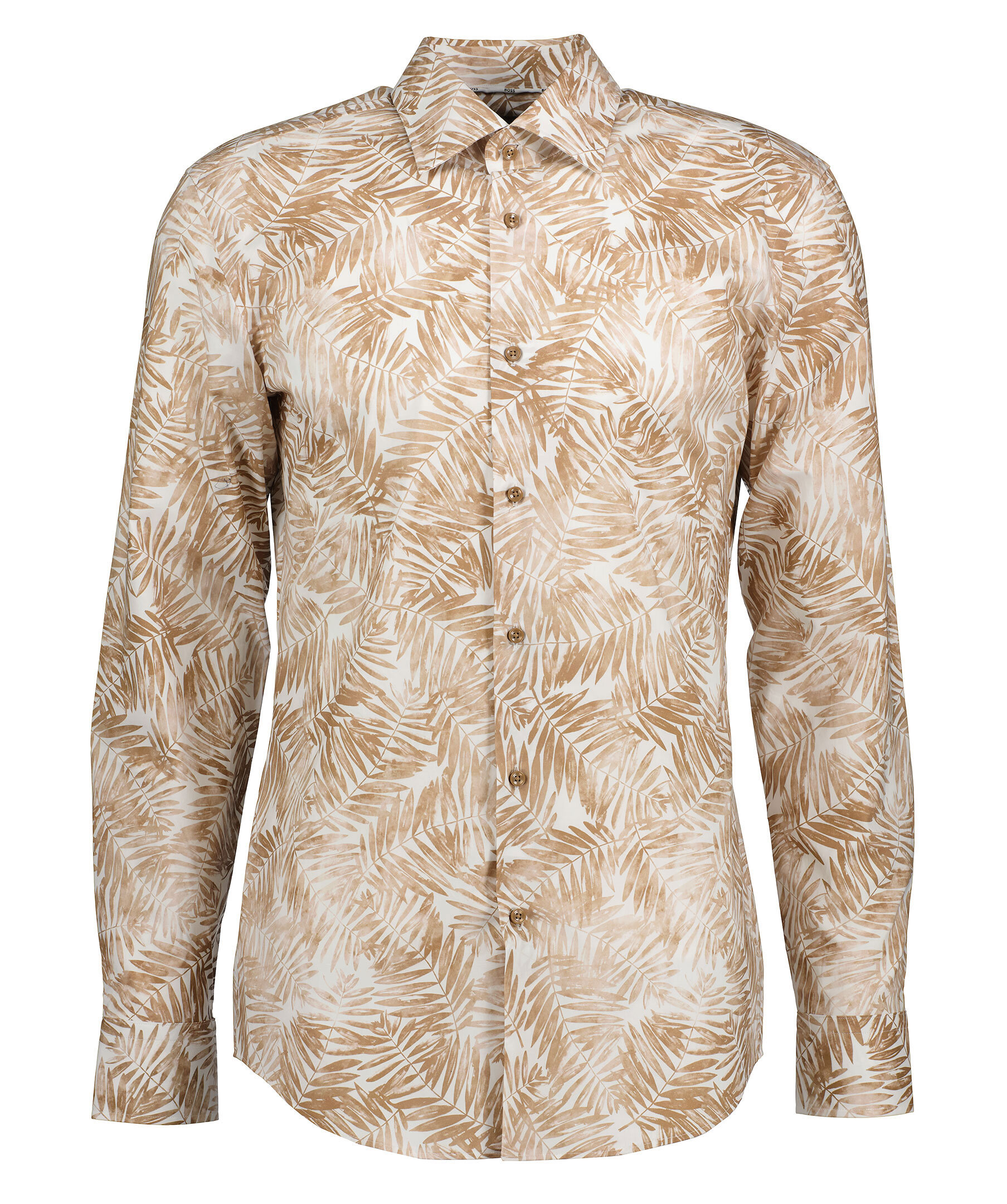 Vit och beige mönstrad skjorta från BOSS Black. Stängs framtill med knappar. Spetsig krage. Enkla manschetter. Tillverkad i bomullsblandning.