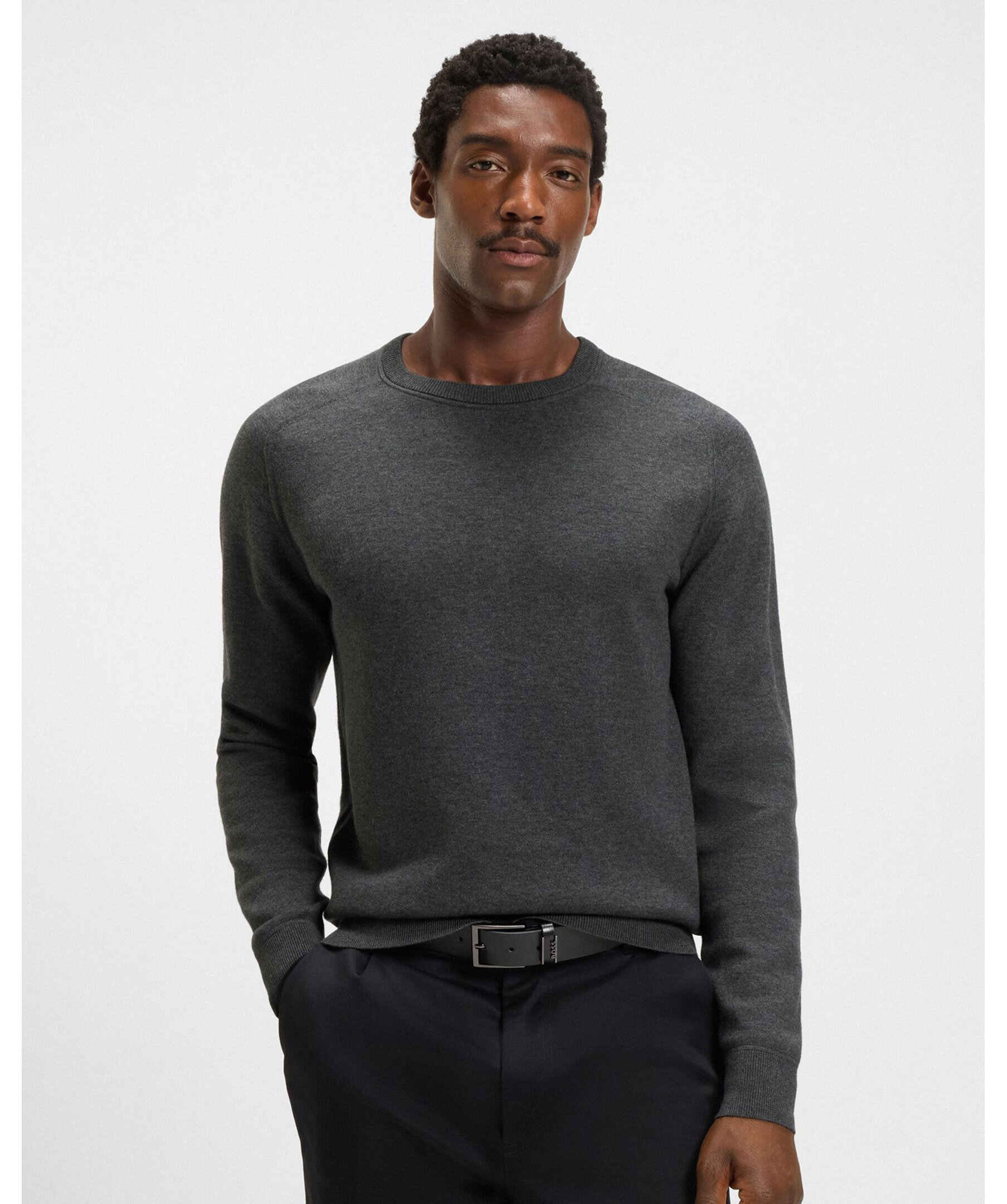 Denna tröja från BOSS kombinerar modern design med hög komfort. Den har en rund halsringning, ribbade manschetter och extra långa ärmar för en avslappnad passform. Tillverkad i en blandning av ventilerande bomull och temperaturreglerande jungfruull, erbjuder den en mjuk och behaglig känsla mot huden. Tröjan är delvis tillverkad av ekologisk bomull, vilket innebär att den är producerad utan syntetiska gödningsmedel, bekämpningsmedel eller genetiskt modifierade frön. Perfekt för både vardag och mer avslappnade tillfällen.