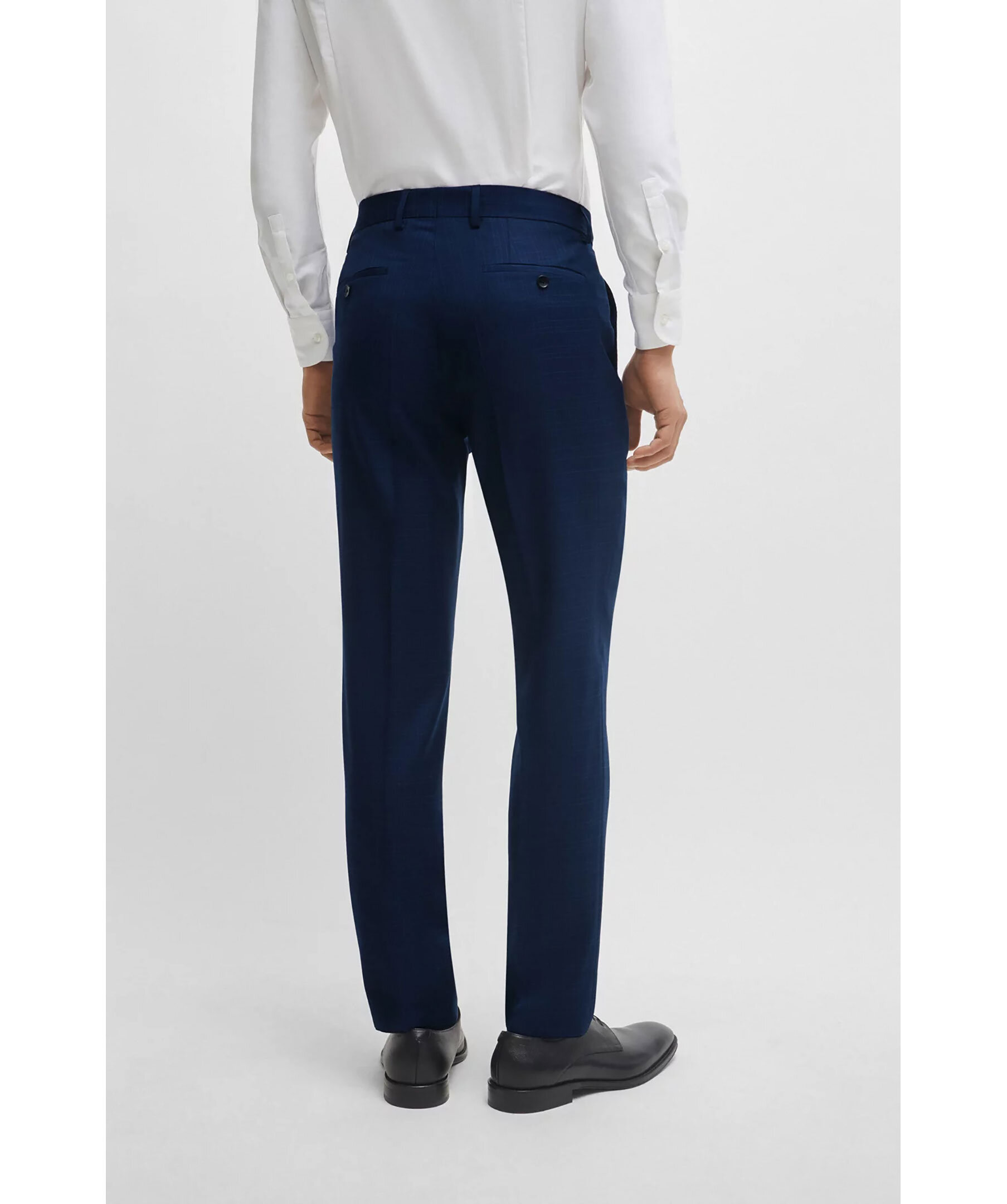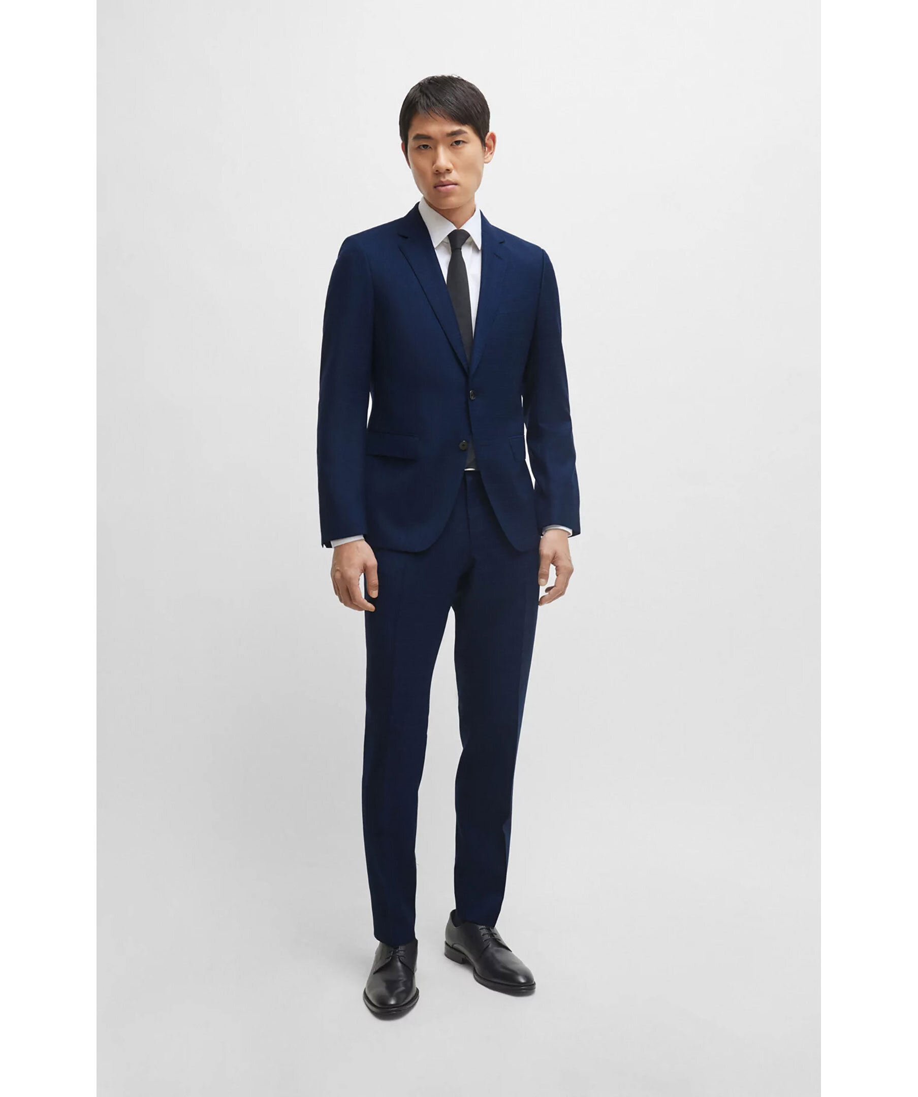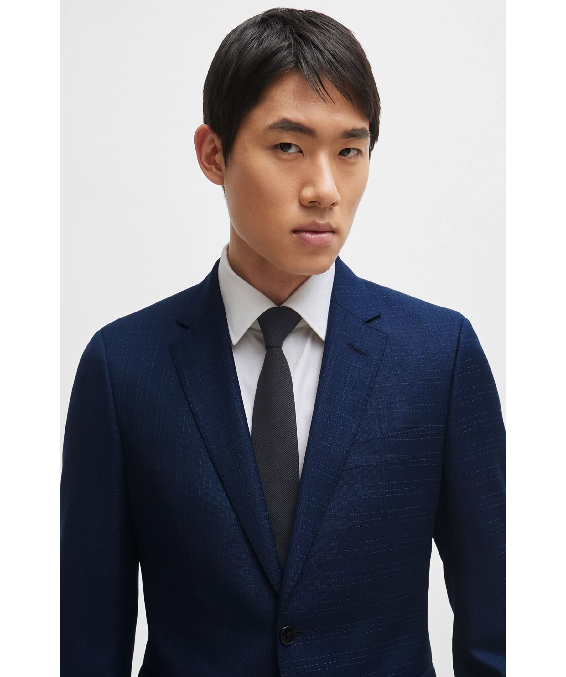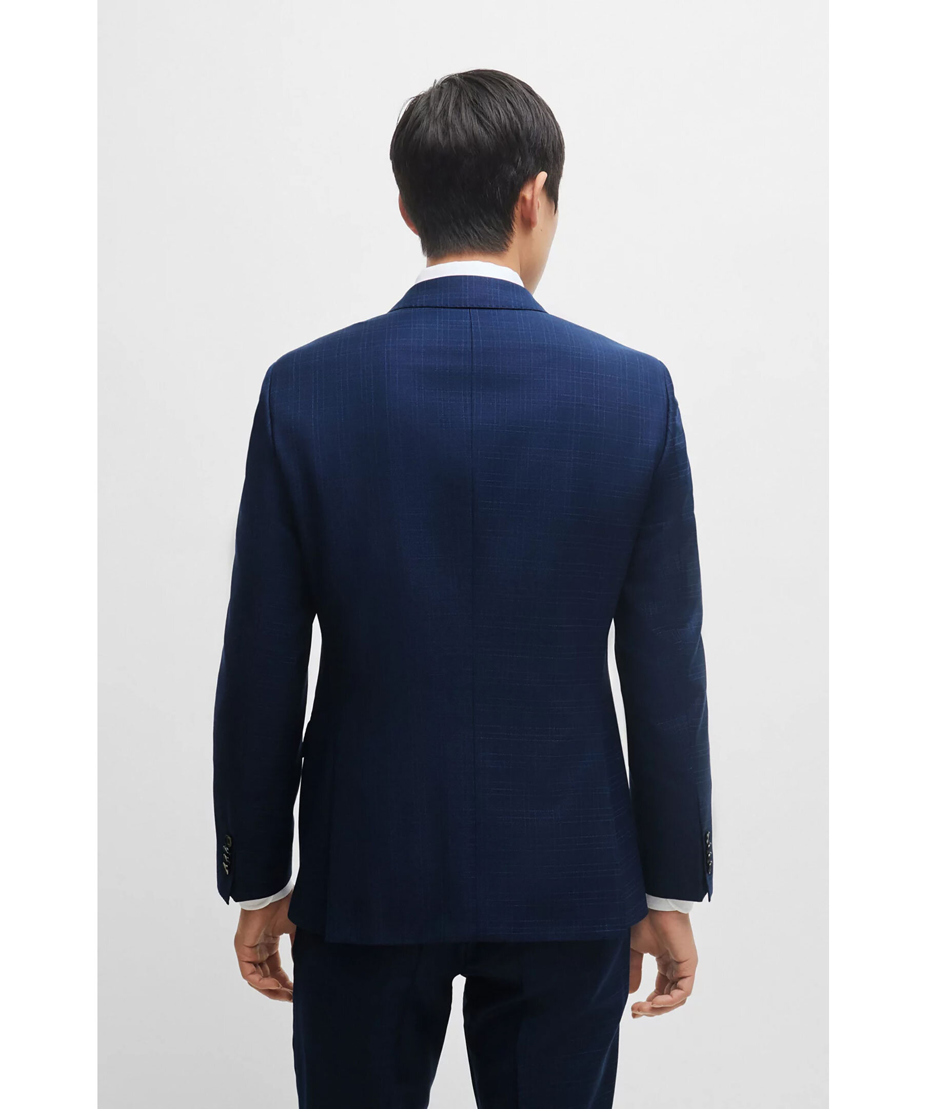 Mörkblå kostym från BOSS Black. Vävd med en sergeteknik för att skapa en modern rutig look. Denna tvådelade kostym är tillverkad i ull för en raffinerad look och känsla. Den slimmade passformen ger en ren siluett. Naggade slag, två knappar framtill. En welt bröstficka samt två fickor med lock. Manschetter med knapp, sidoventil samt helfodrad. Byxorna har två sidfickor samt två bakfickor med knapp. Bälteshällor i midjan. Slimmad passform.