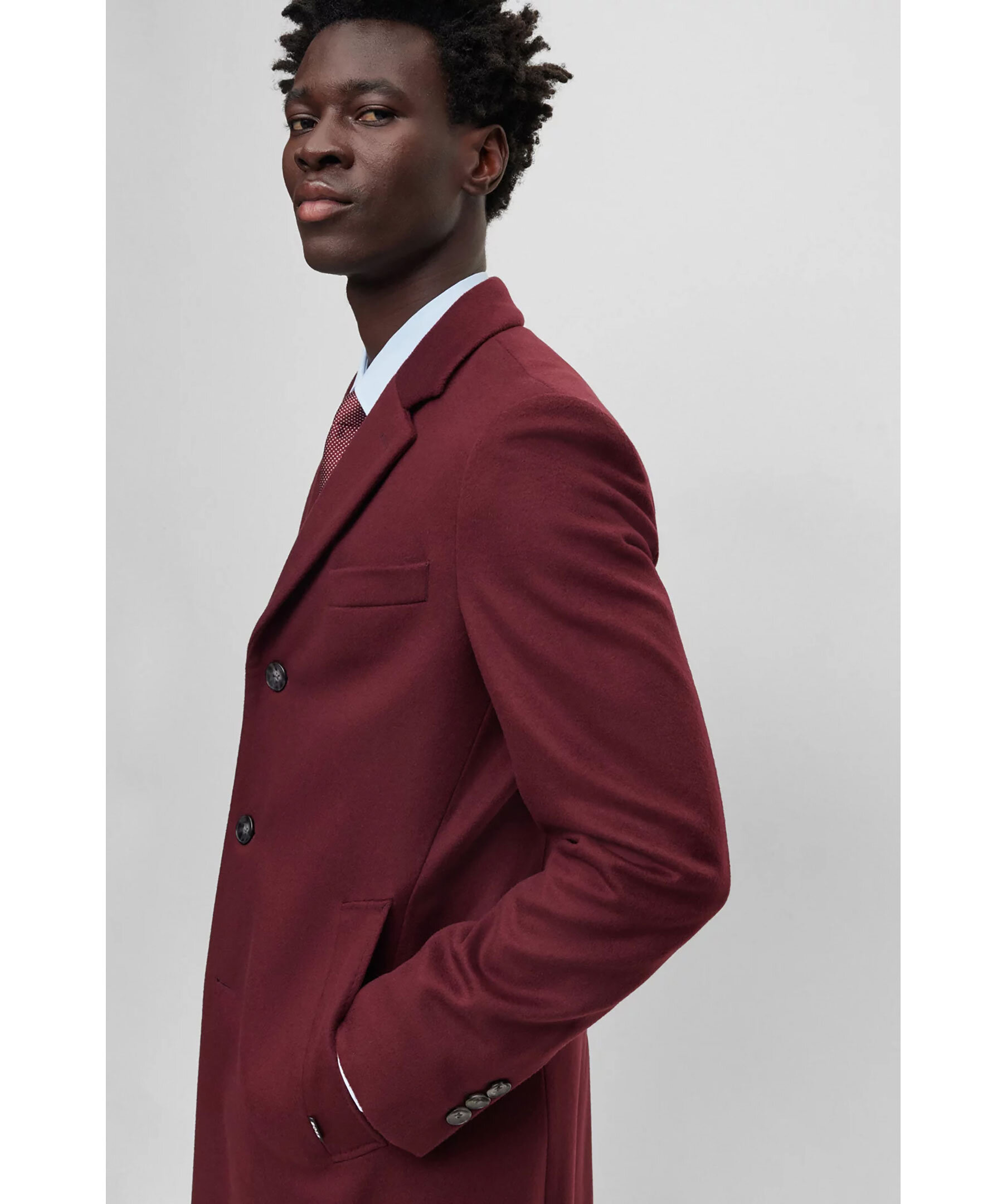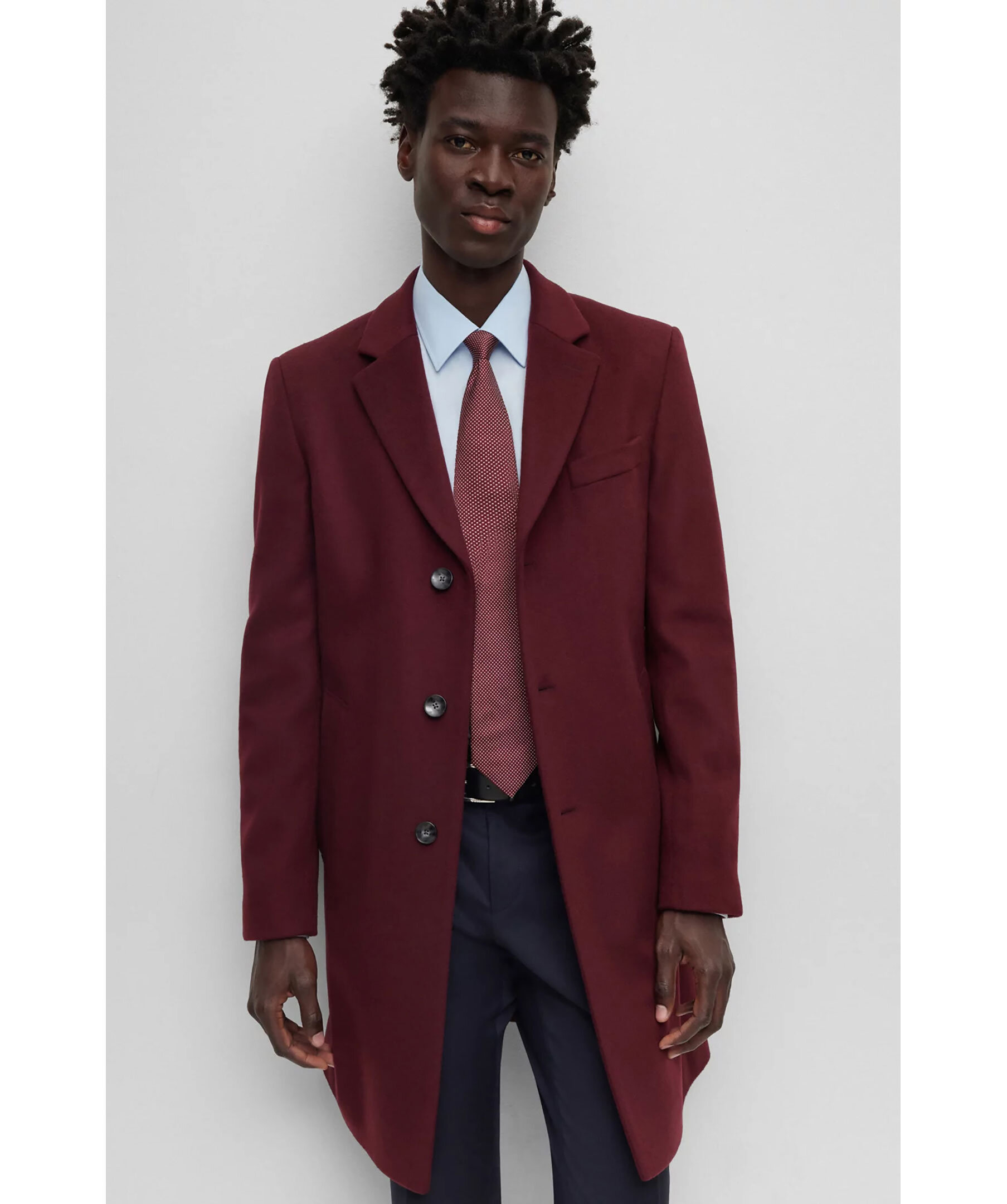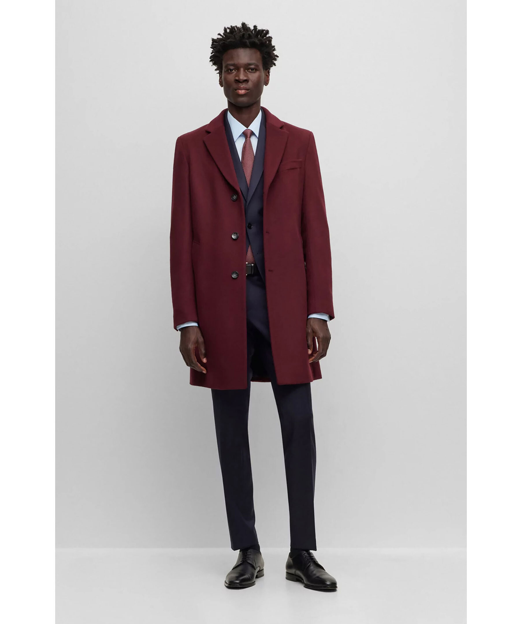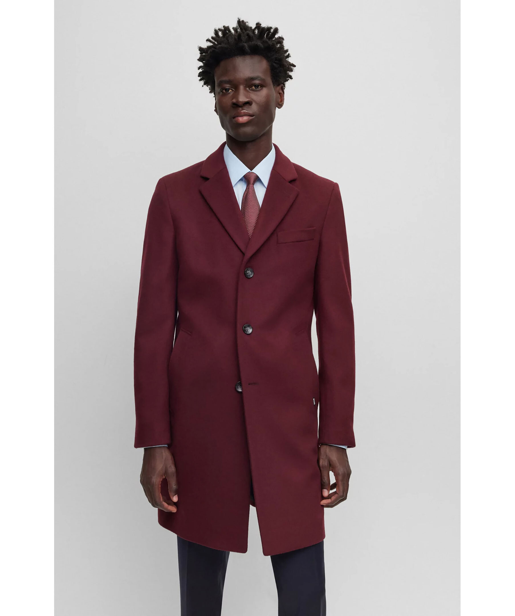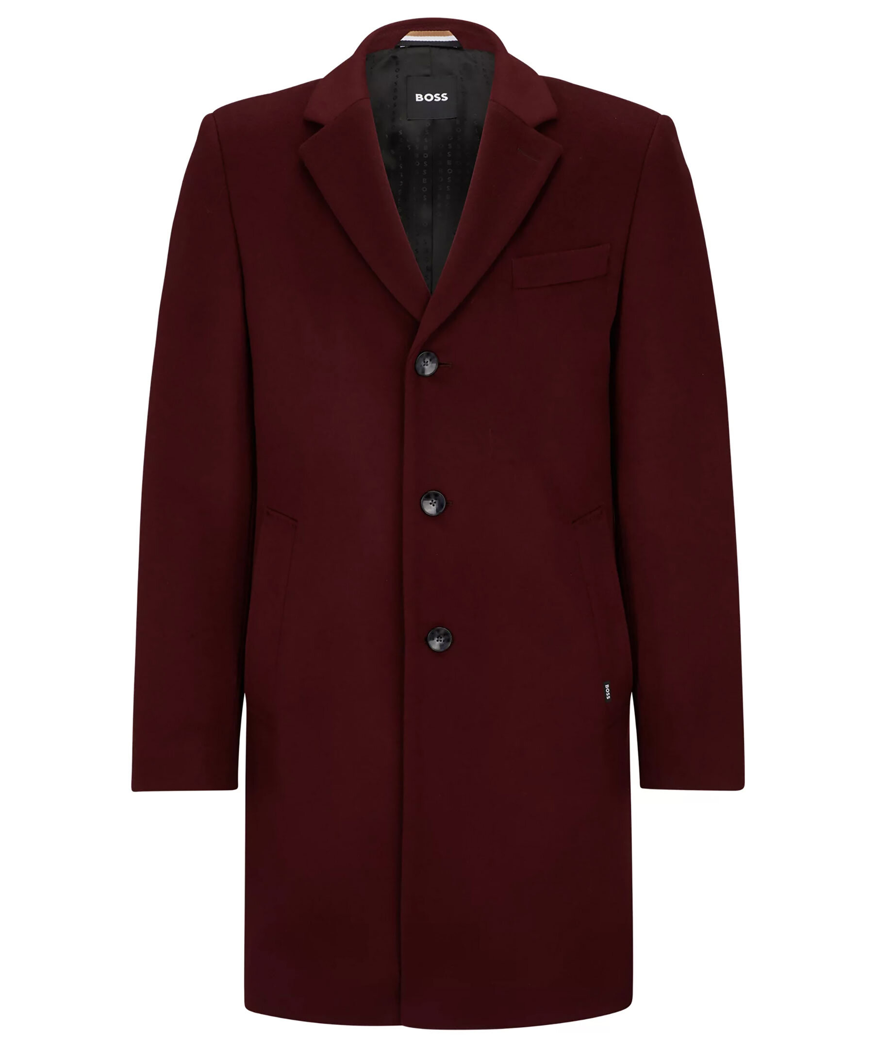 Vinröd ullrock från BOSS Black. Rocken har en slim fit passform och är gjord i en blandning av har två framfickor, en bröstficka och en innerficka. Sprund baktill. Tänkt att sluta vid låret.