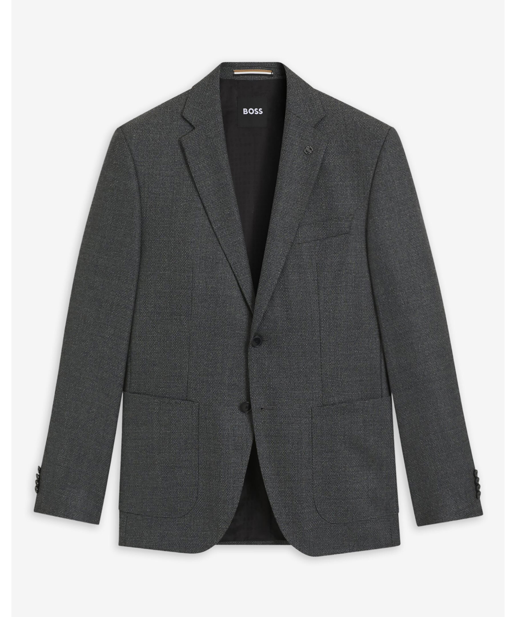Grå avaj från BOSS som passar till alla tillfällen. Kavajen har ett diskret, modernt mönster och är tillverkad av jungfruull.
