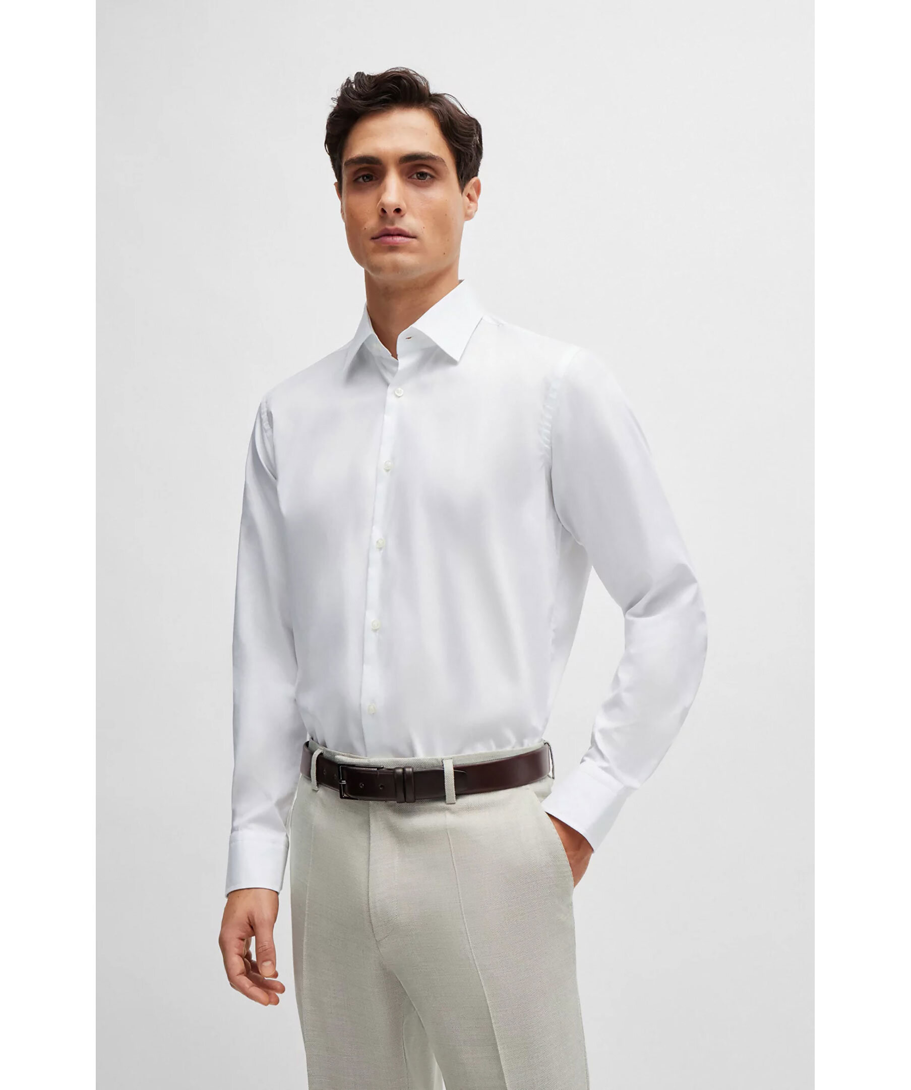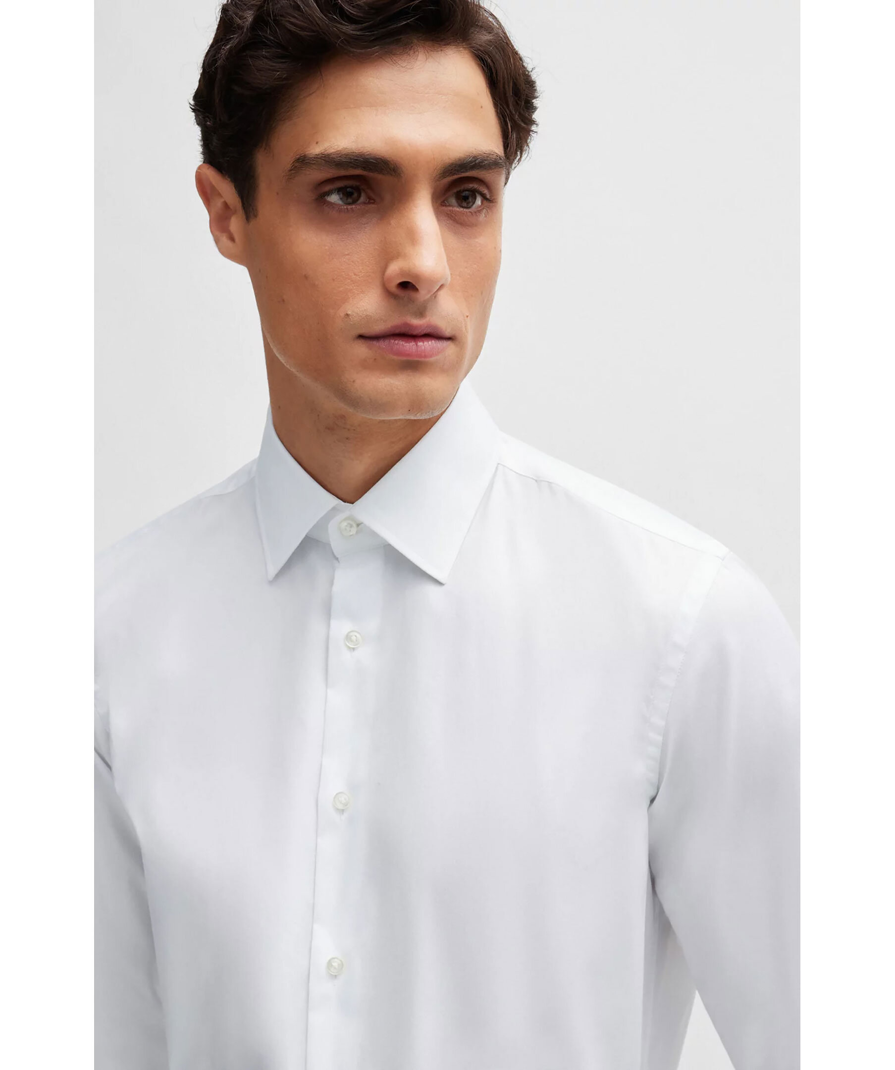 Vit skjorta från BOSS Black. Skjortan har kent-krage, vinklade manschetter och signaturrand på kragens insida. Tillverkad i bomull.