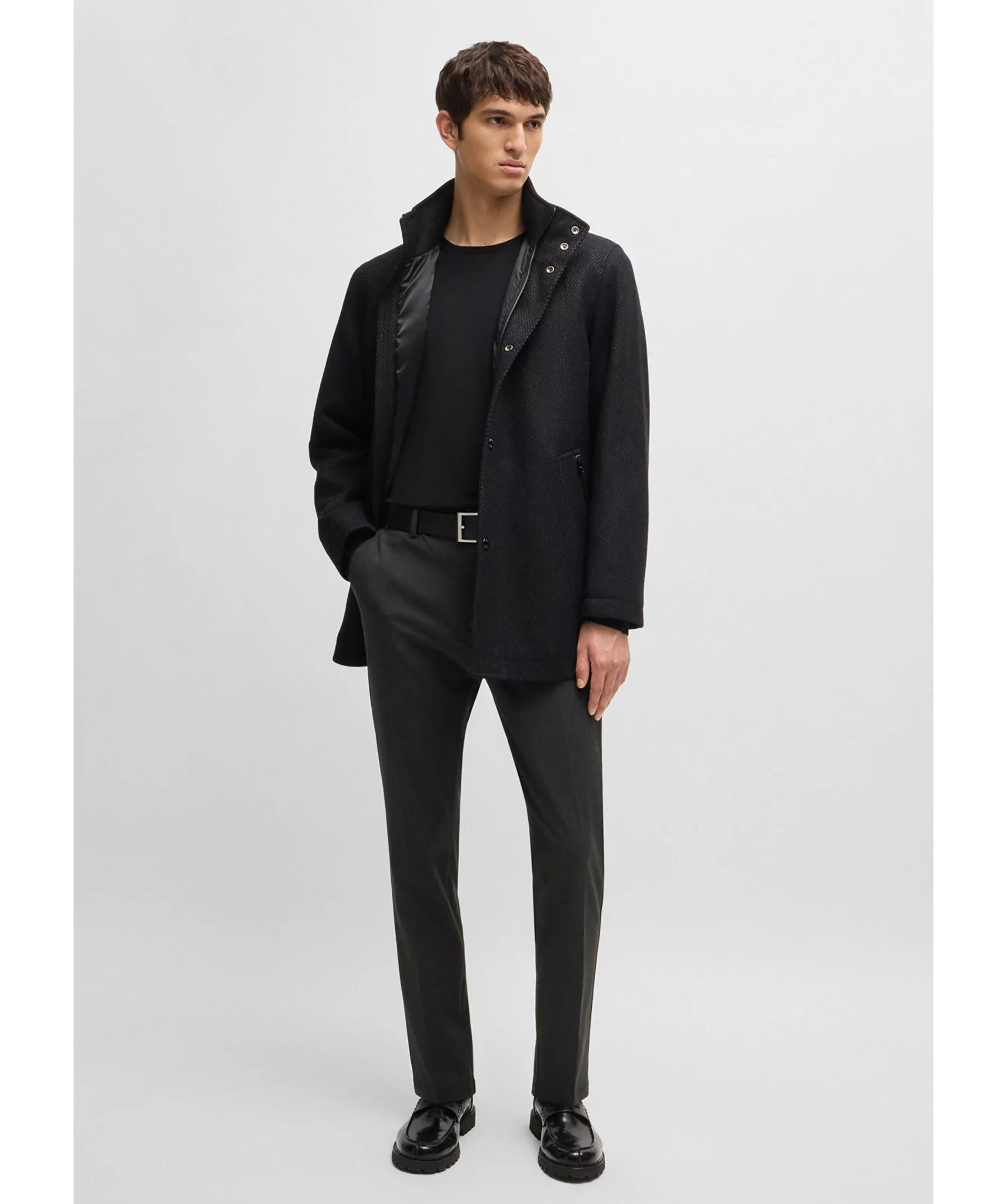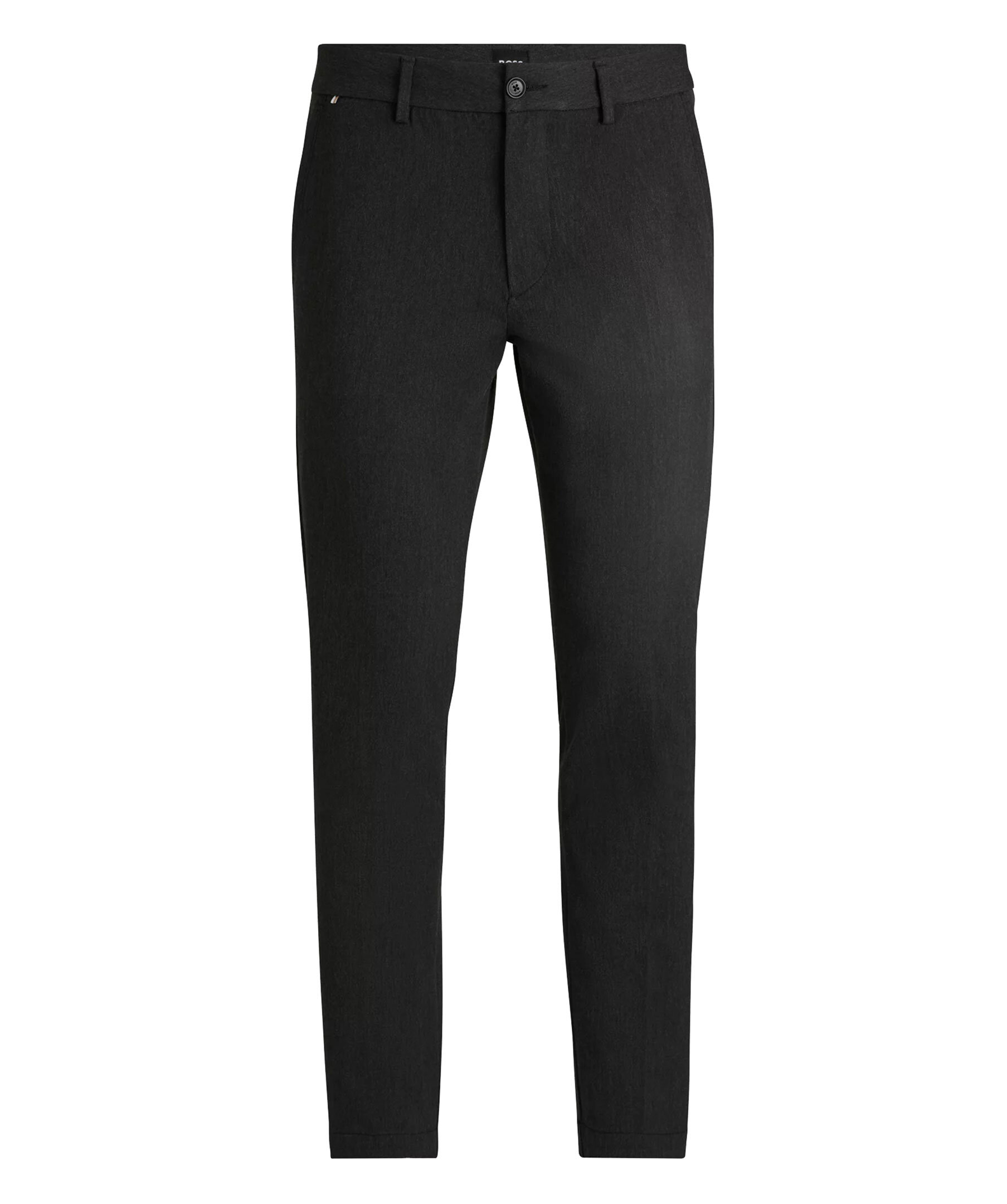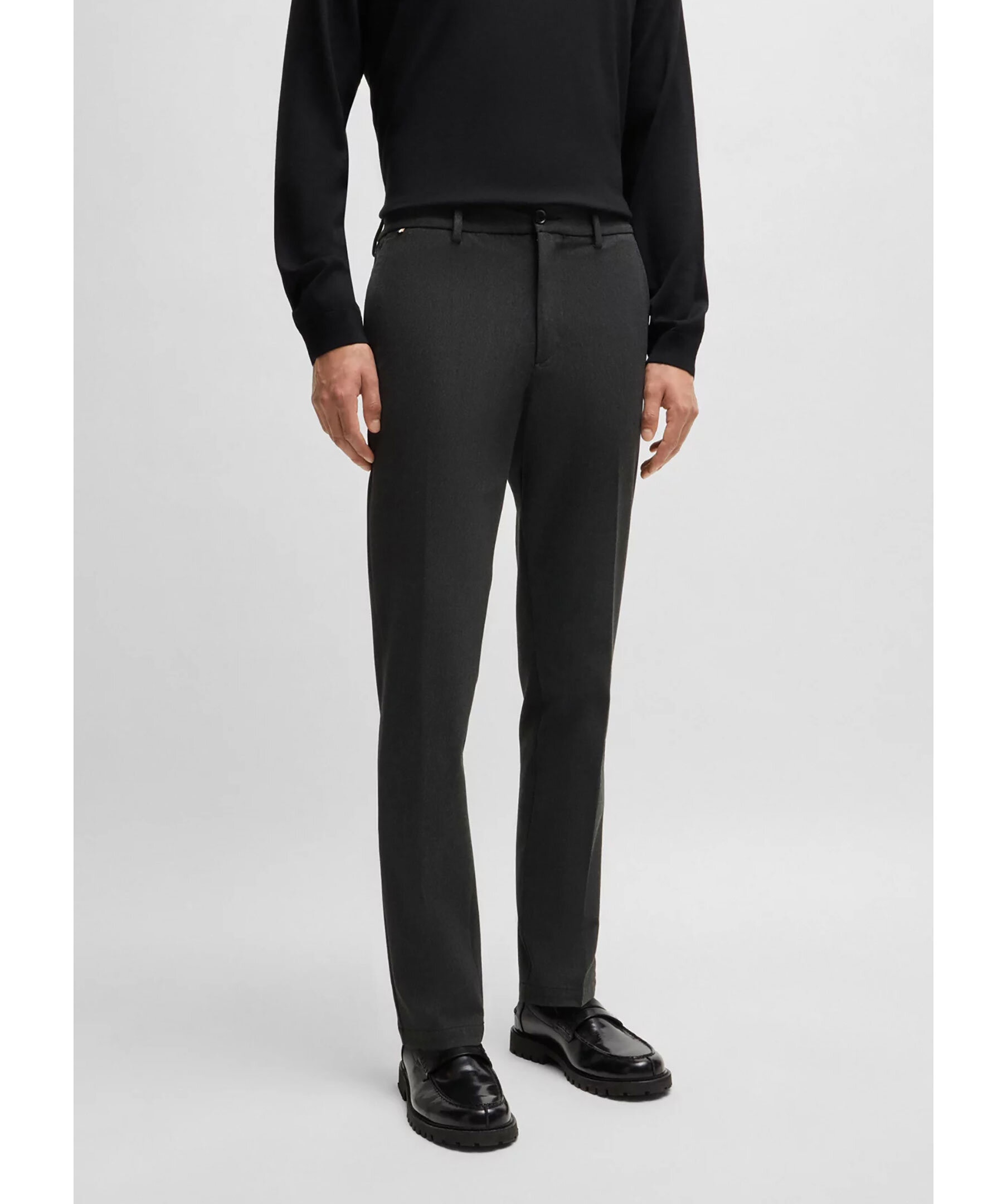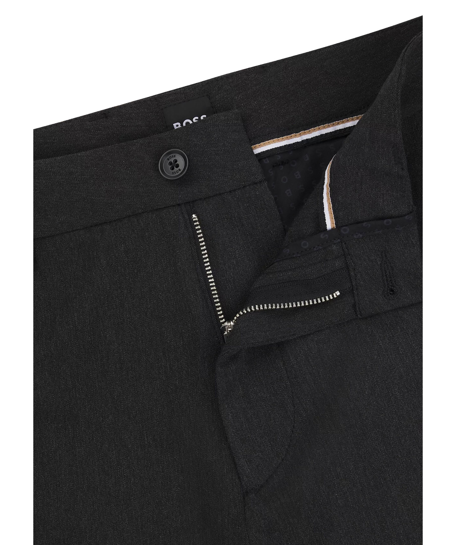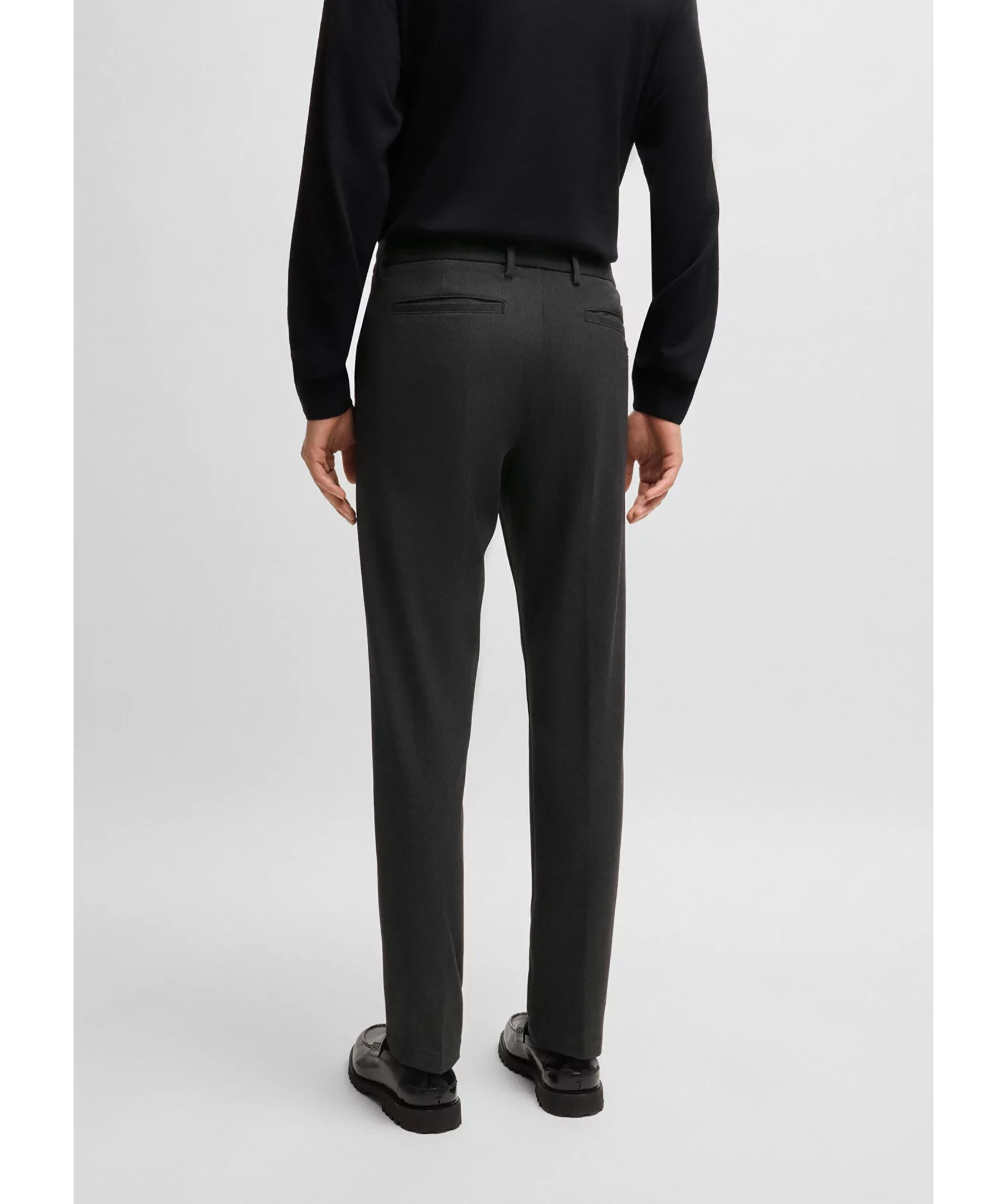 Mörkgråa kostymbyxor från BOSS Black. Byxorna har bälteshällor i midjan, två sidfickor samt två passpoalfickor baktill och pressveck. Tillverkade i en polyesterblandning.