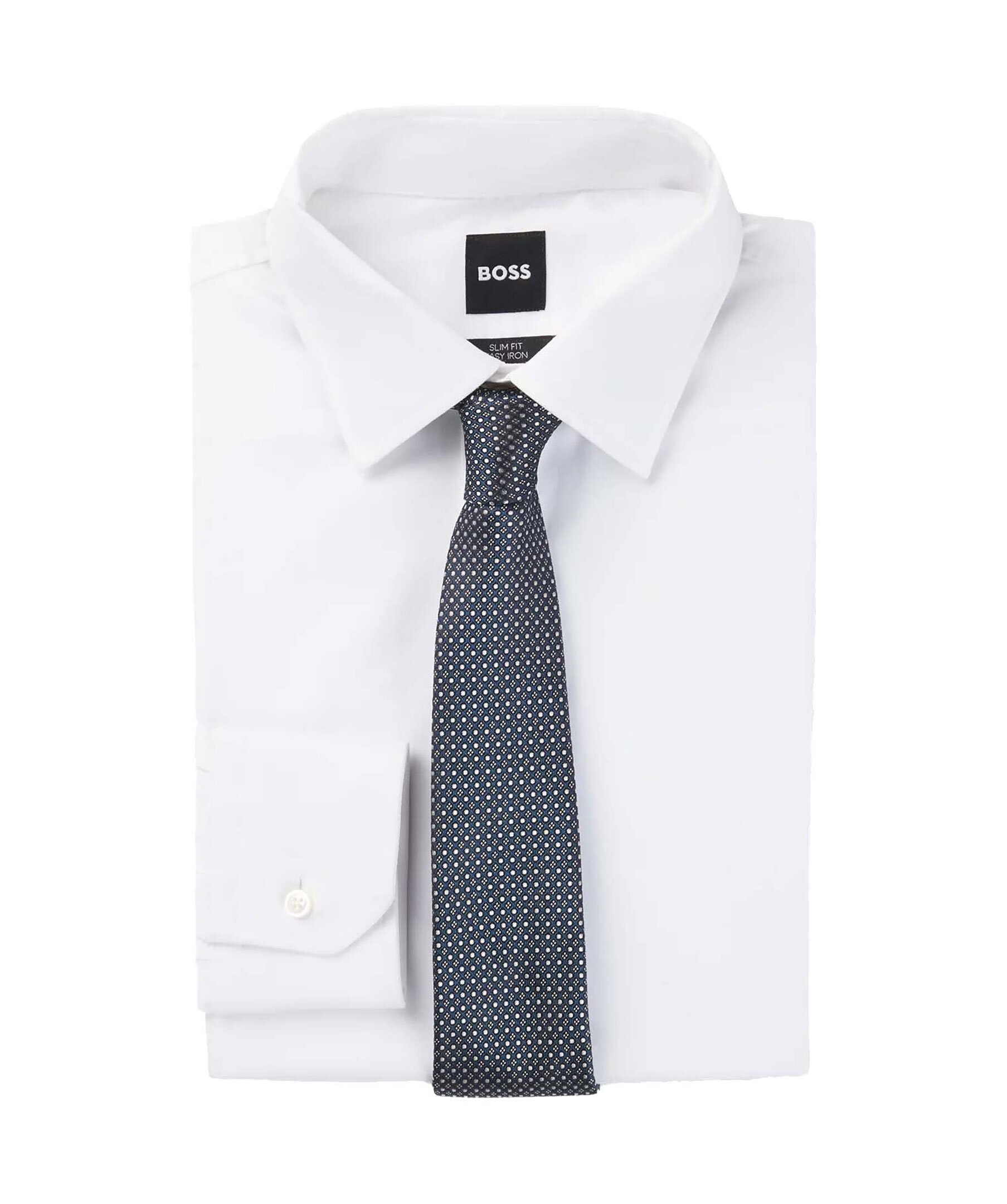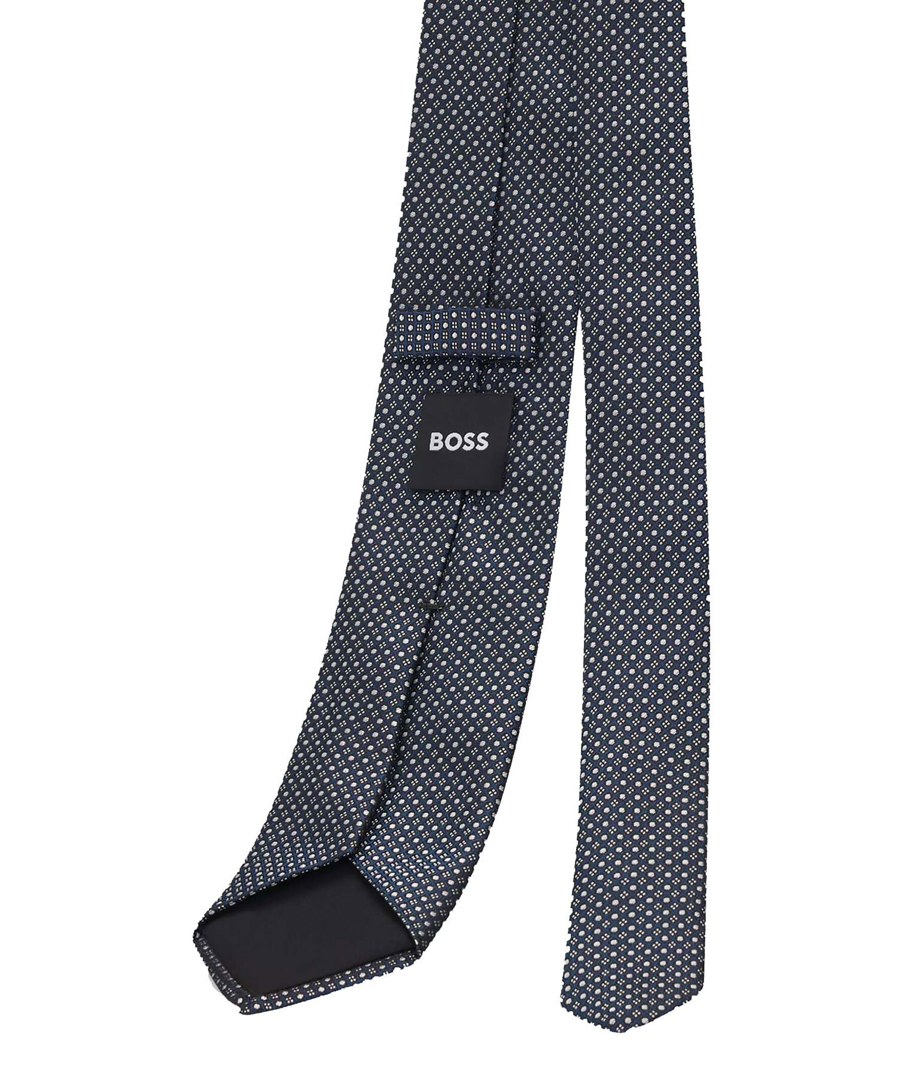 Blå slips från Boss Black. Väv i ett jaquard mönster och tillverkad av silke.