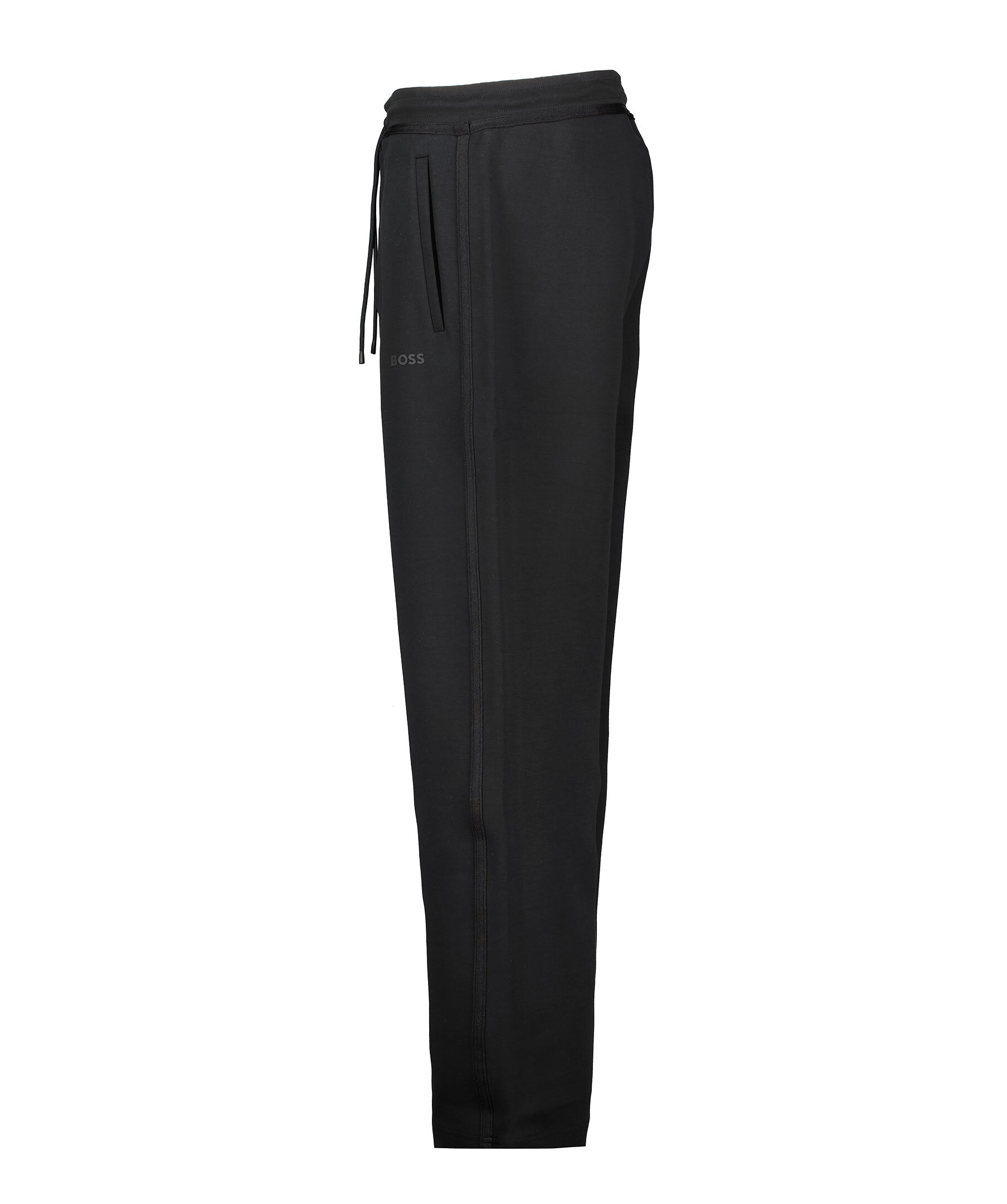 Svarta mjukisbyxor från BOSS Green. Byxorna har en elastisk midja med dragsko, två sidfickor, en passpoalficka baktill samt logotyp under ena sidfickan. Tillverkade i en bomullsblandning.