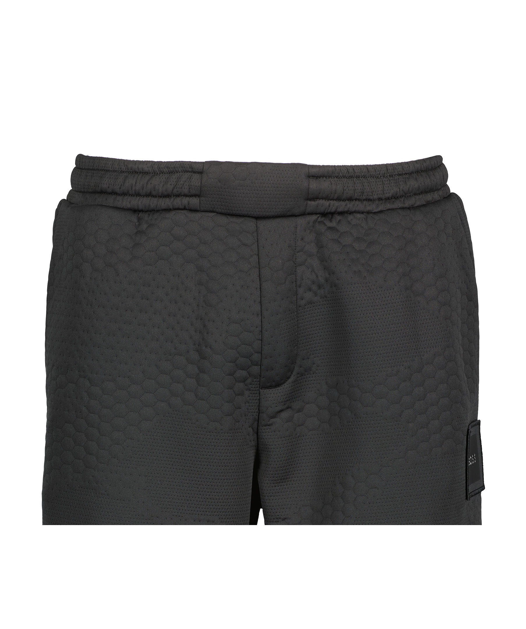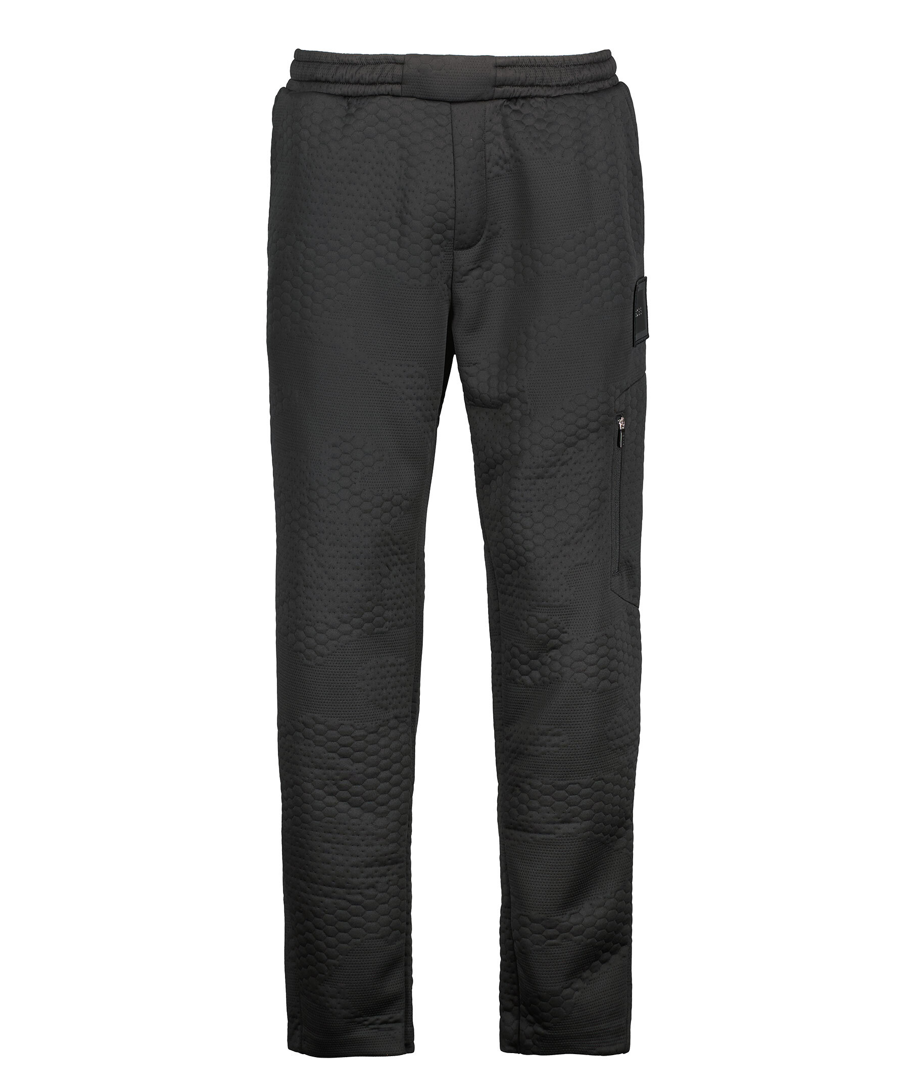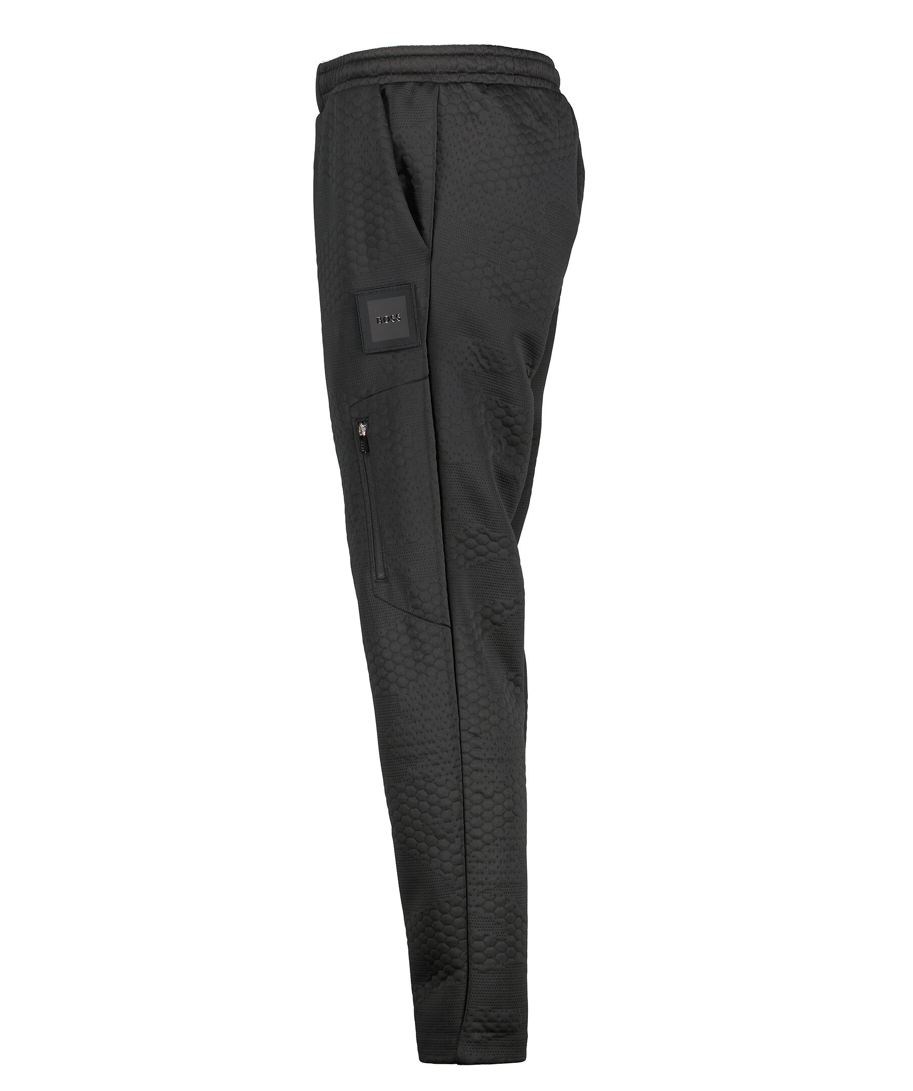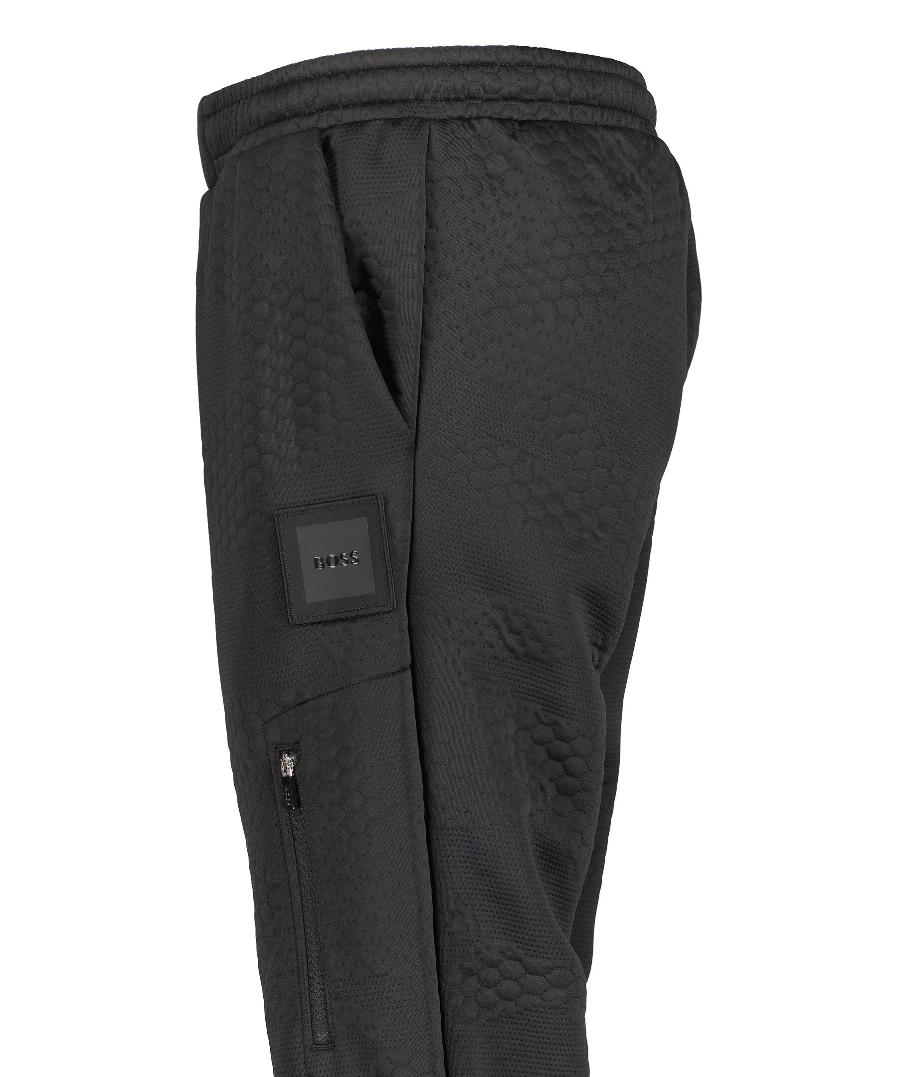 Strukturerade svarta mjukisbyxor från BOSS Green. Resår och dragsko i midjan. Två fickor framtill, en ficka på vänster ben som stängs med dragkedja. Bakficka på högersida som stängs med dragkedja. Patch med gummerad logotyp på vänster ben.