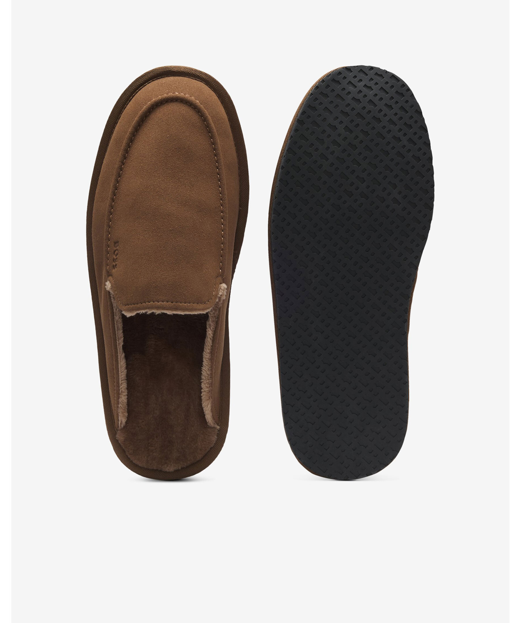 BOSS Tofflor i mikrofiber med gummisula är stiliga och bekväma tofflor designade för att ge extra komfort hemma. De har en slip-on design utan häl, vilket gör dem lämpliga för både inomhusbruk och korta utomhusvistelser. Den slitstarka gummisulan ger bra grepp, och den fluffiga mikrofibern ger en mjuk känsla mot huden. Dessa tofflor är ett utmärkt val för avkopplande stunder hemma.