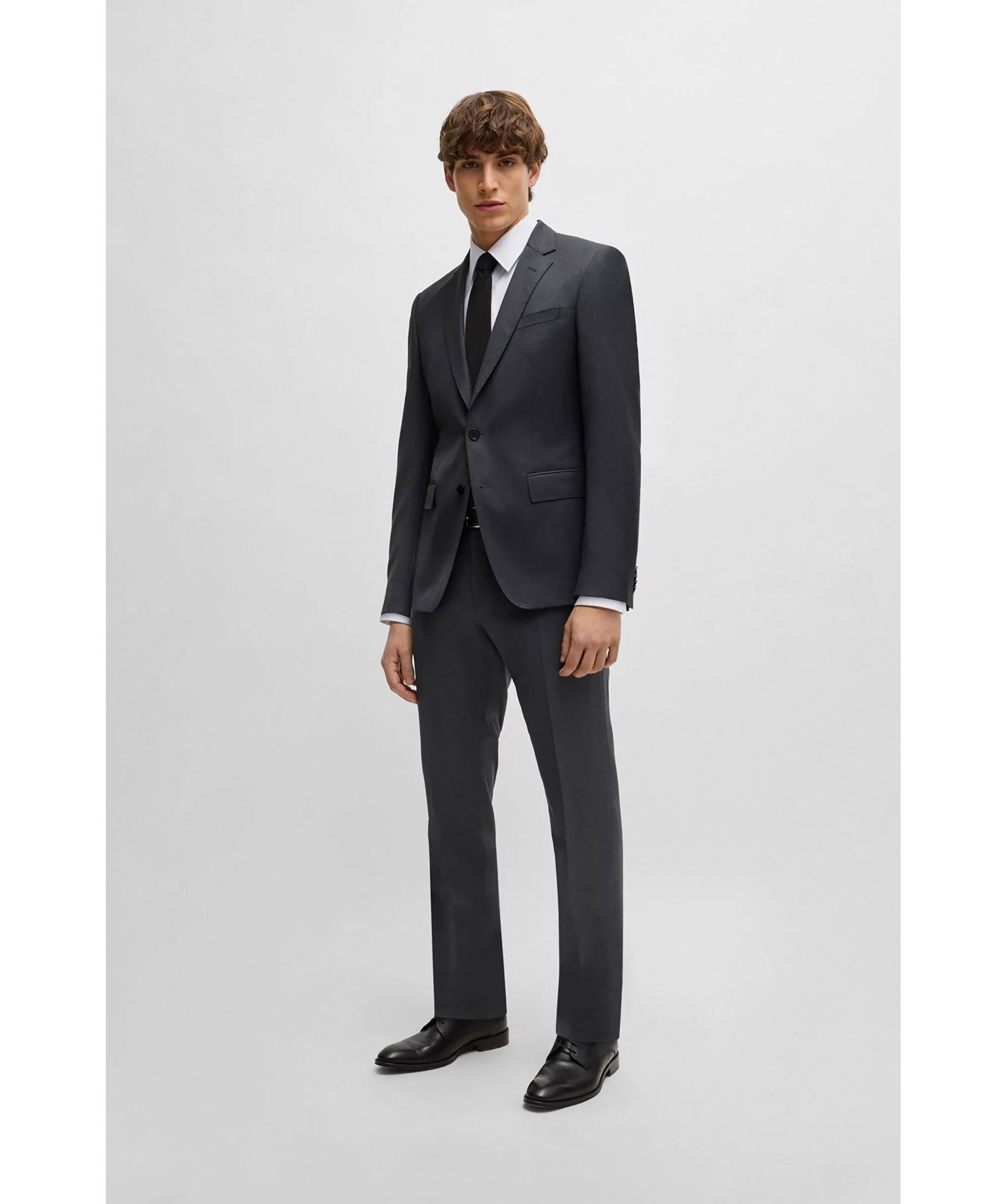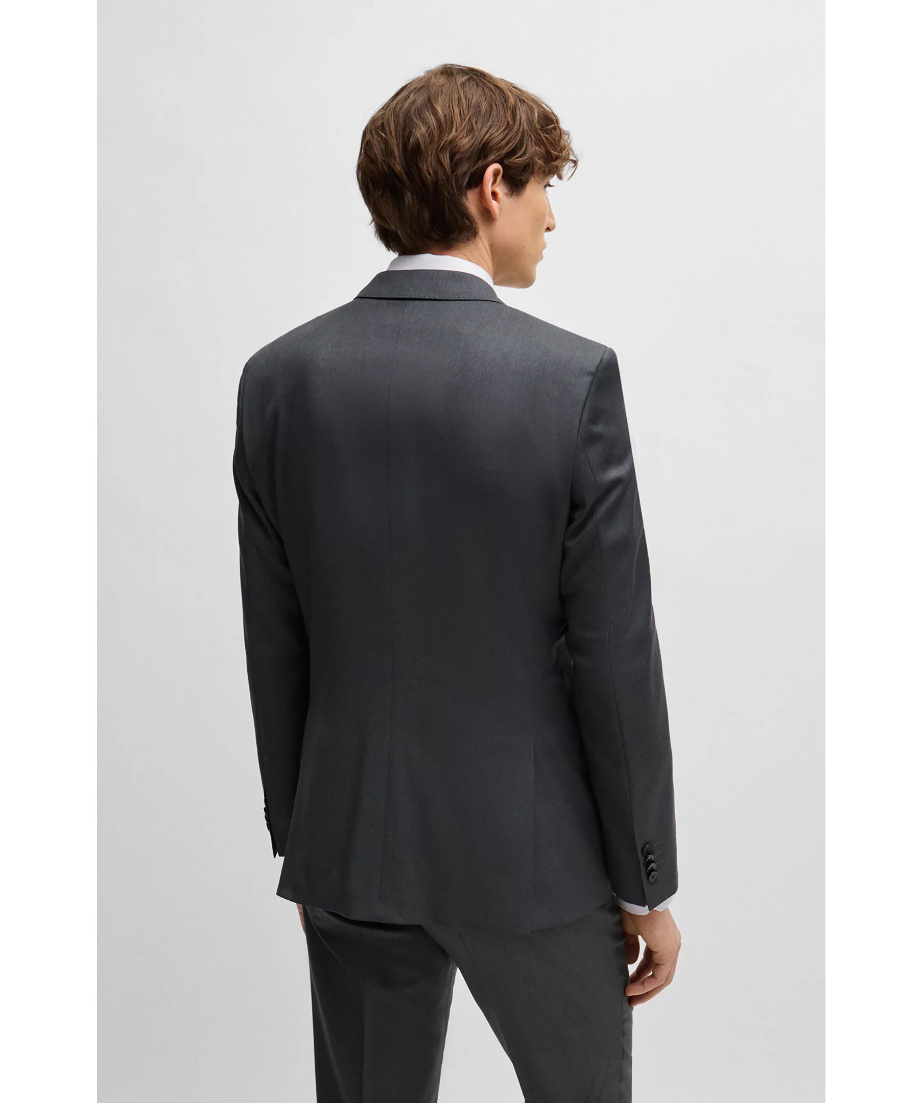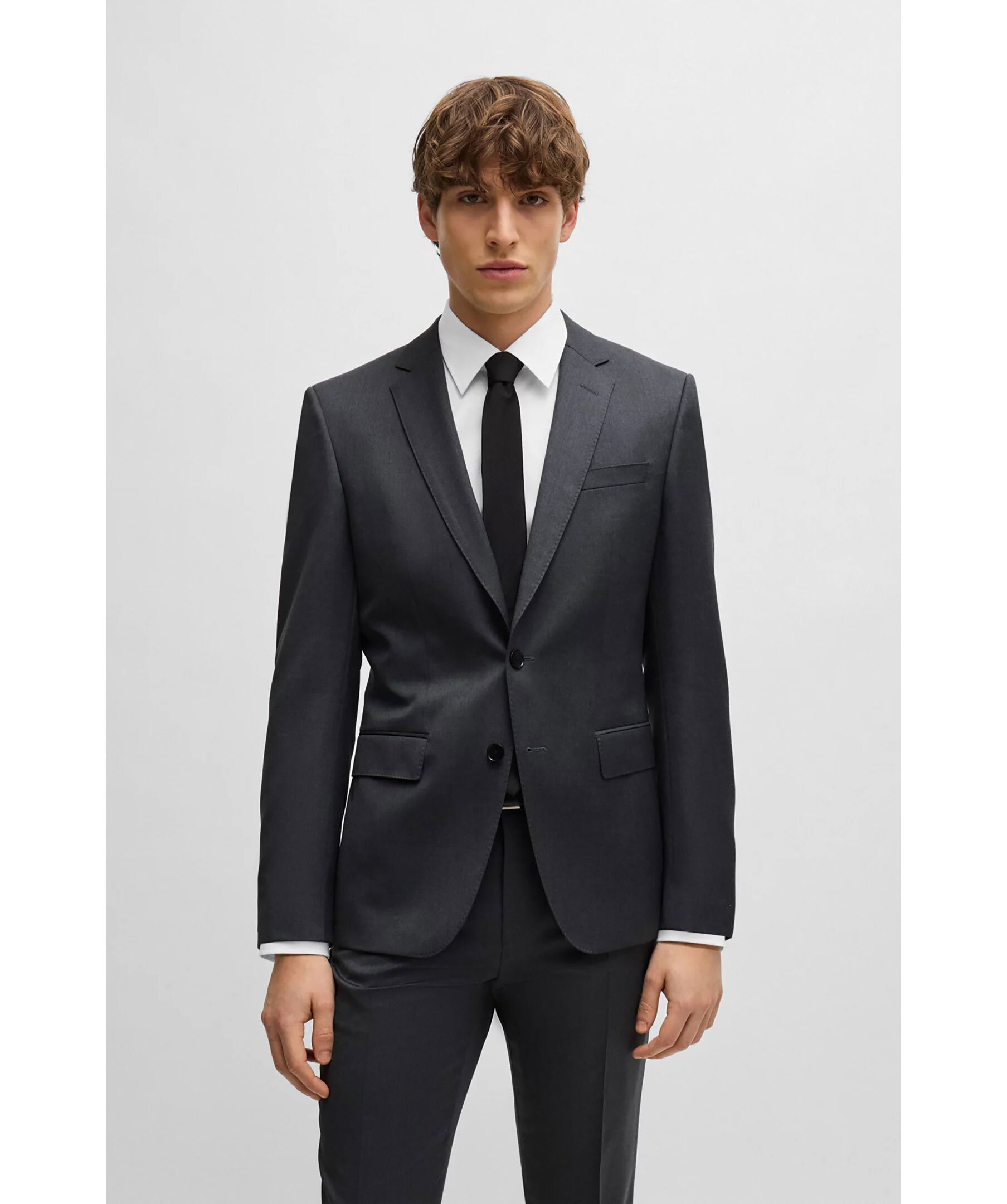 Mörkgrå kavaj från BOSS Black. Enkelknäppt. Två fickor framtill med lock, En bröstficka Snedskurna kavajslag. Yttertyget tillverkad i 100% Ull.