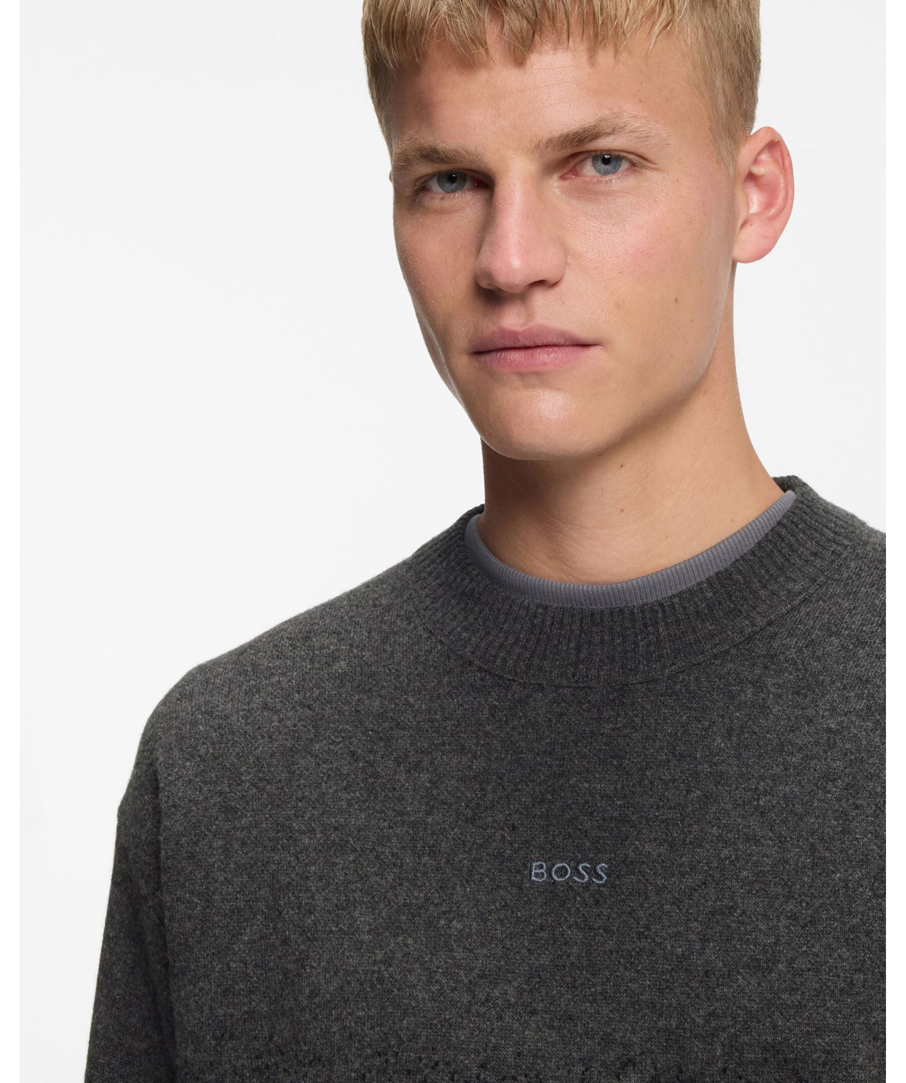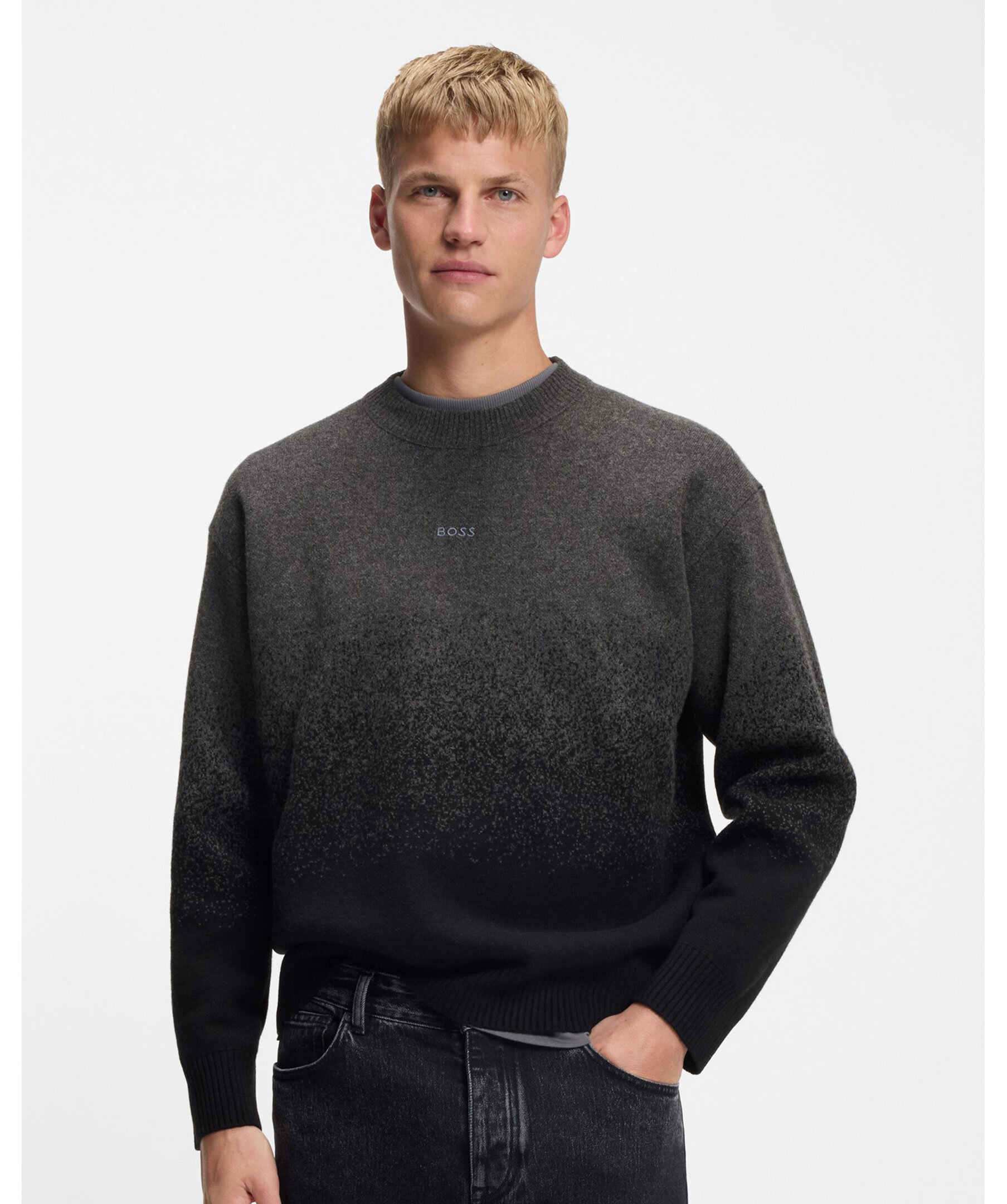 Denna tröja från BOSS kombinerar modern design med hög komfort. Den har ett subtilt degradé-mönster och en ton-i-ton broderad logga. Tillverkad i en ullblandning med inslag av jak, erbjuder den en mjuk och behaglig känsla mot huden. Tröjan har en avslappnad passform, rund halsringning och extra långa ärmar för en modern silhuett. Perfekt för både vardag och mer avslappnade tillfällen.