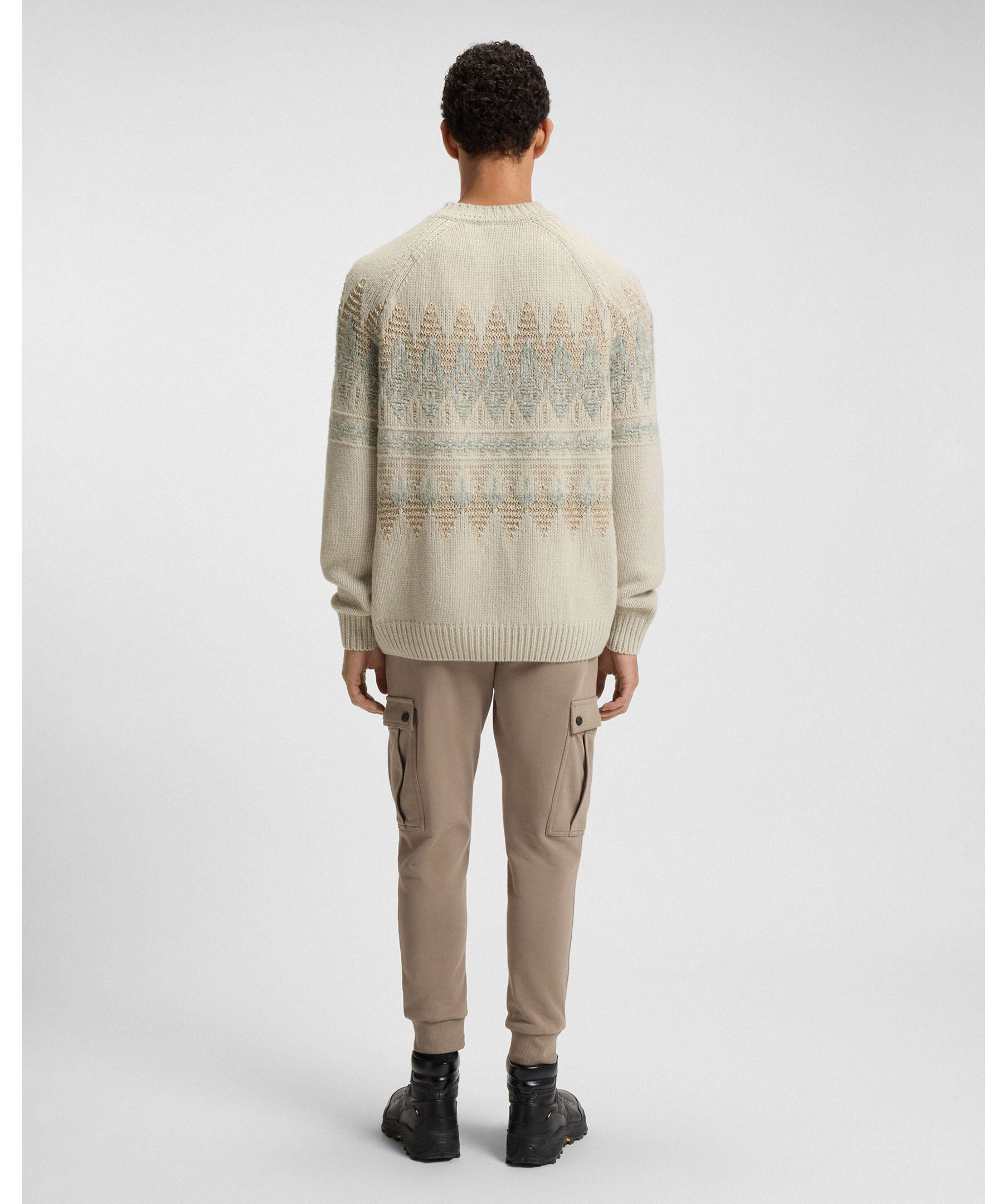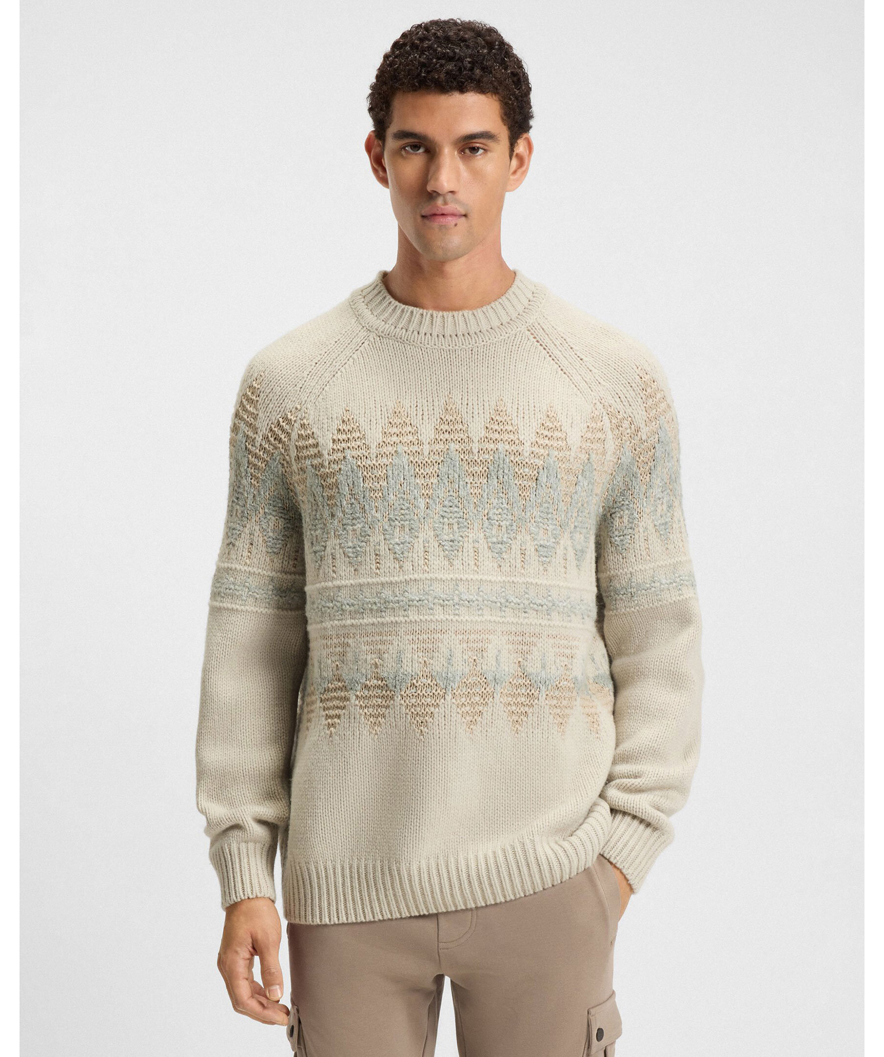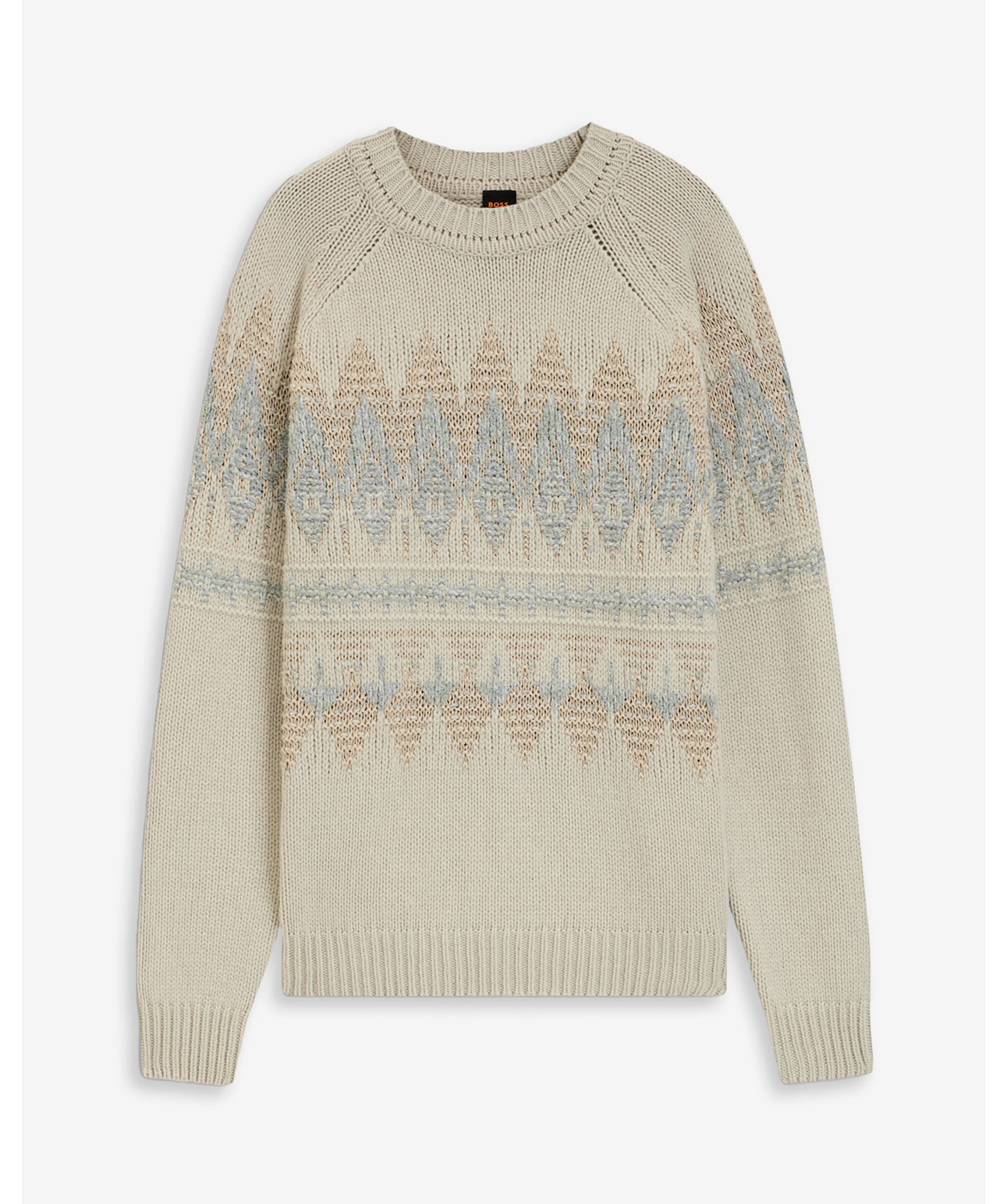 Beige mönstrad tröja från Boss Orange i ullblandning. Ribbade ärmslut och fåll.