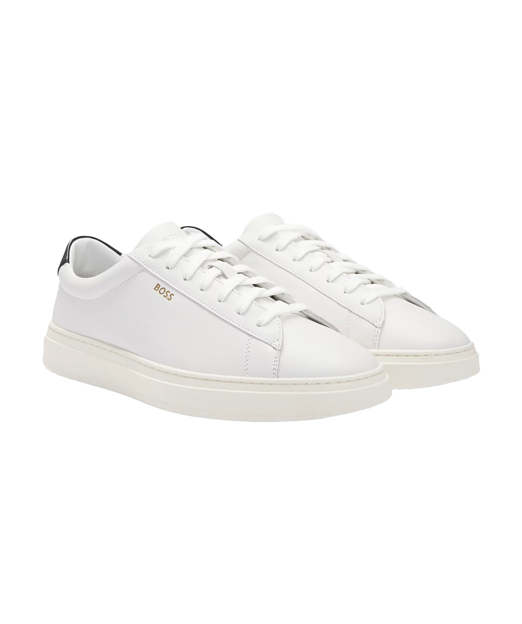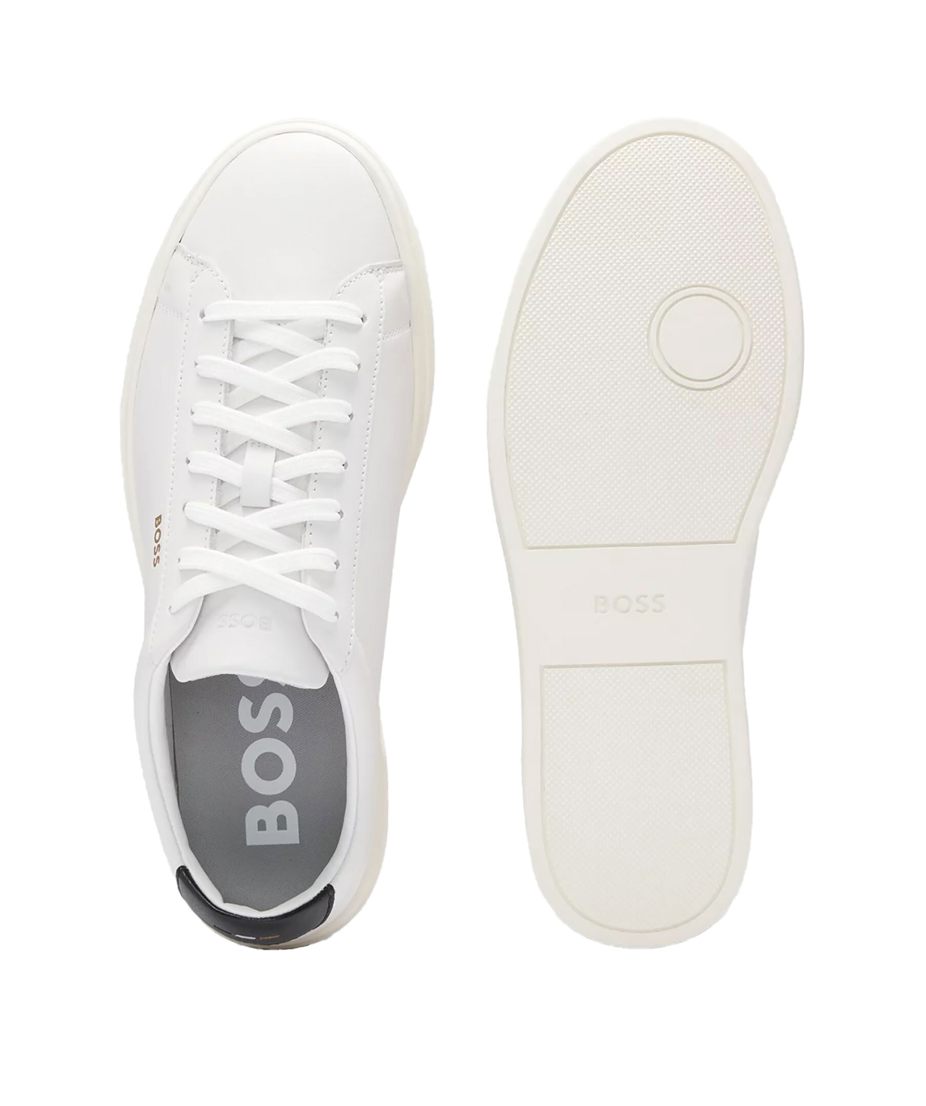 Vita sneakers i läder från BOSS Black. Skorna har platta skosnören och logotyp på utsidan samt på plösen.