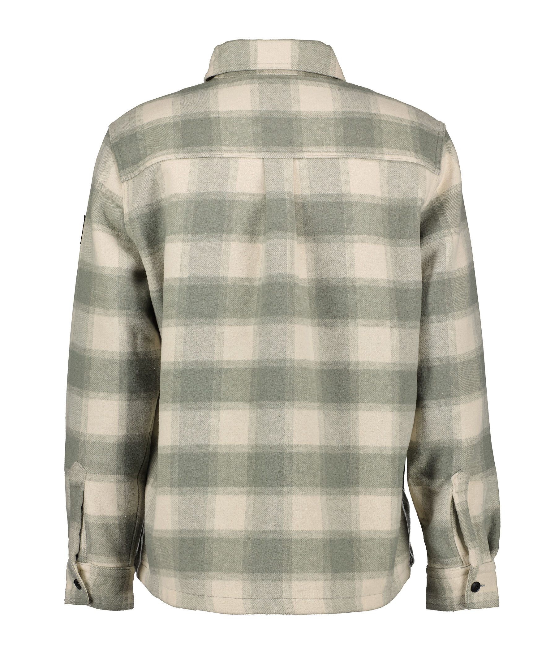 Beige och grön rutig overshirt från Boss Orange. Overshirten stängs med knappar har två bröstfickor med lock och knap. Två öppna sidofickor. Boss logotyp i tyg och gummi på vänster ärm. Tillverkad av en ull och polyester blandning.