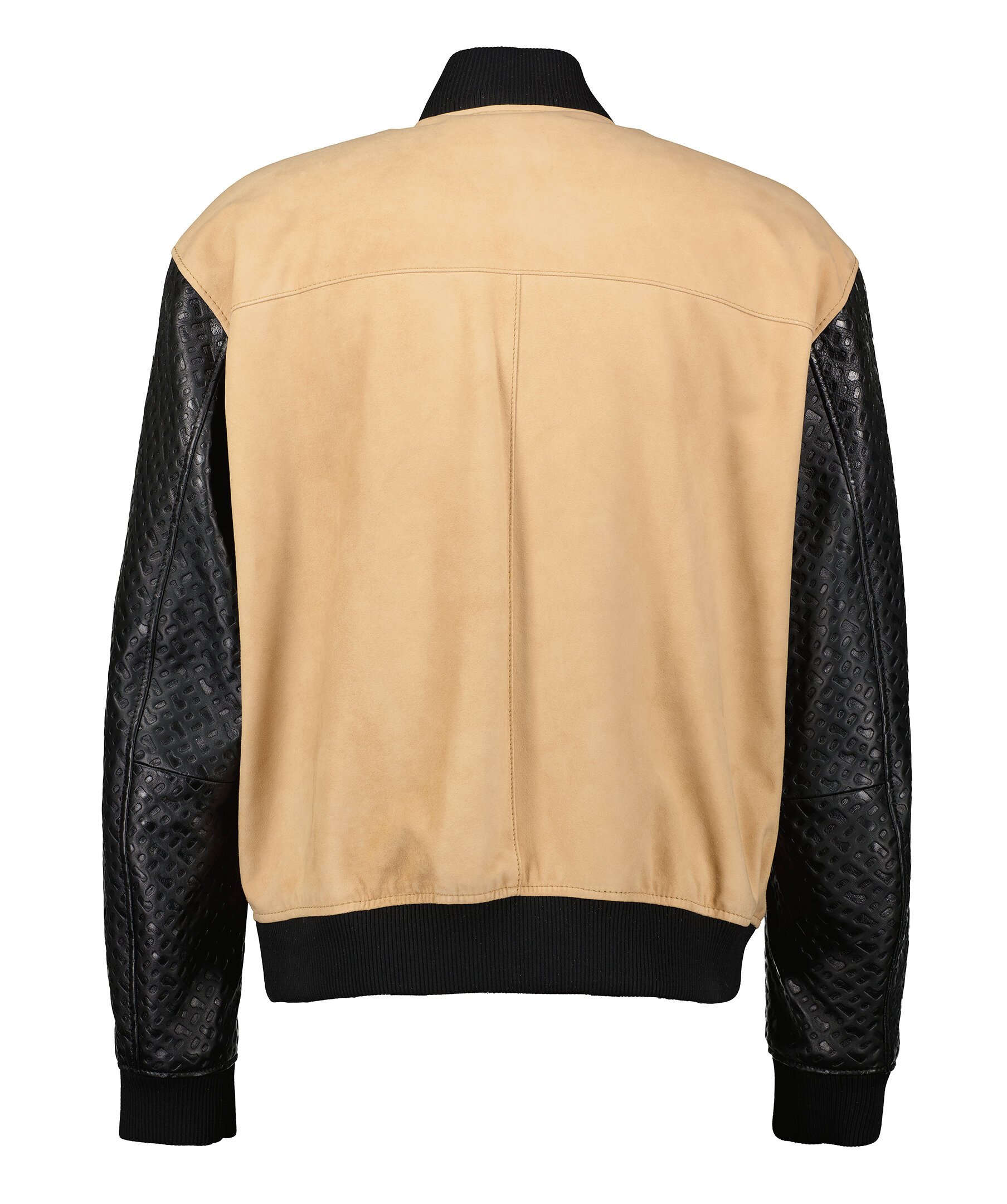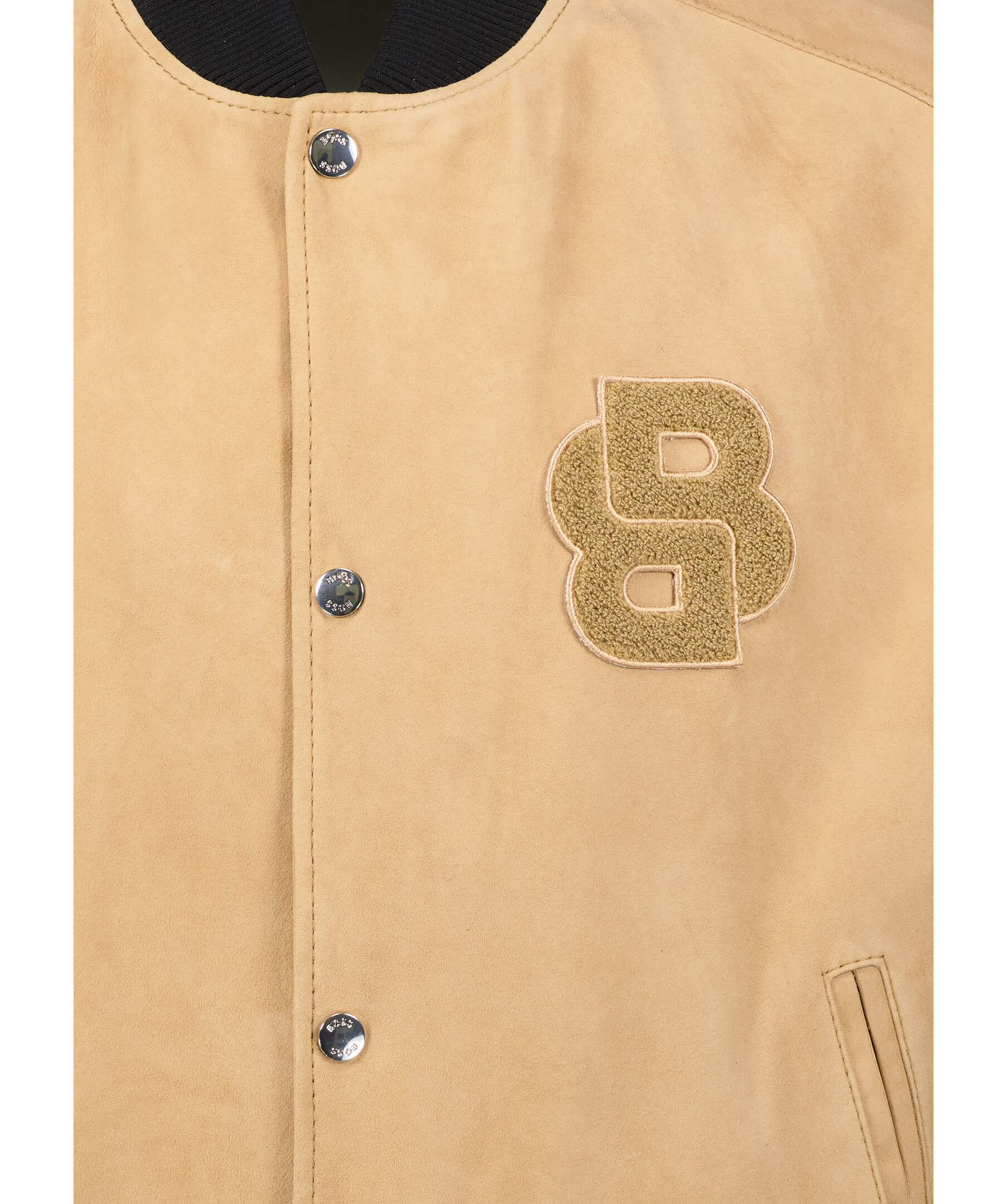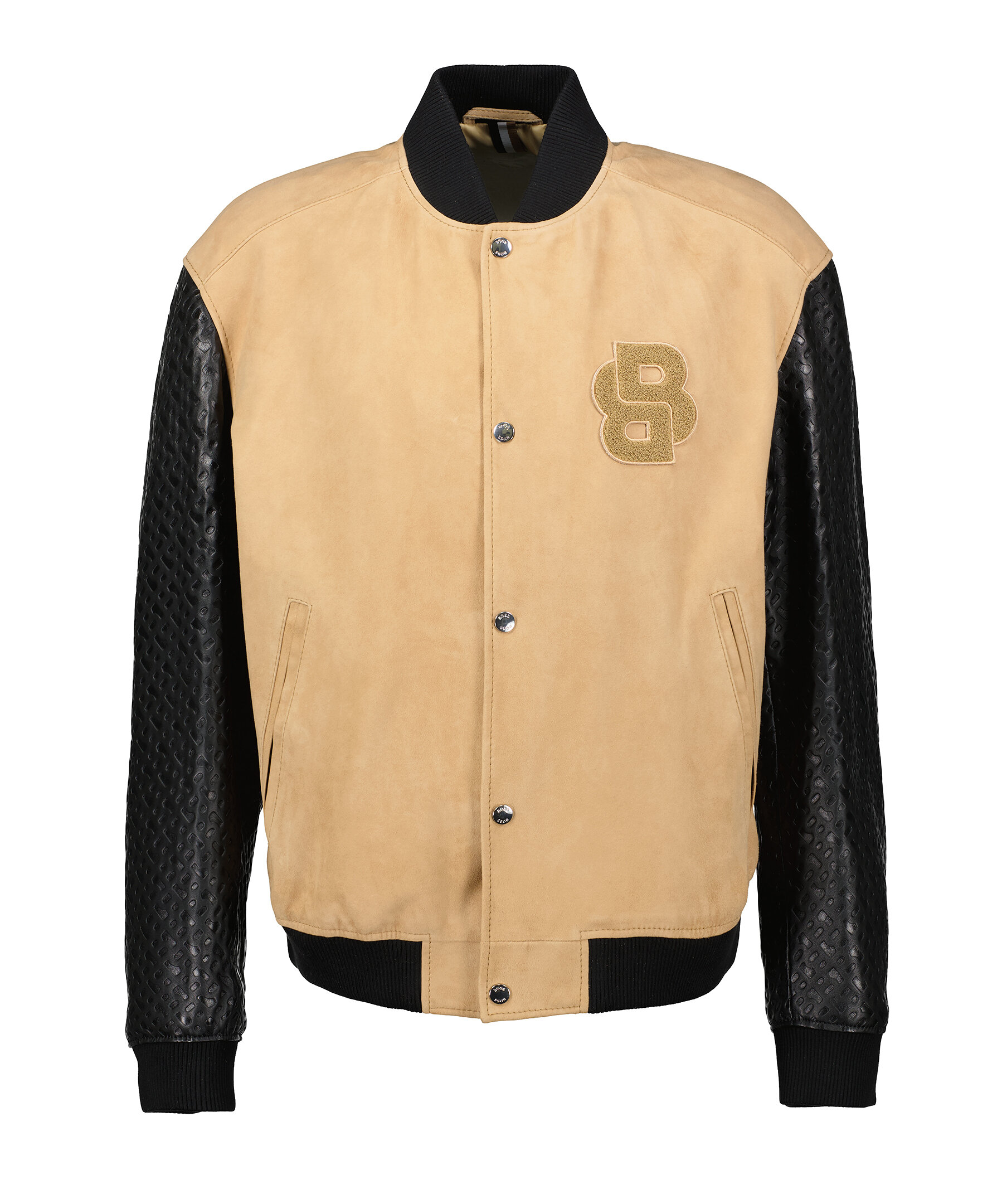 Bomberjacka från BOSS Black. Jackan stängs med tryckknappstängning och har sidofickor, läderärmar med monogramlogo, bröstlogo, ribbade muddar och nederkant, samt mitten del i mocka. Tillverkad av 100% läder.