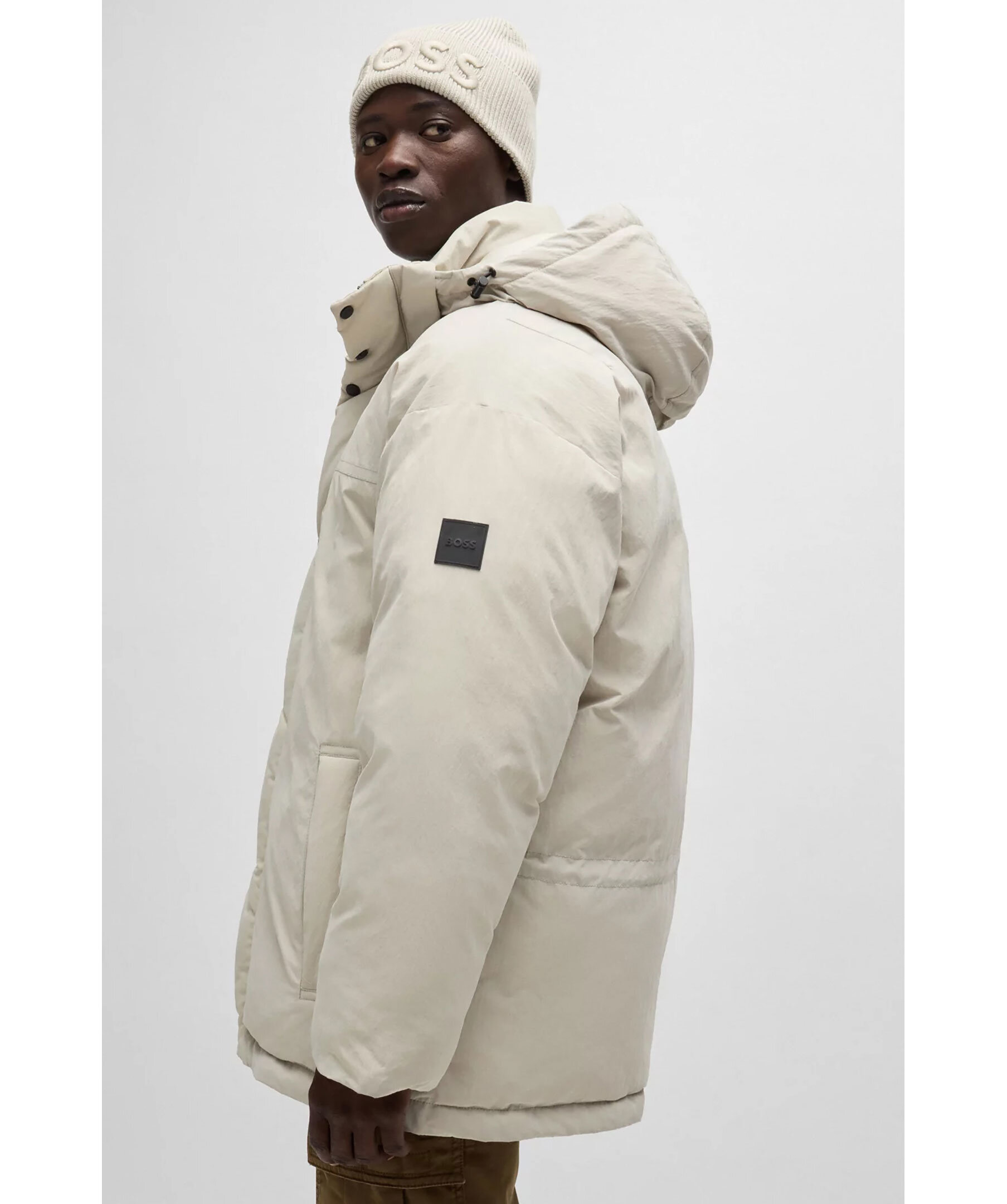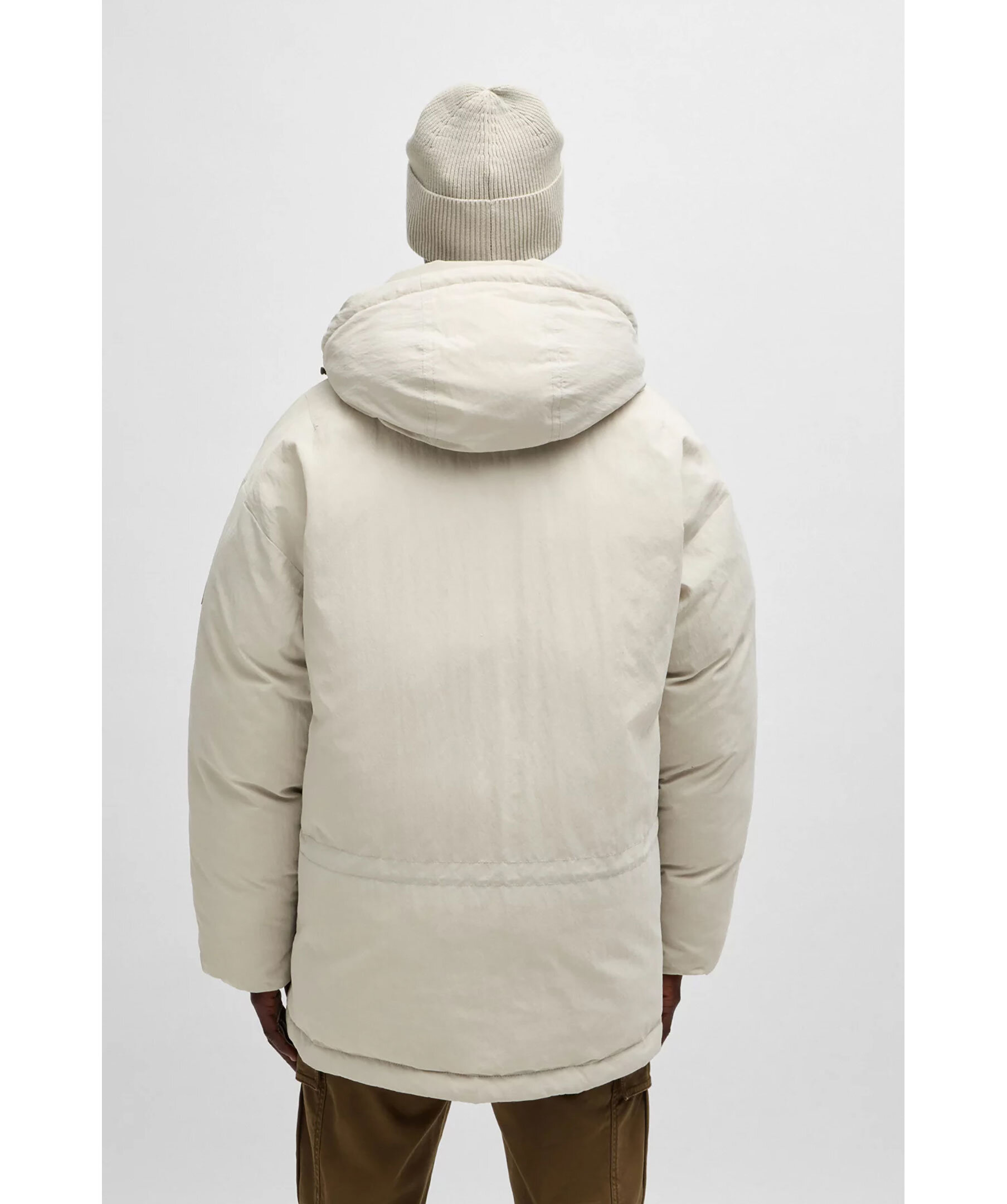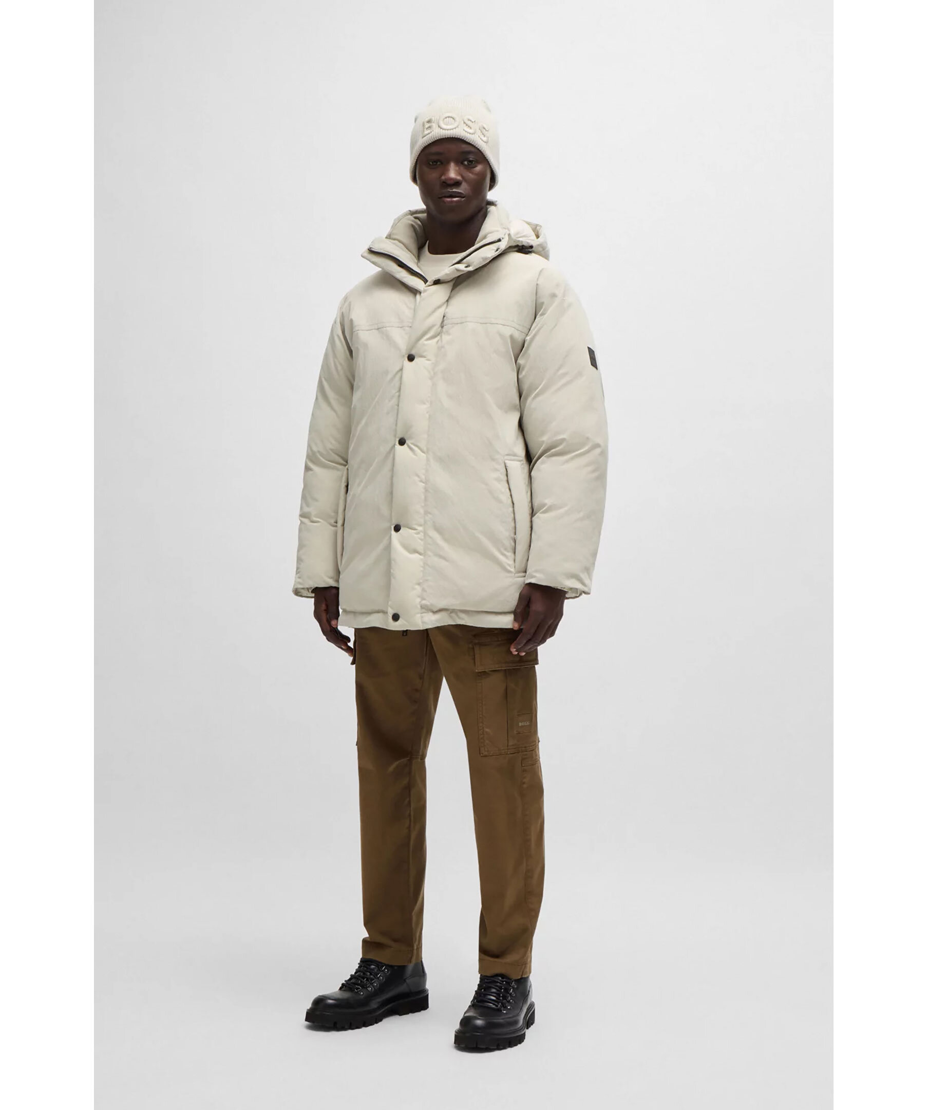 Sandfärgad tjock jacka från BOSS Orange. Jackan stängs med dold dragkedja och tryckknappar och har avtagbar huva samt fickor med dragkedja och liten logotyp på vänster ärm. Tillverkad i polyamid.