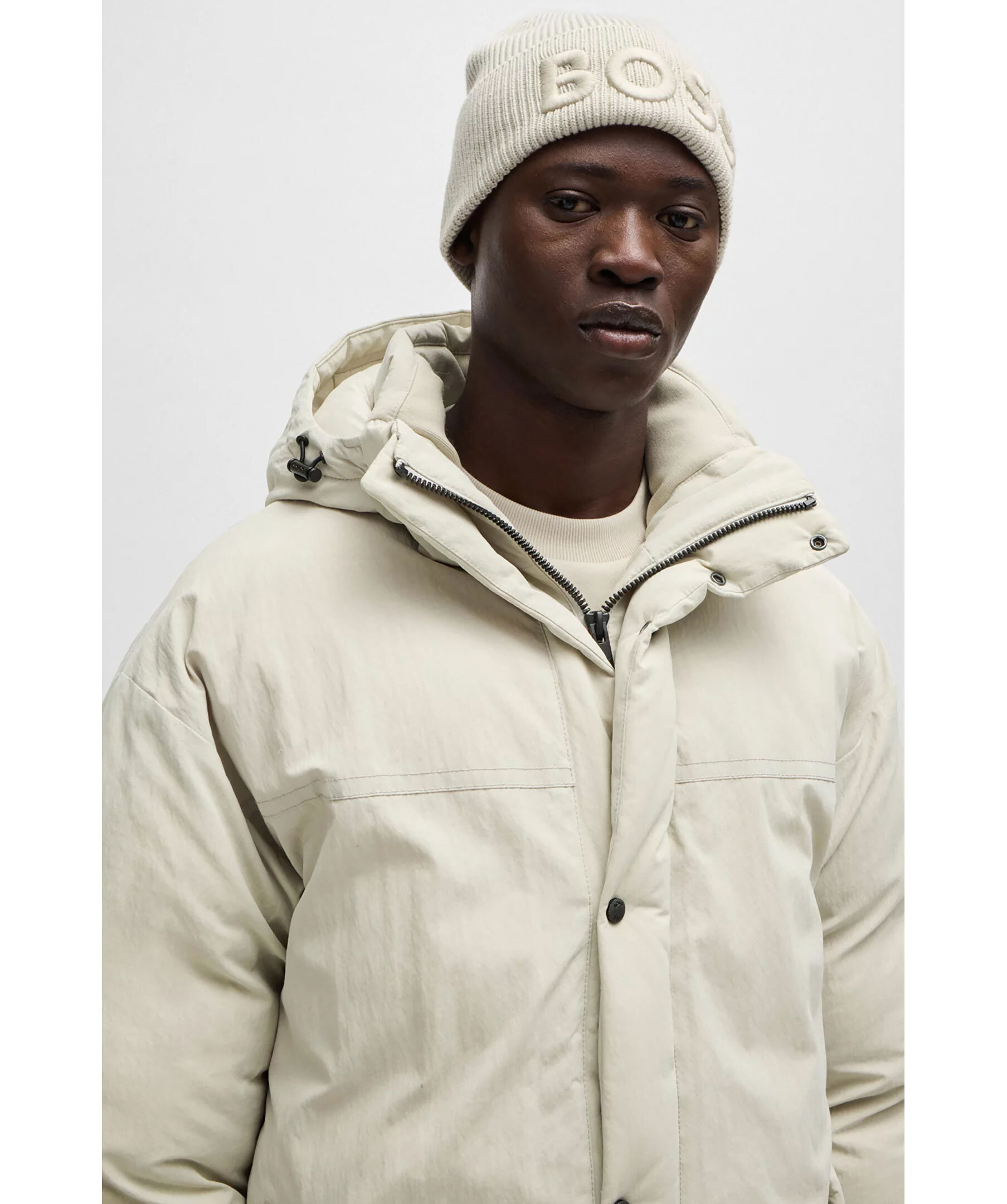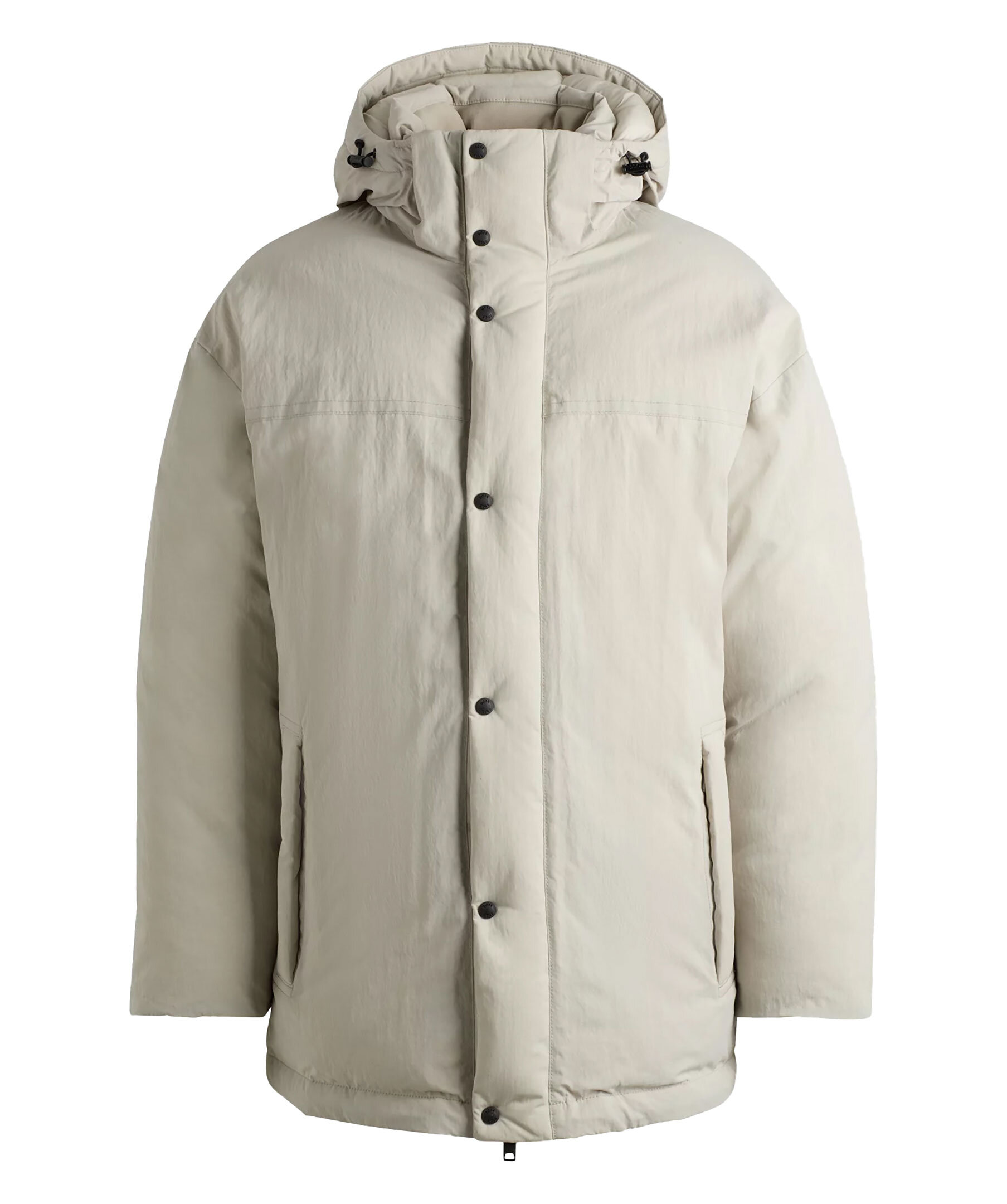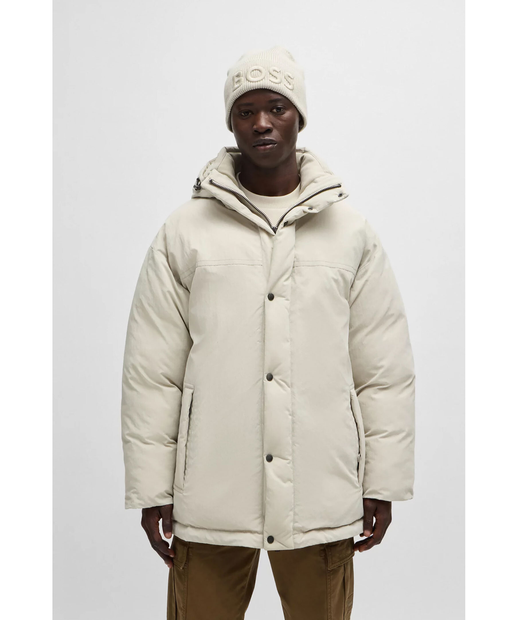 Sandfärgad tjock jacka från BOSS Orange. Jackan stängs med dold dragkedja och tryckknappar och har avtagbar huva samt fickor med dragkedja och liten logotyp på vänster ärm. Tillverkad i polyamid.