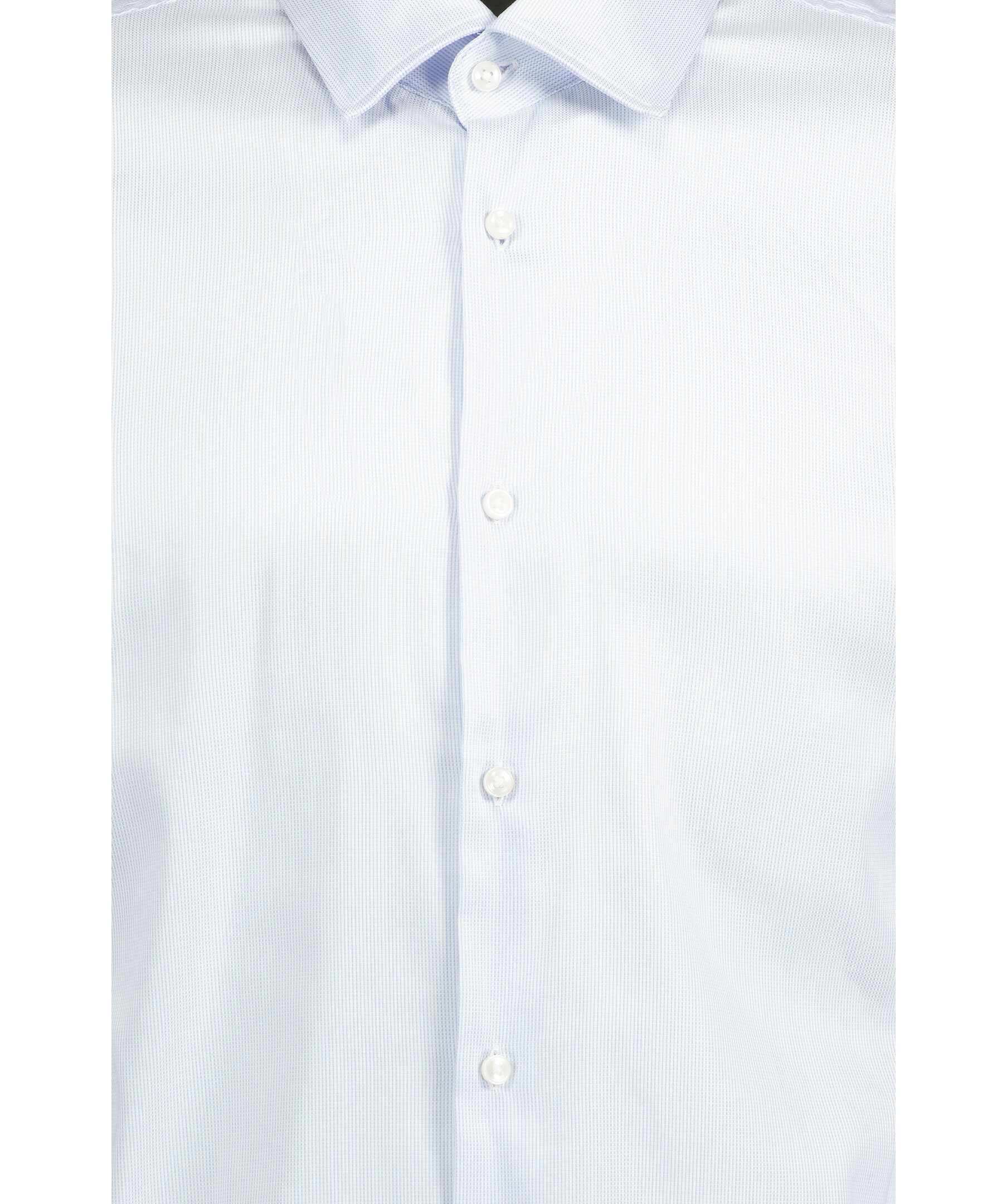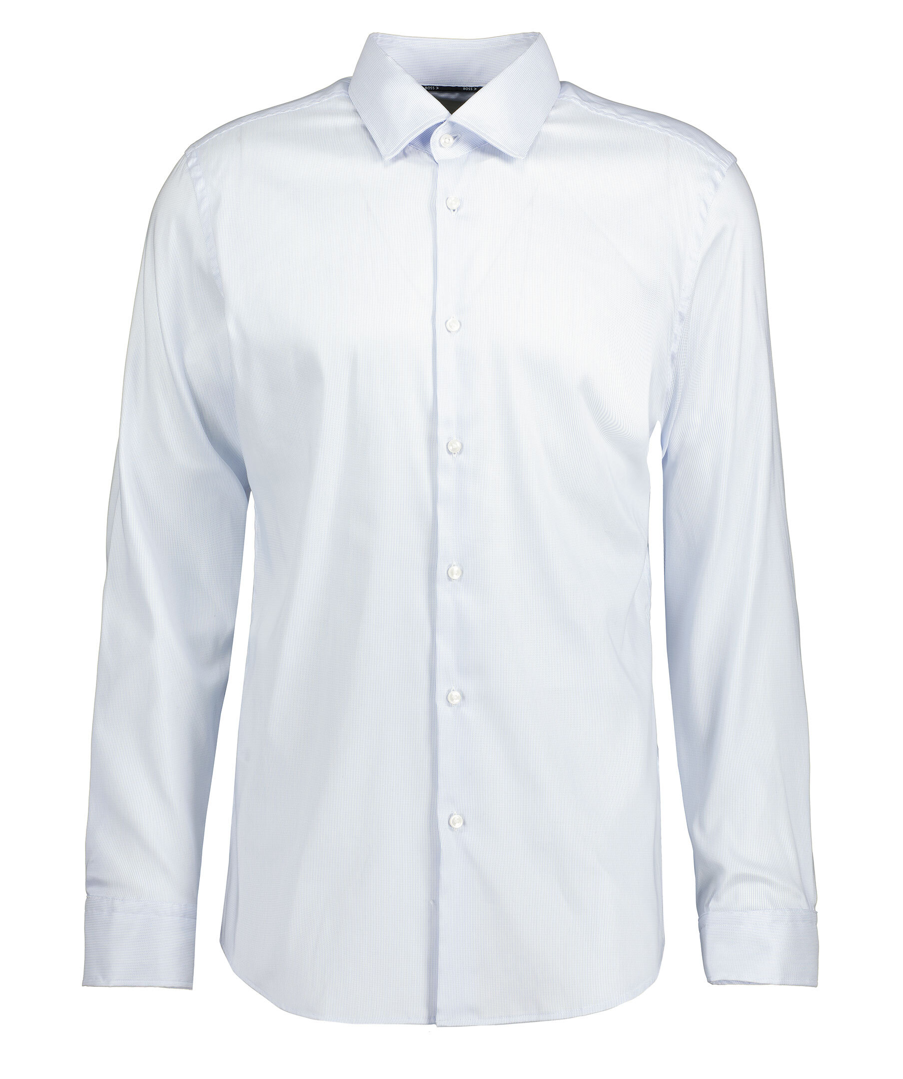 Ljusblå, mönstrad skjorta från BOSS Black. En långärmad businesskjorta i slim fit. Tillverkad av performance stretch-material med ett modernt tryck. Kent-krage samt bröstficka med lock och knapp.
