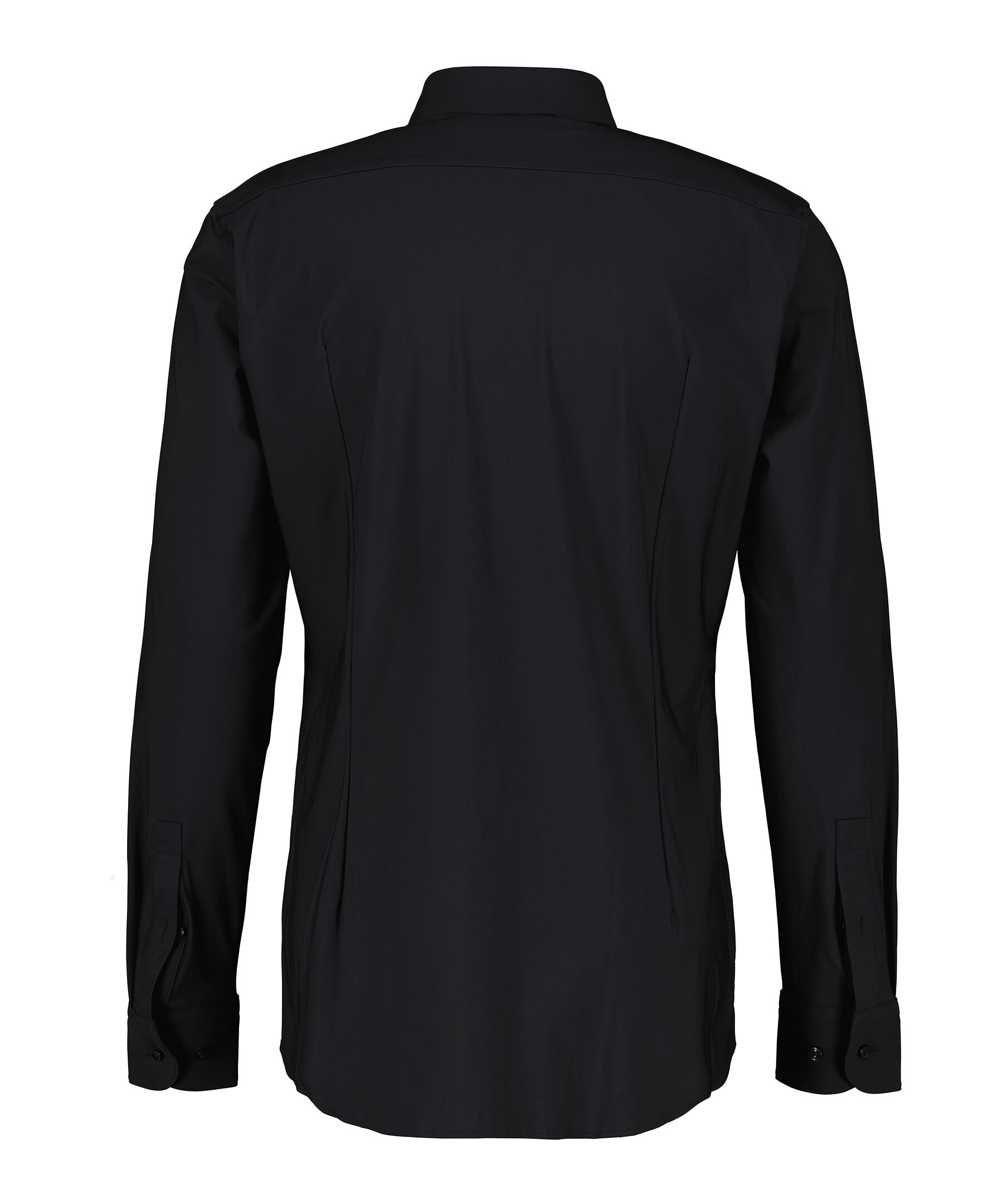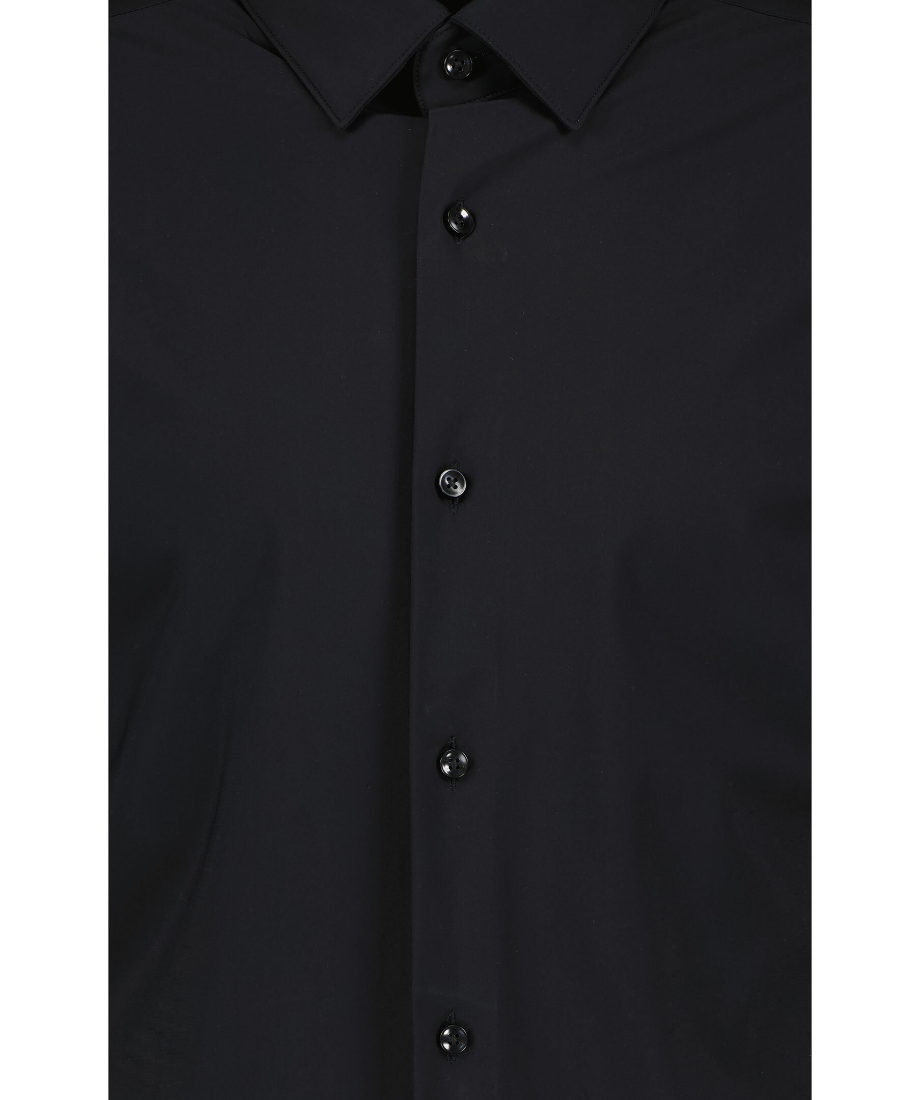 Svart skjorta i stretchigt material från BOSS Black. Stängs framtill med knappar. Spetsig krage. Enkla manschetter. Tillverkad av en polyamidblandning.