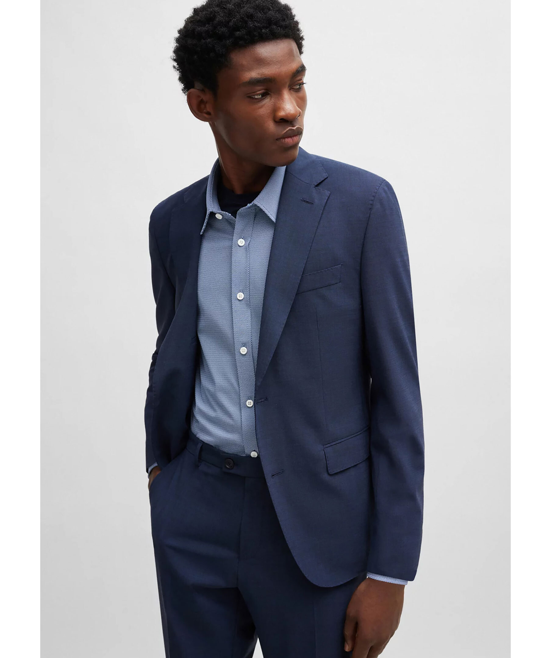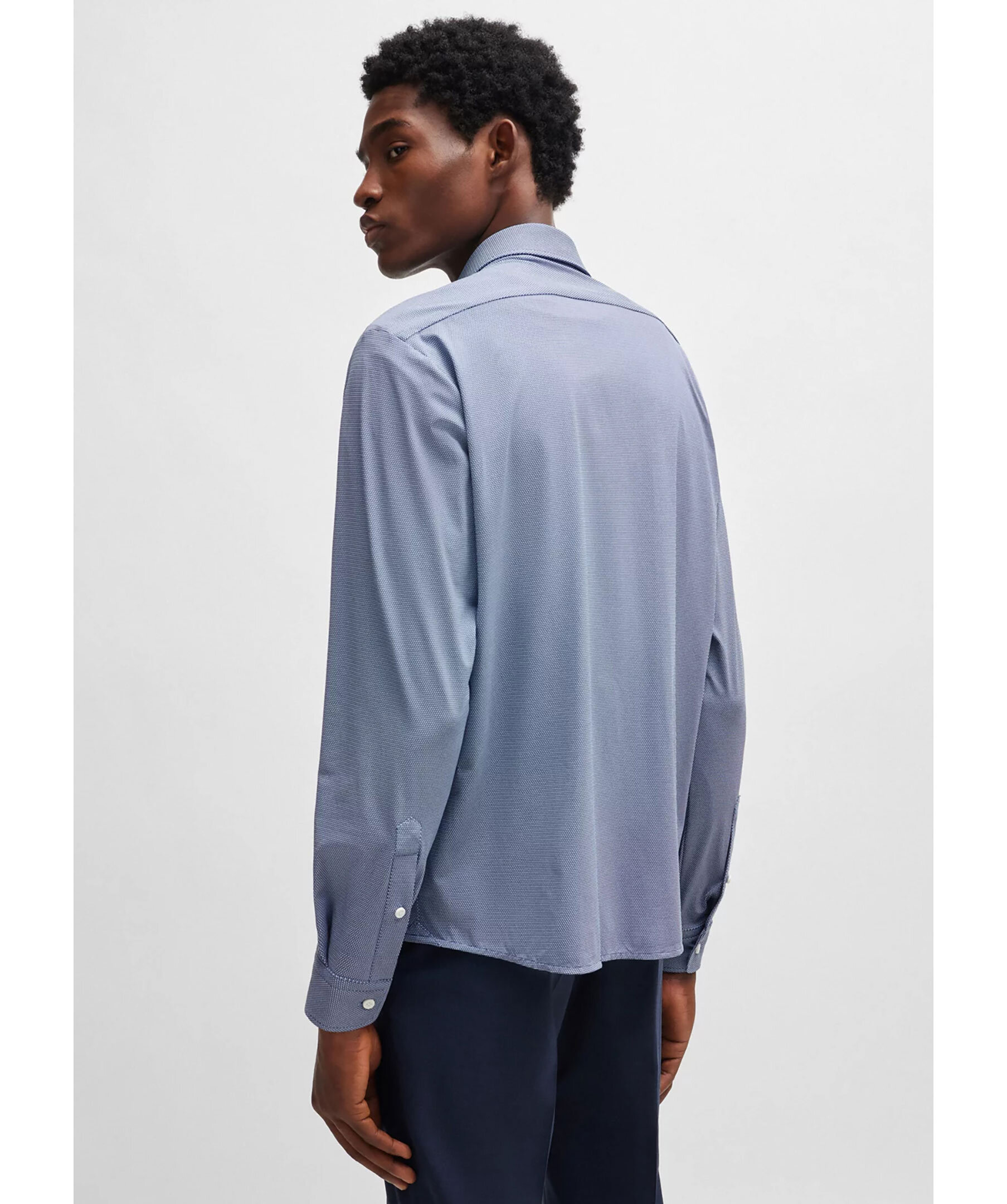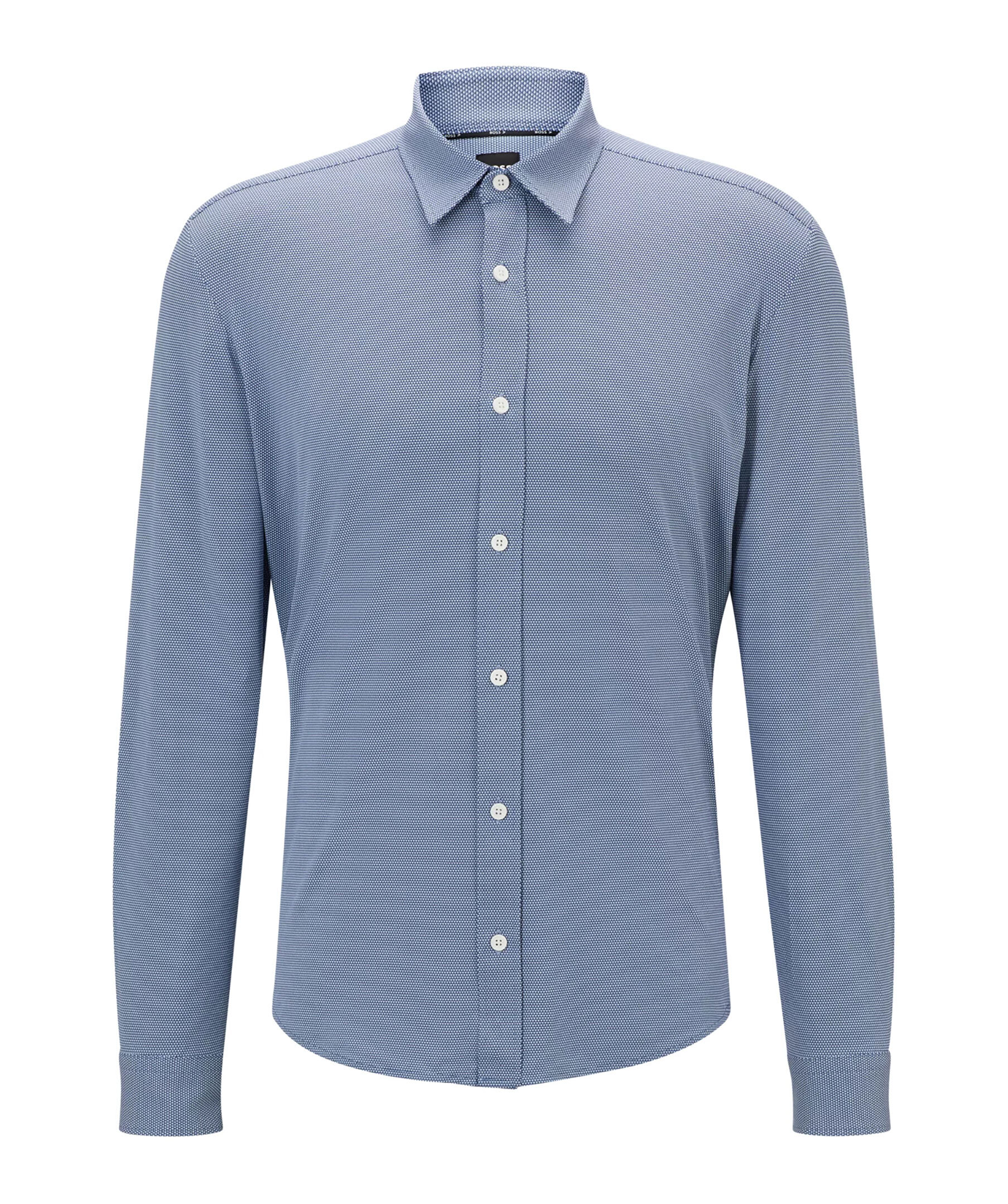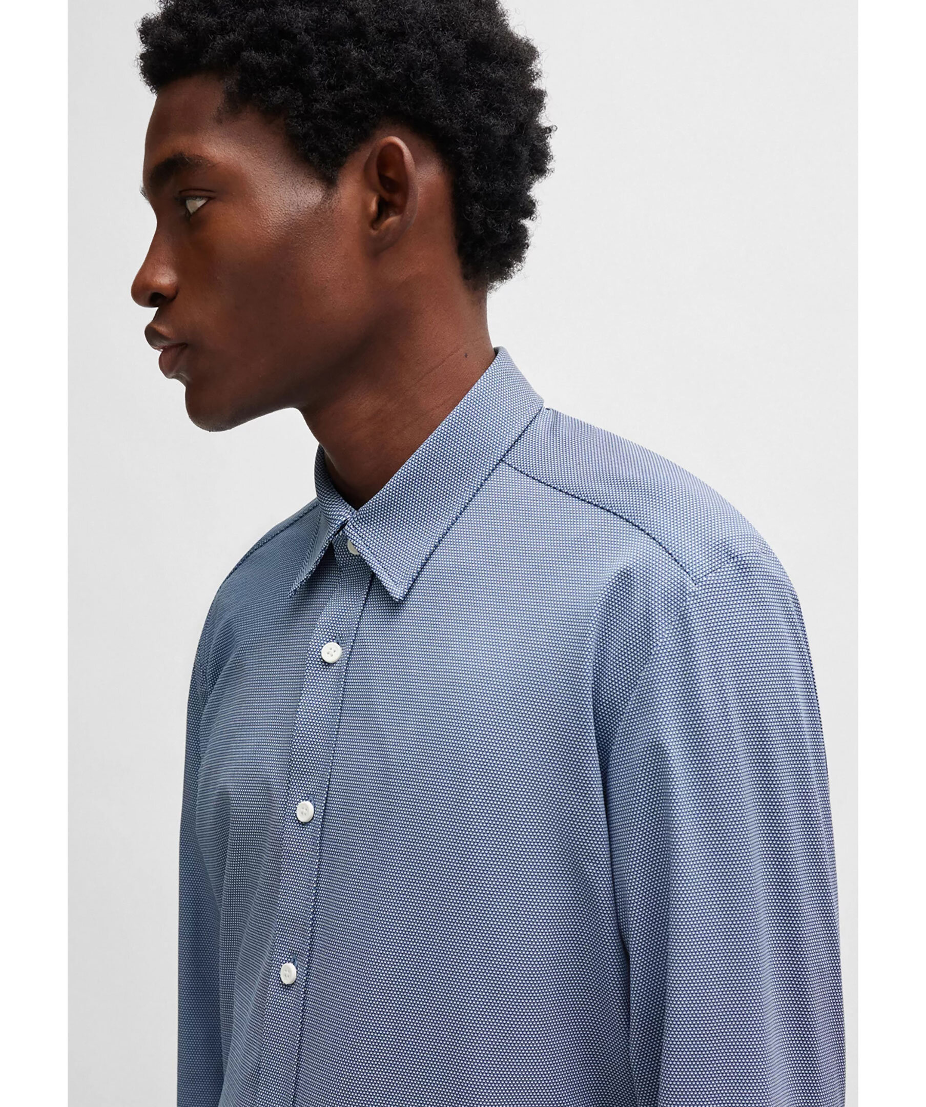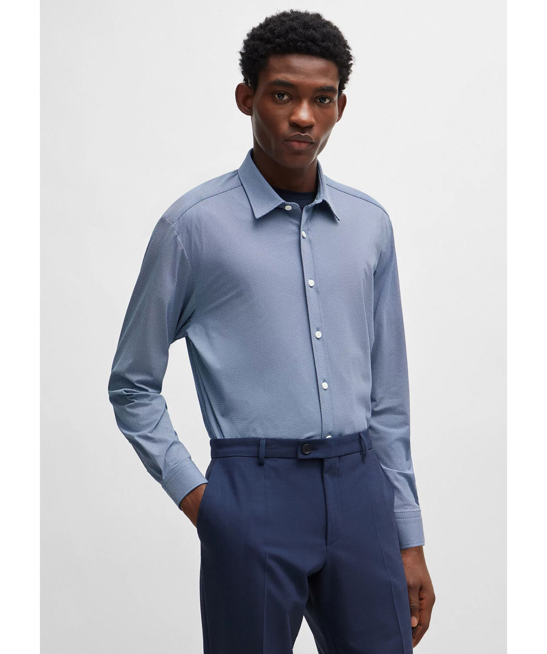 Blå mönstrad skjorta med kent krage från BOSS Black. Skjortan är skuren i en rak och normal passform i prestandastretchtyg. Tillverkad i en polyamidblandning.