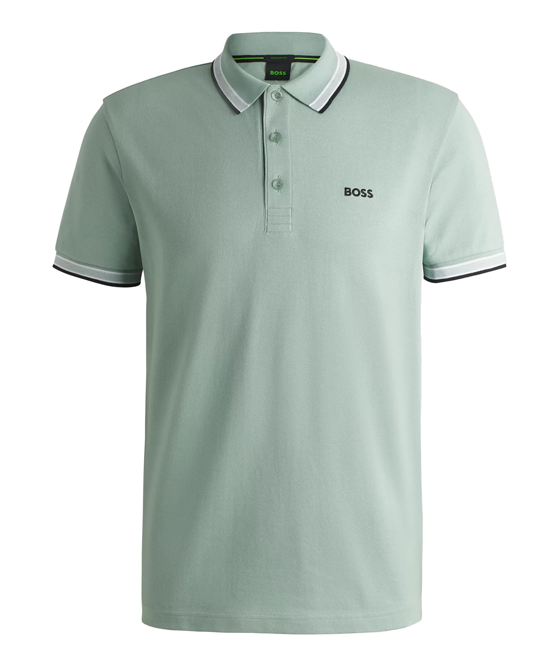 Grön, kortärmad pikétröja från BOSS Green. Pikén har tre knappar framtill, sportiga ränder vid kragen och ärmslut. Logotypdetaljer på undersidan av kragen. Tillverkad i bomull.